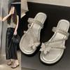 Conjunto de Mujer 2025 Verano Nuevo Todo Combinable Casual Diamantes de Imitación Sandalias Pantuflas Gruesas Viento de Hada Zapatos de Playa