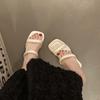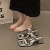 Sandalias de Tacón Alto de Una Línea Plateadas Francesas para Mujer 2024 Nuevo Verano Ropa Exterior Zapatos Romanos Tacón Grueso Zapatillas de Mujer