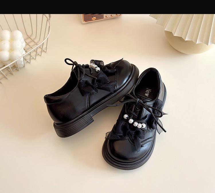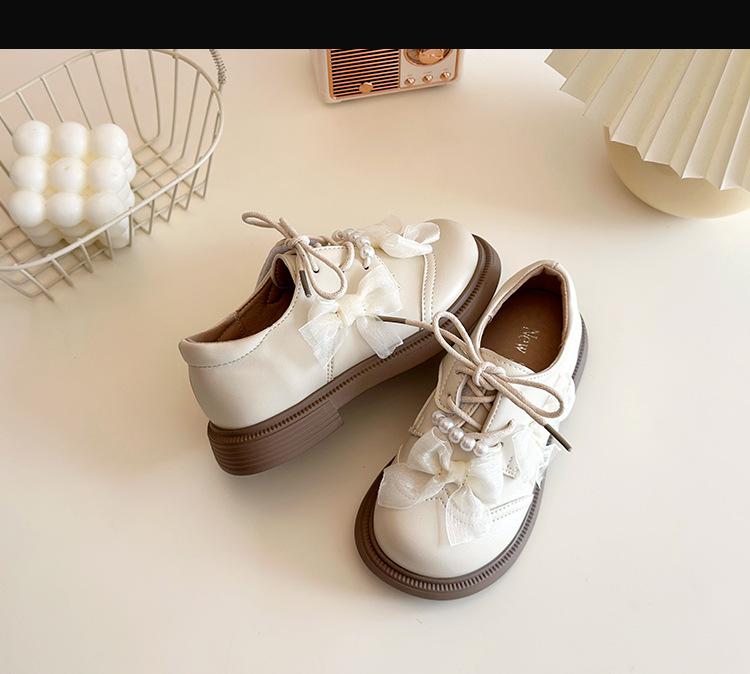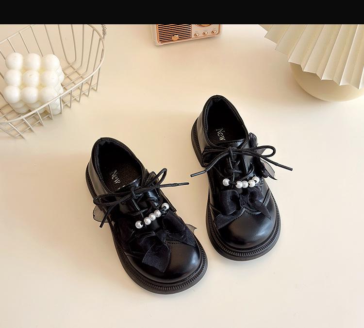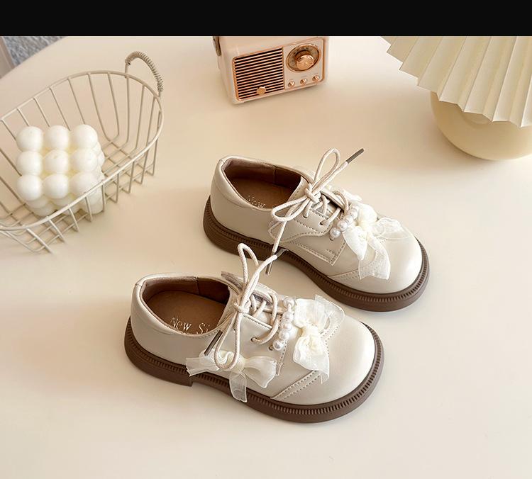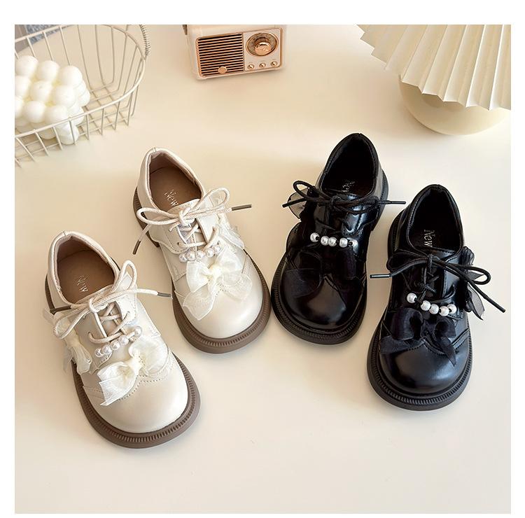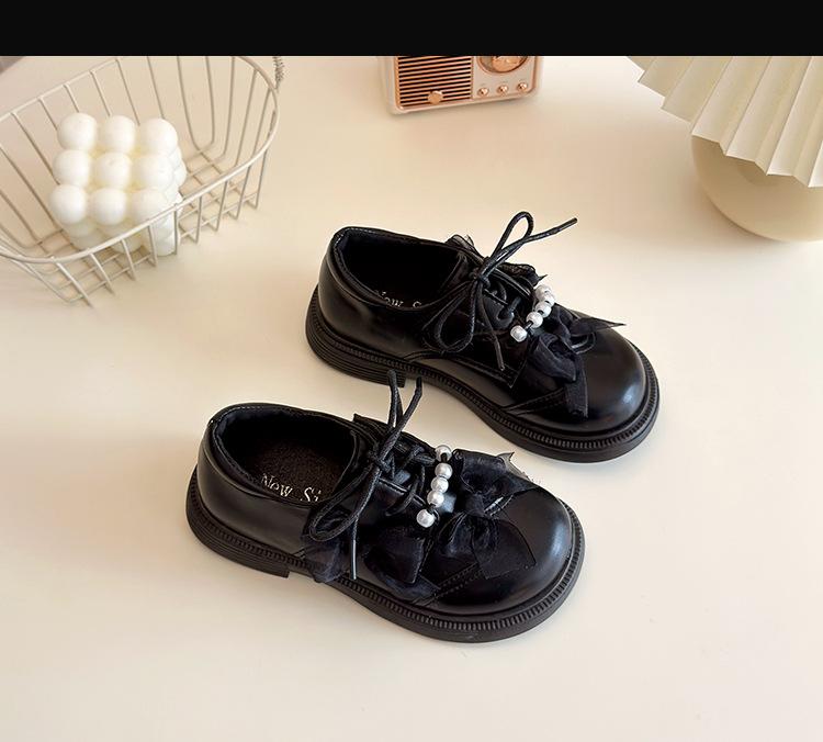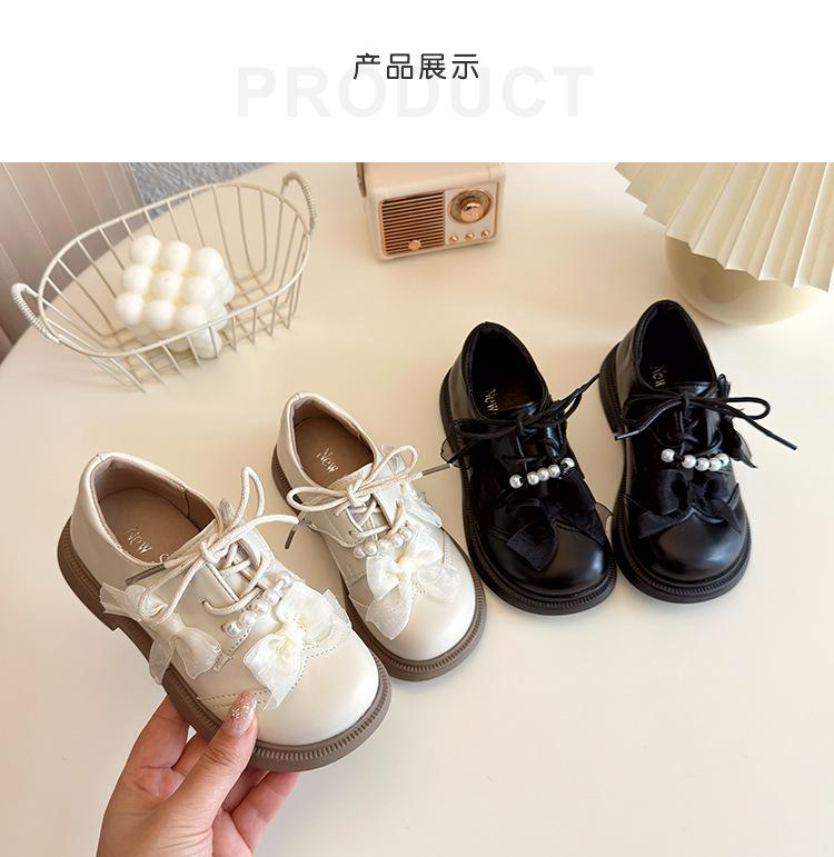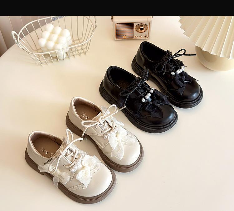 Zapatos de Princesa de Tira Fina con Pedrería para Niñas Suela Suave Lazo Zapatos Pequeños de Cuero 2025 Primavera y Otoño Nuevos Zapatos de Estilo Británico para Niños