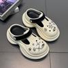 Zapatos de Orificio de Pedrería de Pétalos Zapatillas de Verano para Mujer de Suela Gruesa Engrosada Baotou Moda para Exterior Transpirables Antideslizantes Sandalias Eva