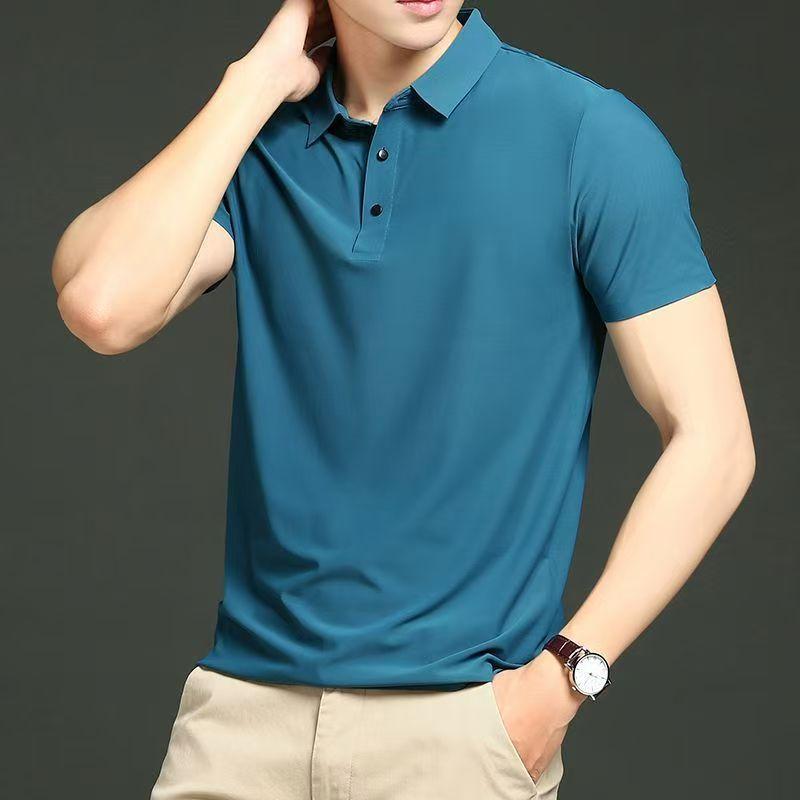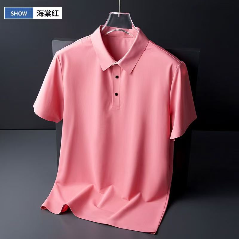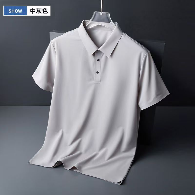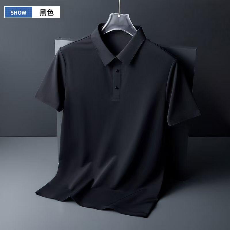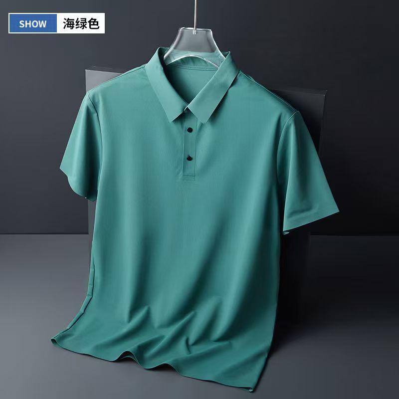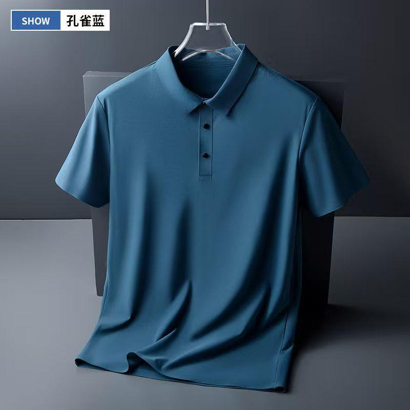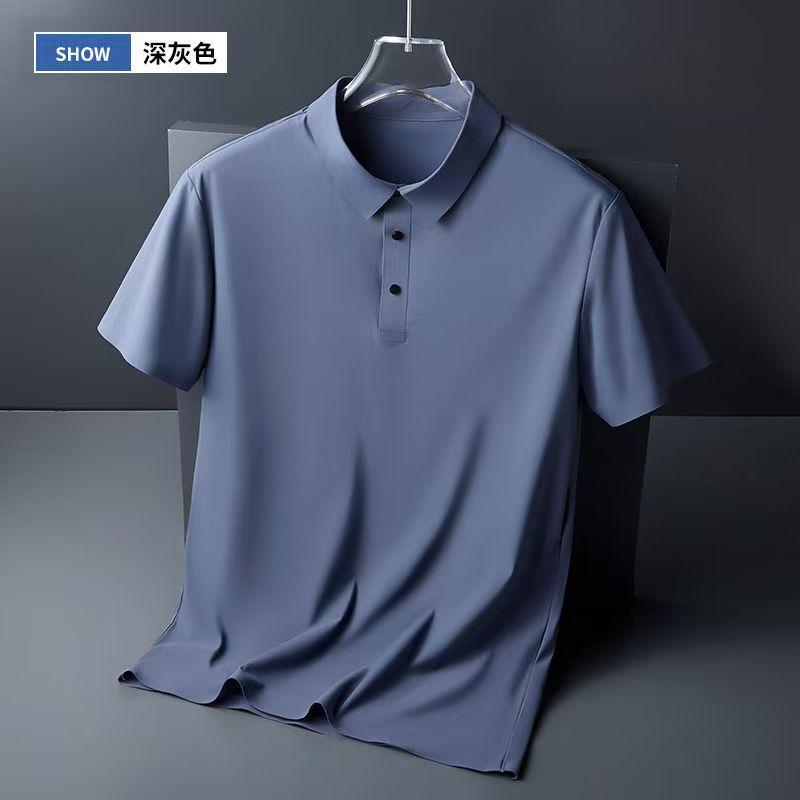 Camiseta Solapa Mercerizada Nuevo Estilo Sin Costuras Verano Tops para Hombre Polo de Negocios 2025 Manga Corta Seda Hielo