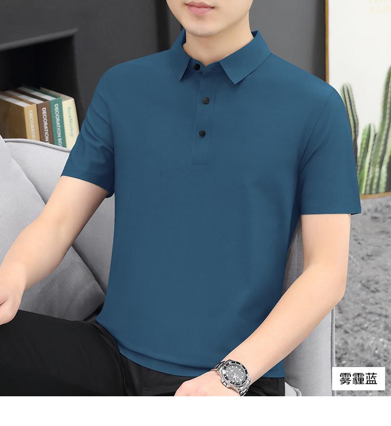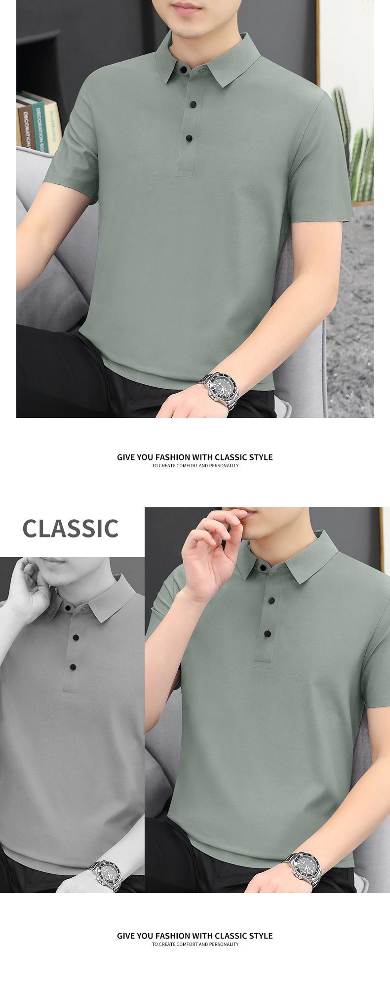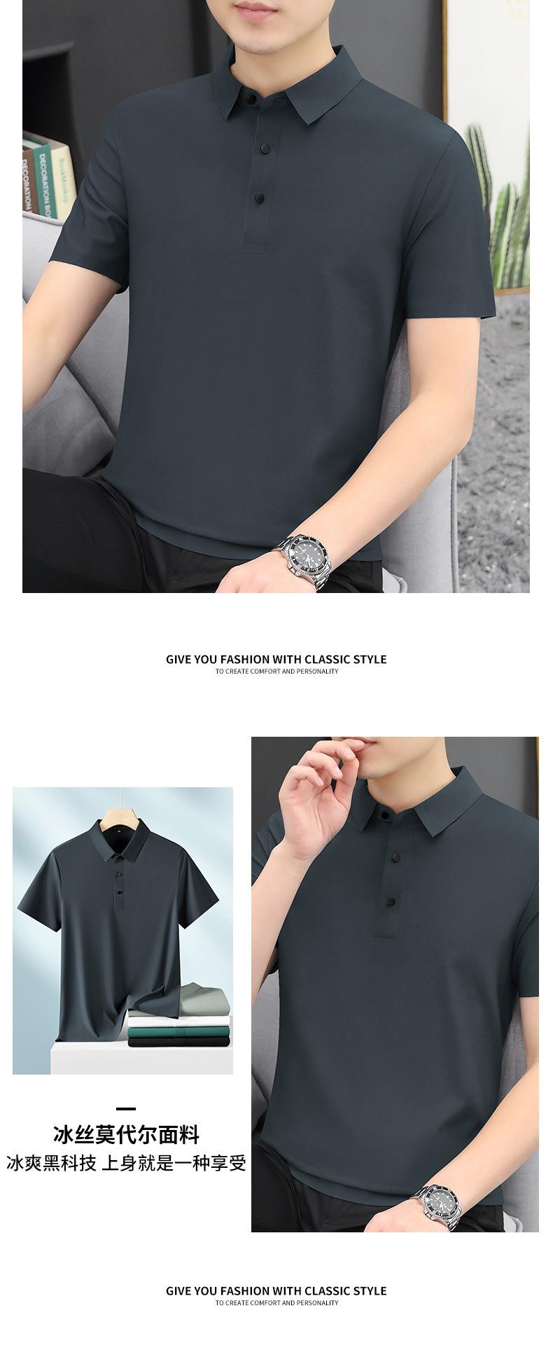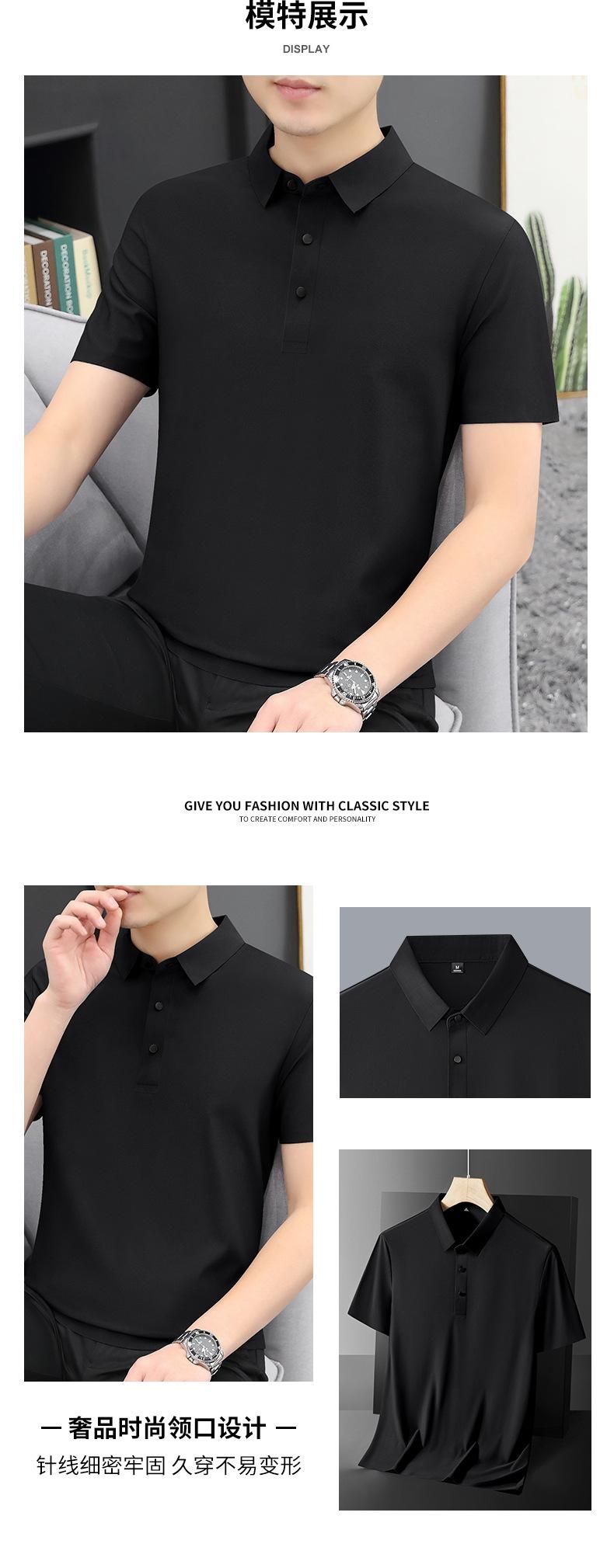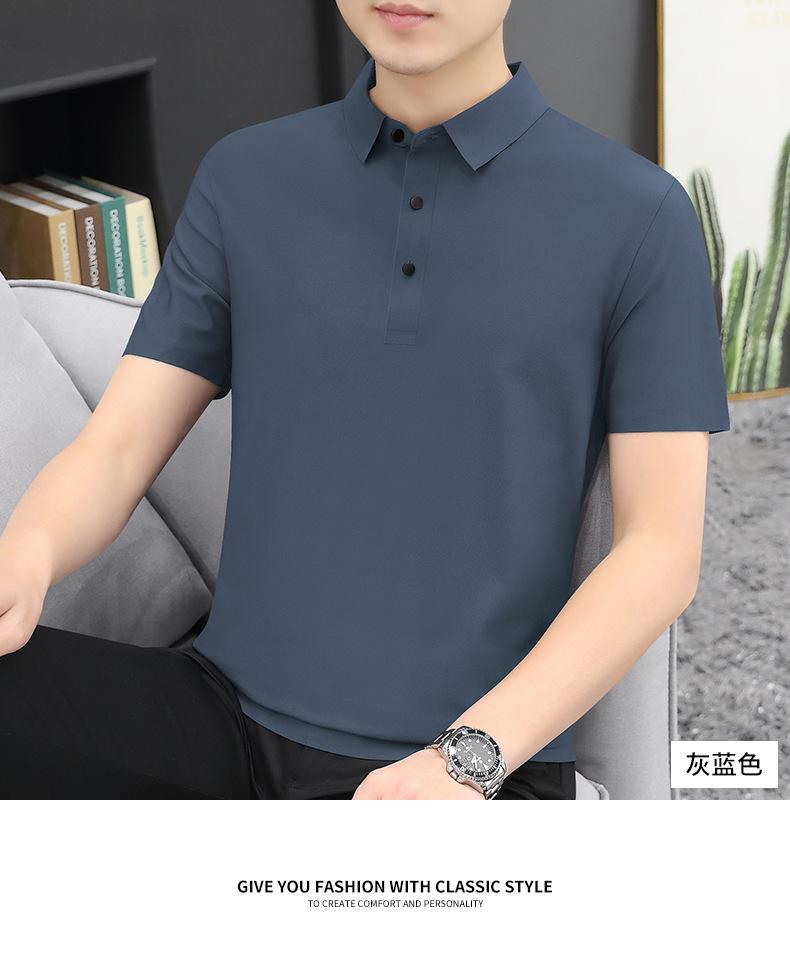 Camiseta Solapa Mercerizada Nuevo Estilo Sin Costuras Verano Tops para Hombre Polo de Negocios 2025 Manga Corta Seda Hielo