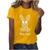 Camiseta de manga corta casual de moda para otoño de mujer europea y americana, nueva de wish, con estampado de conejo de dibujos animados
