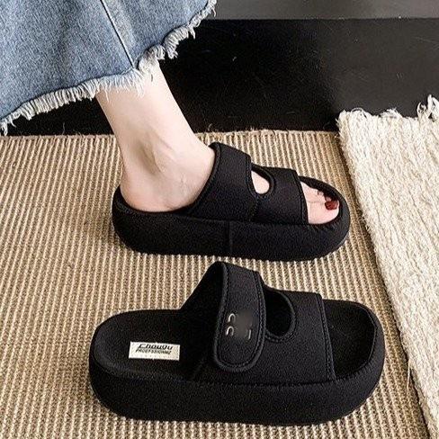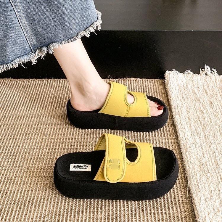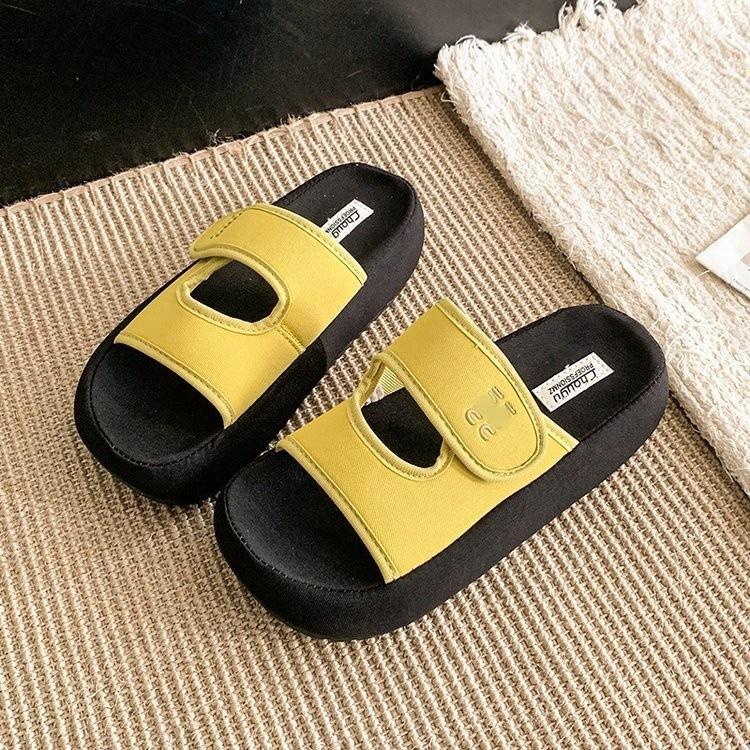 Ropa exterior de verano para mujer, pantuflas de suela gruesa para personas pequeñas 2025, nuevas sandalias de velcro de celebridad de internet, pantuflas de playa