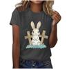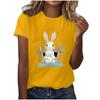 Camiseta de manga corta casual de moda con estampado de conejo de dibujos animados de otoño para mujer europea y americana, nueva wish AliExpress