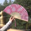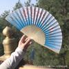 Abanico plegable de estilo antiguo para mujer, abanico pequeño de tela de seda, abanico de regalo de artesanía de bambú de estilo chino, abanico plegable de estilo japonés para danza clásica
