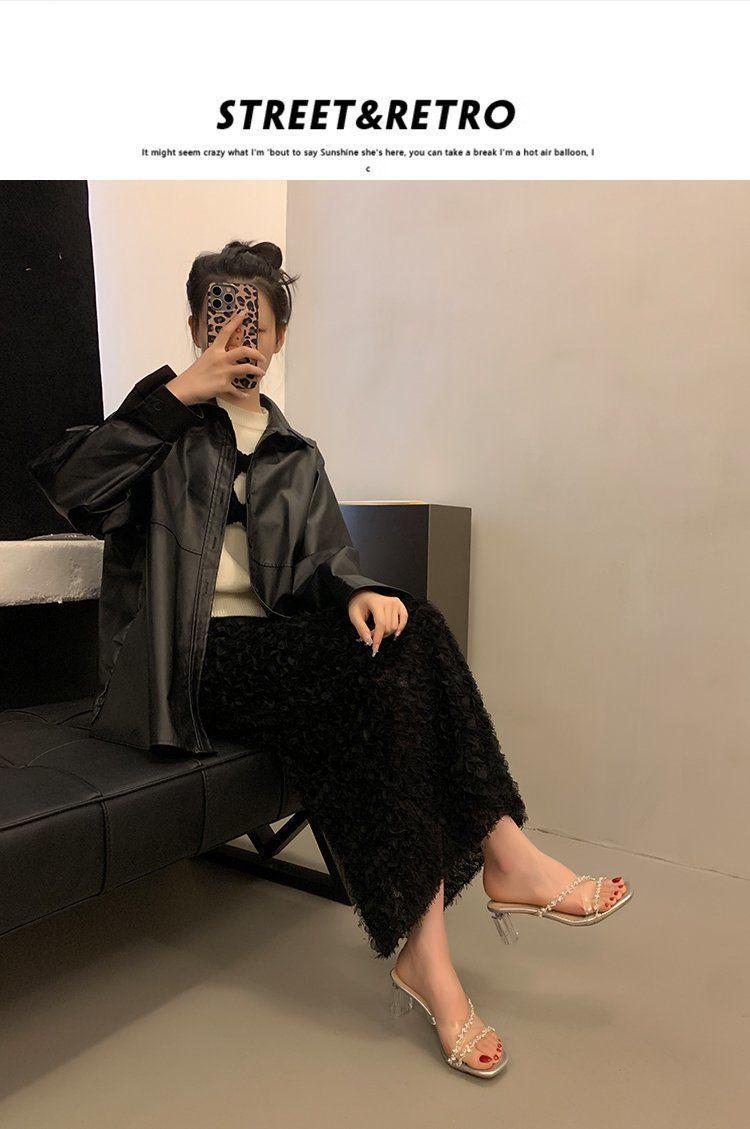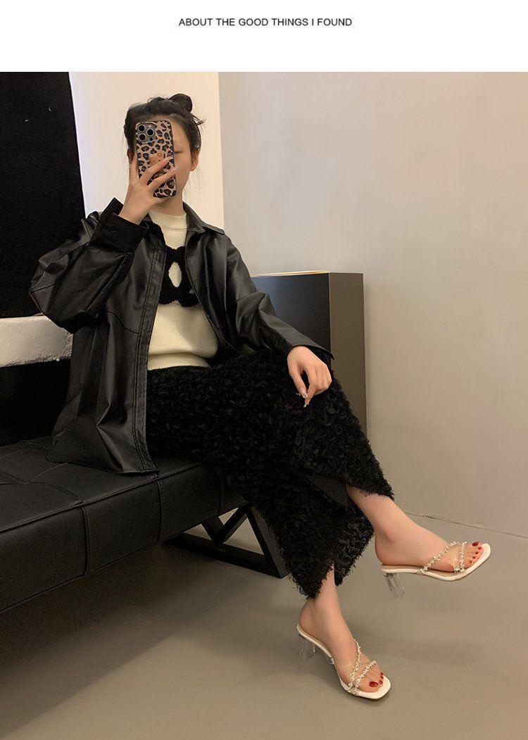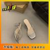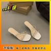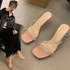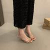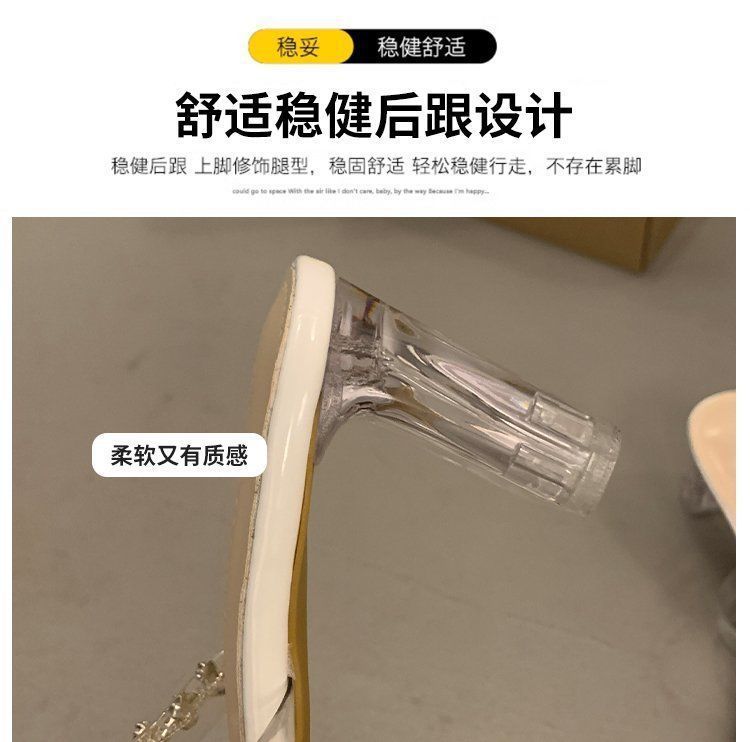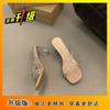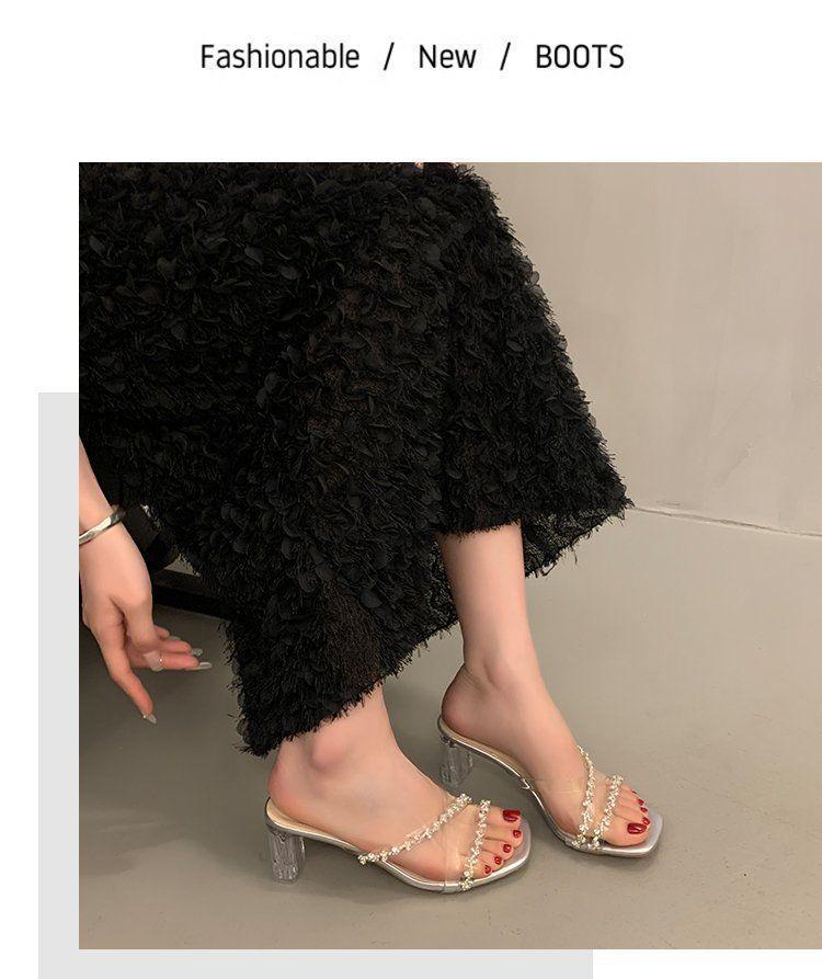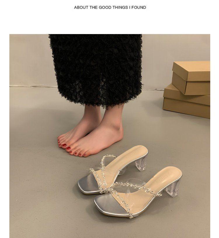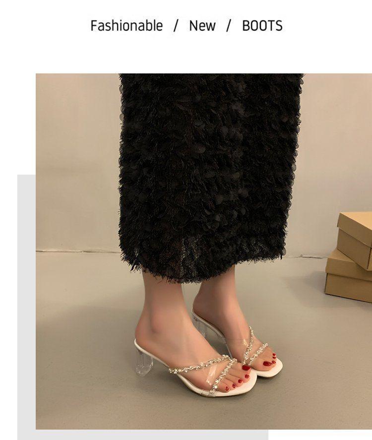Zapatillas de tacón grueso con diamantes de imitación estilo hada para mujer, ropa exterior de verano 2024, nuevas zapatillas de tacón alto elegantes de estilo francés.
