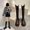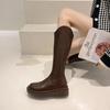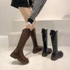 2021 Invierno Nuevo Botas de Caballero Combinables Suela Gruesa Planas Forradas Botas Altas Botas de Cuero Pero Rodilla Botas Largas Trendy