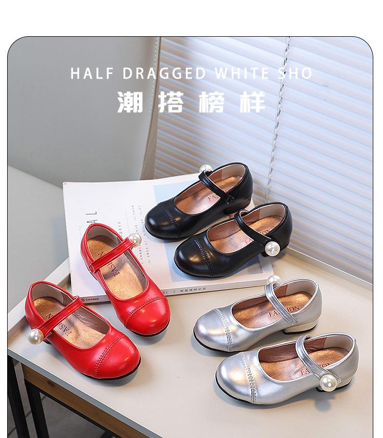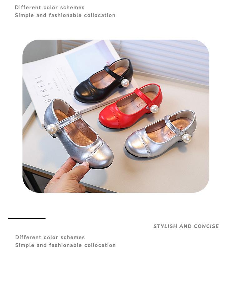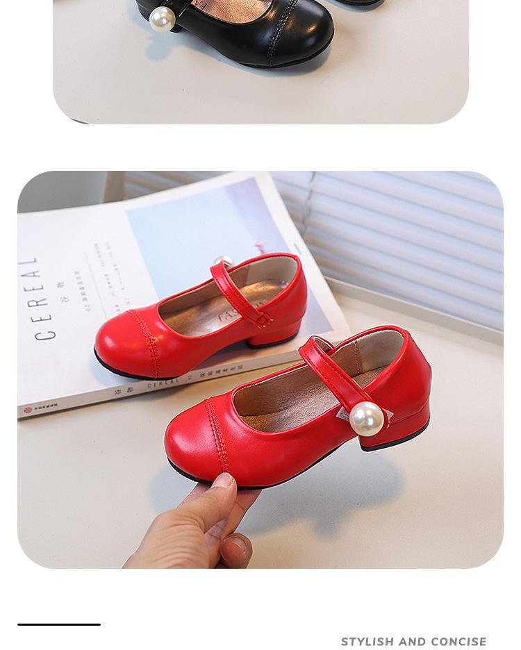 Fanca Hao Zapatos de Cuero de Tacón Alto Pequeño para Niños 2025 Otoño Nuevos Zapatos de Princesa con Perlas de Moda para Niñas Zapatos de Estudiante