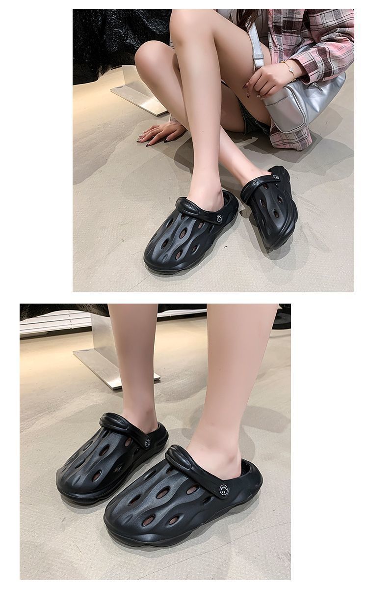 Zapatos Croc Ropa Exterior de Verano para Mujer 2025 Verano Nueva Moda Playa Sandalias Antideslizantes de Suela Gruesa Zapatillas de Media Puntera para Mujer