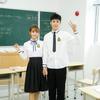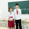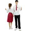 Women's lace white long sleeve + red dress + badge, Men's striped long sleeve + black trousers + Red Tie + bad...