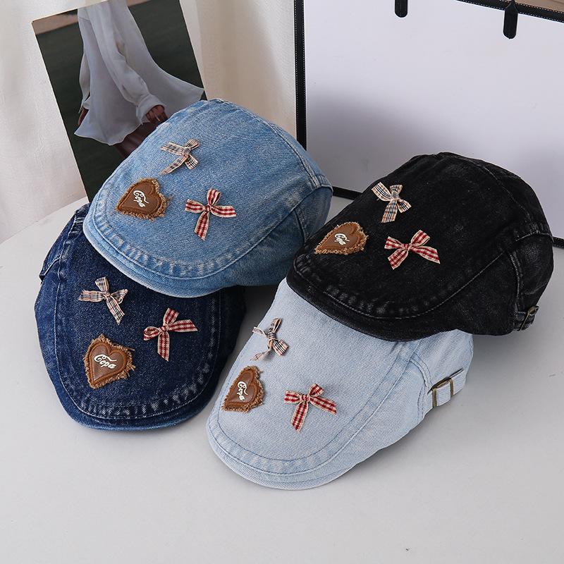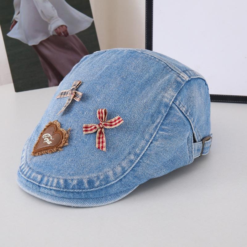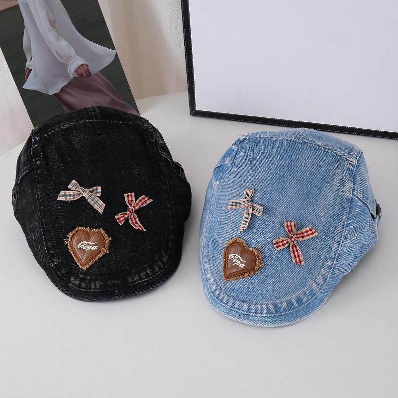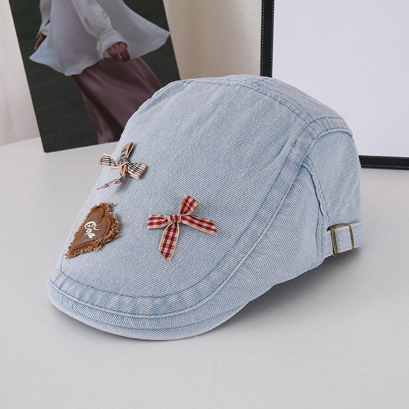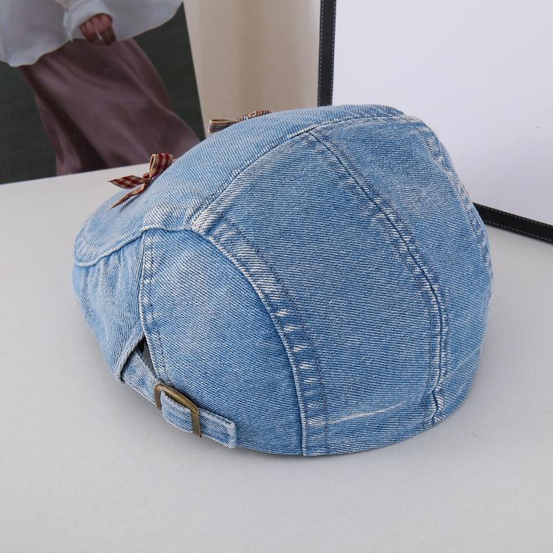 2025 Sombrero Denim Plaid con Lazo para Mujer Primavera y Verano Dulce Versátil Adelgazante de Rostro Gorra de Béisbol hacia Atrás Artista