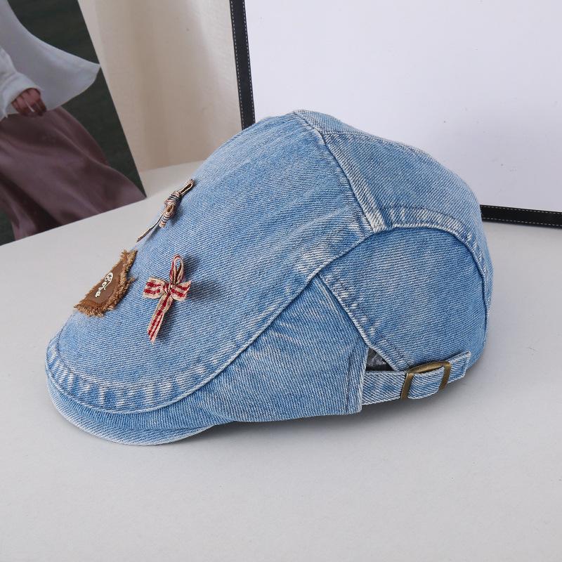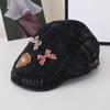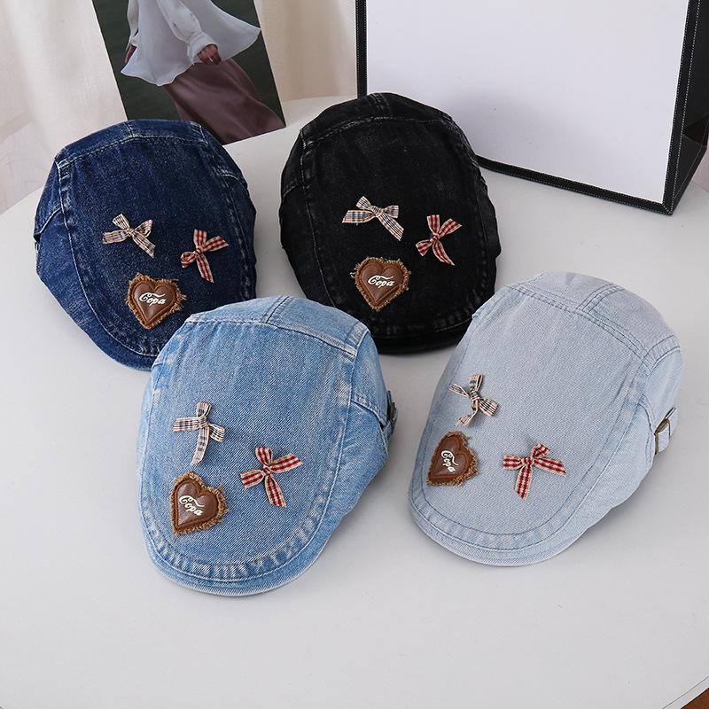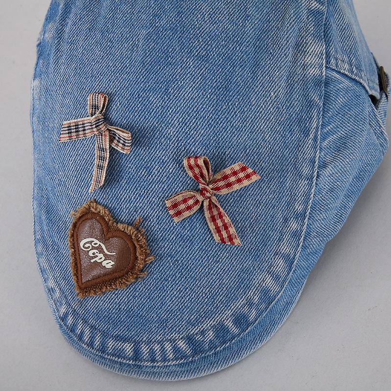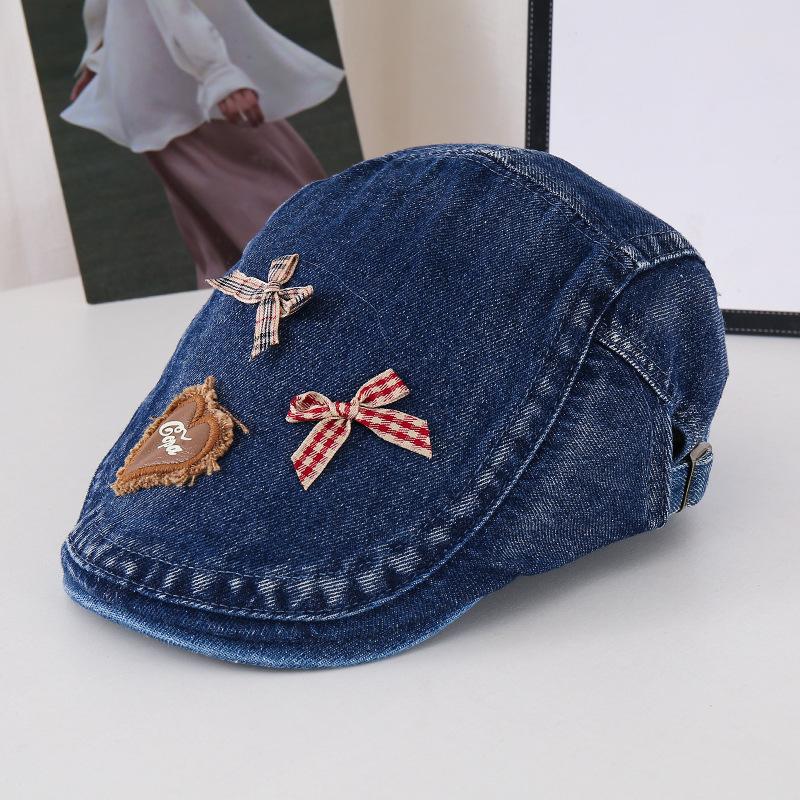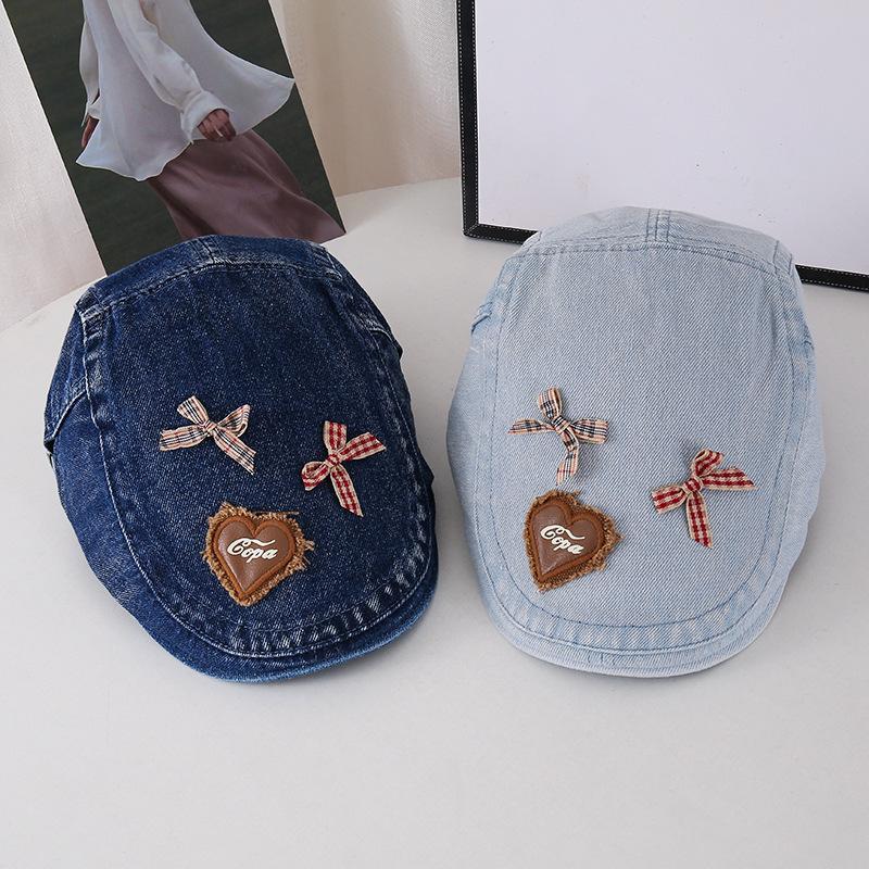 2025 Sombrero Denim Plaid con Lazo para Mujer Primavera y Verano Dulce Versátil Adelgazante de Rostro Gorra de Béisbol hacia Atrás Artista
