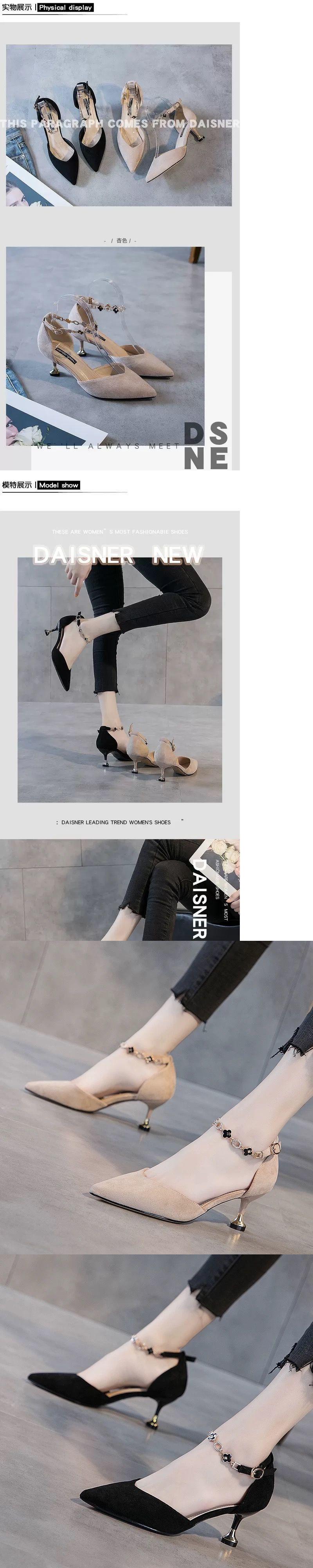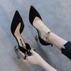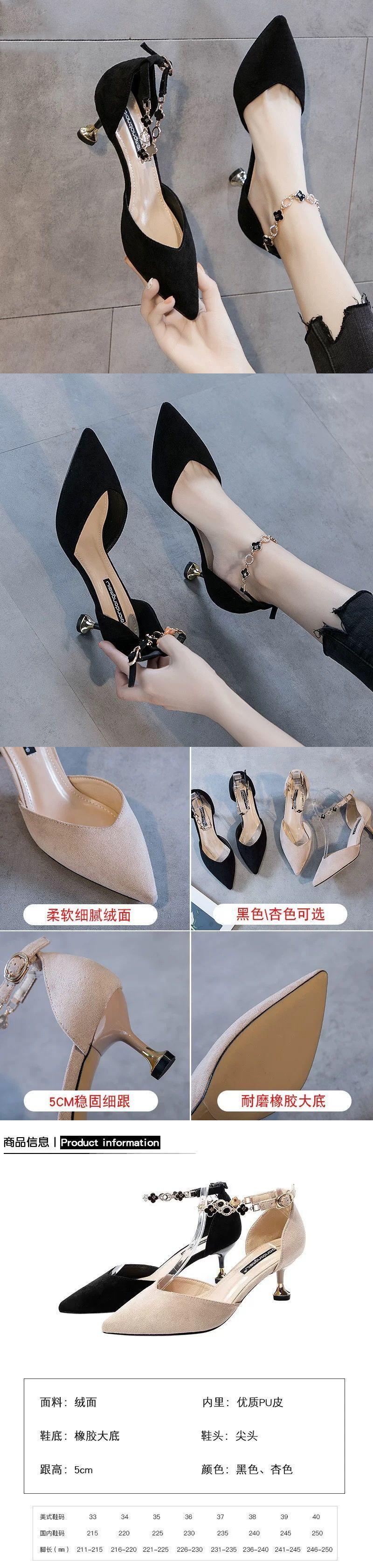 Sandalias Baotou Tacones de Aguja para Mujer 2025 Nuevo Estilo Hada Versátiles Tacón Medio Hebilla Punta Afilada Sexy Tacones Altos de 5 cm