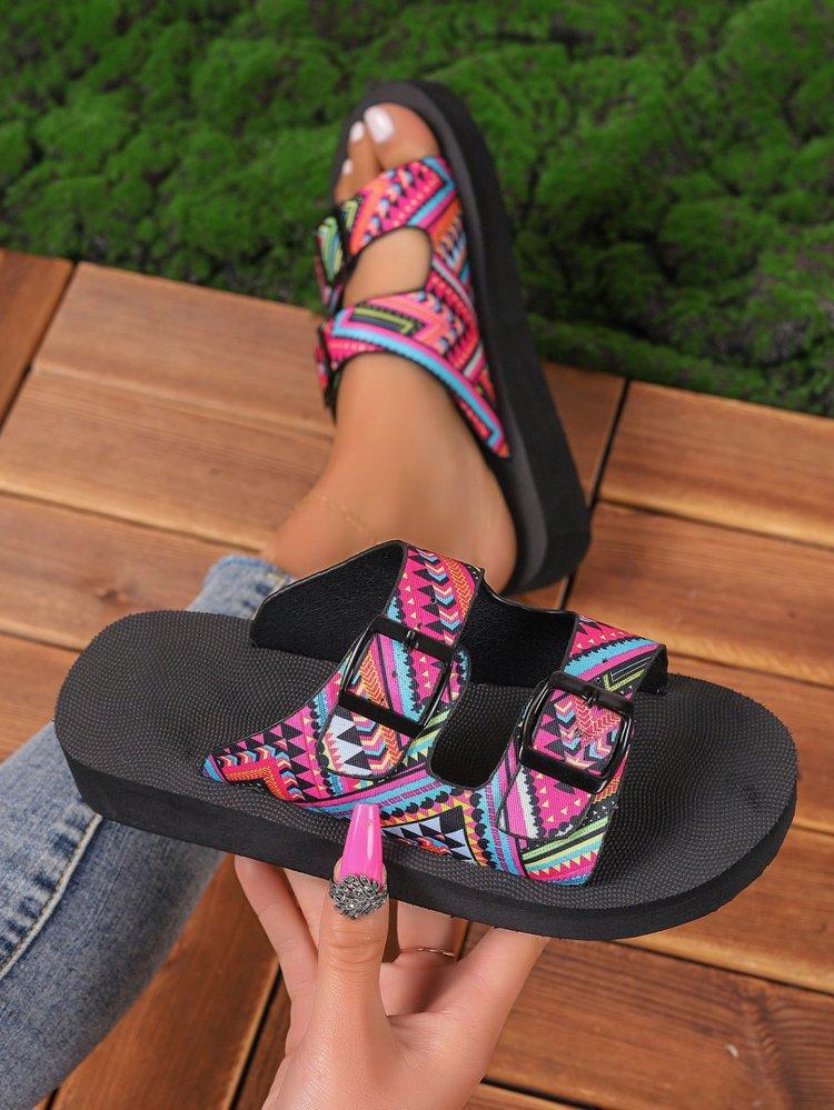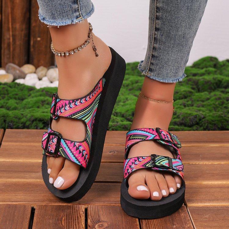 Color doble botonadura zapatillas de ocio europeas y americanas mujeres al por mayor 2024 primavera y verano nuevo comercio exterior talla grande zapatillas mujeres