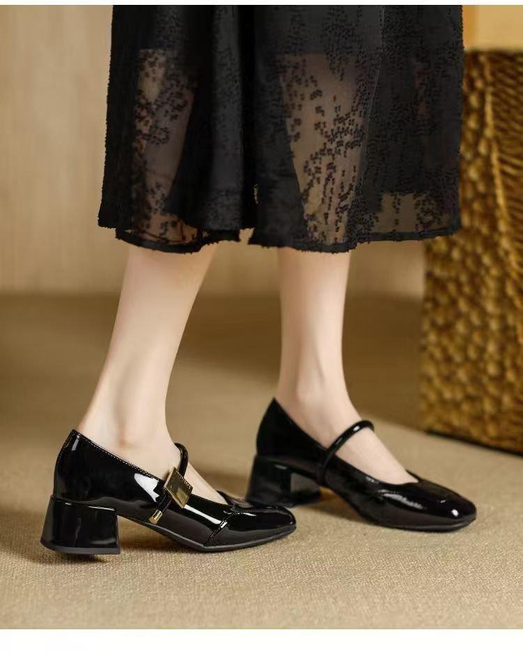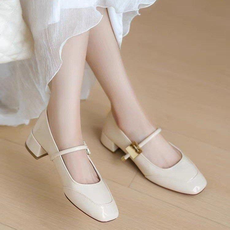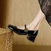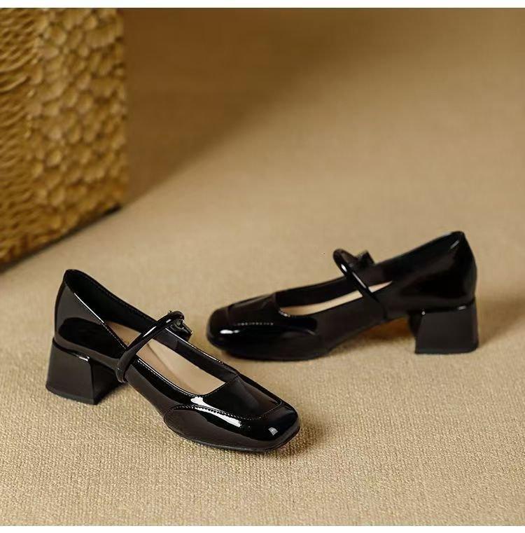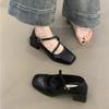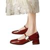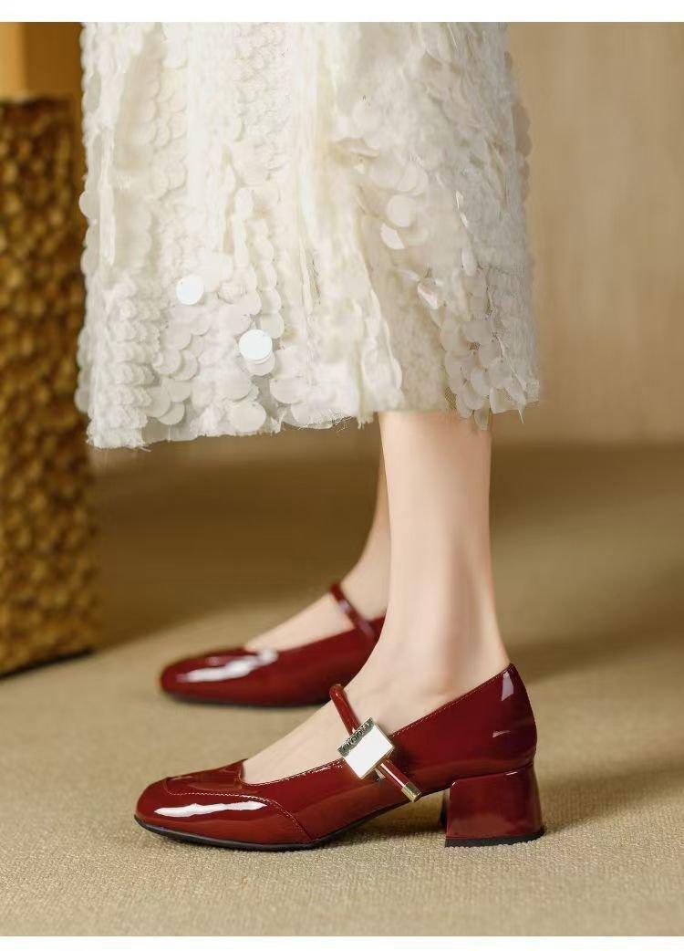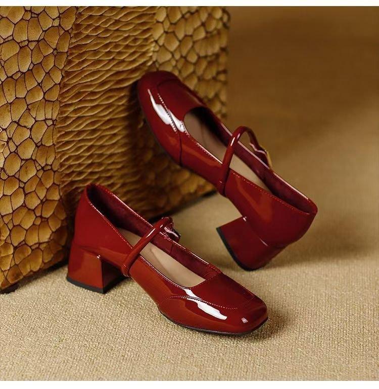 Zapatos Retro Mary Jane Rojos Elegantes Bajos de Cuero 2025 Nuevo Estilo de Noche Moda Francesa Flats de Punta Cuadrada Zapatos de Mujer