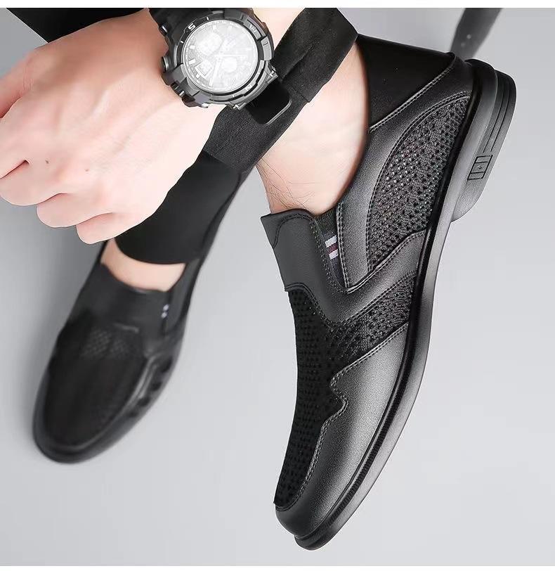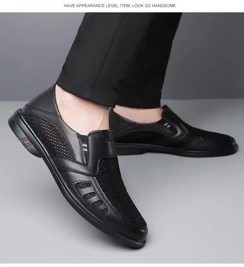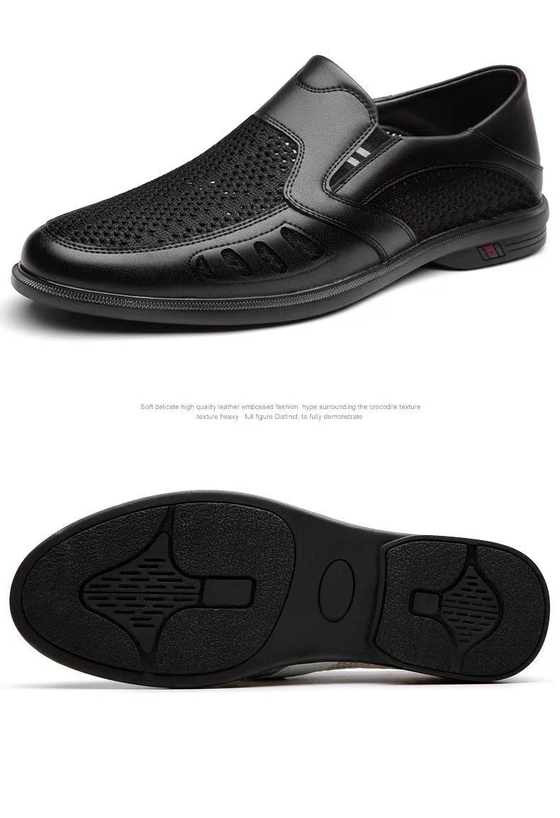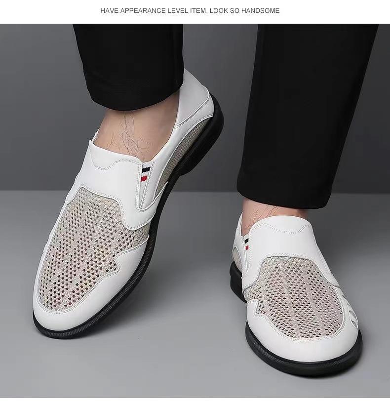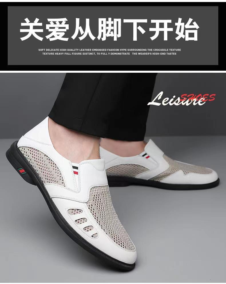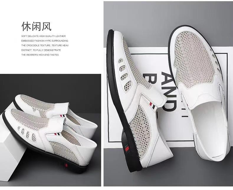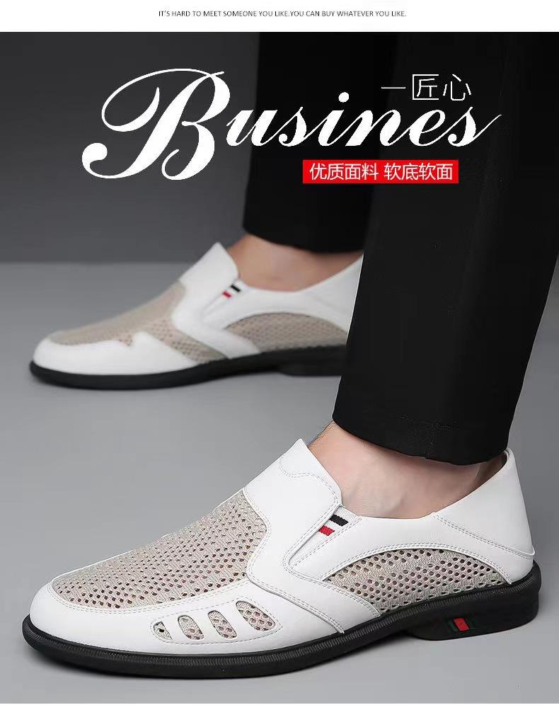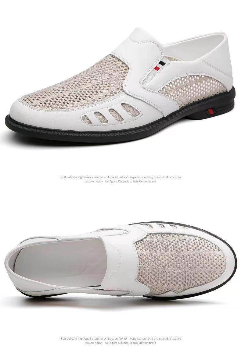 Dropshipping Transfronterizo Verano Nuevo Zapatos de Cuero Casuales de Negocios para Hombre Zapatos de Cuero de Malla Hueca Transpirables Slip-On de Moda para Hombre