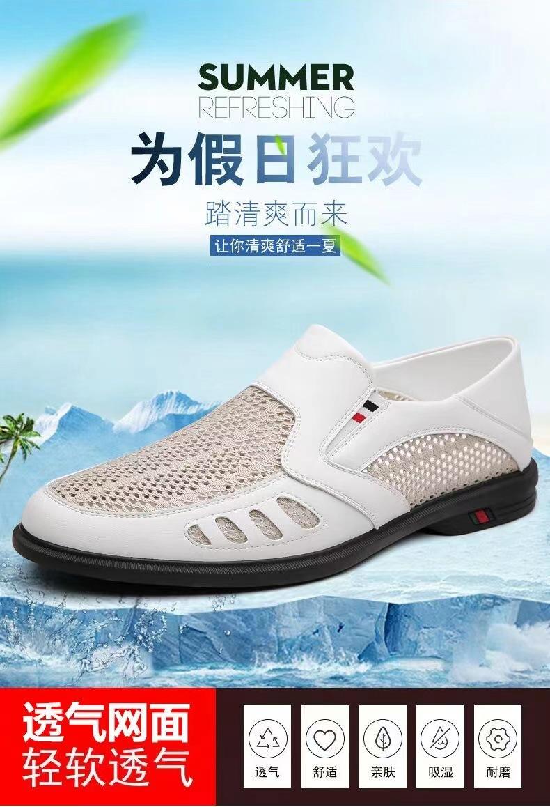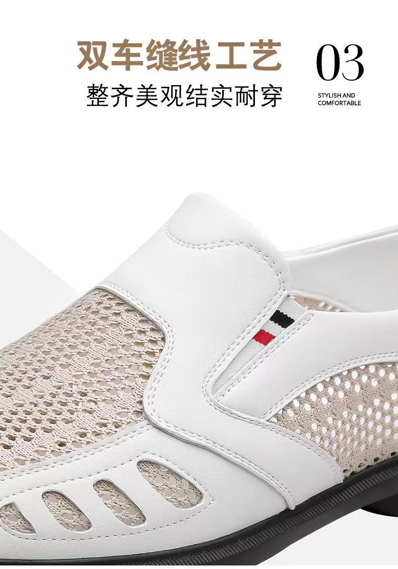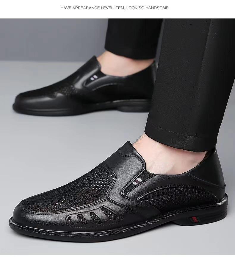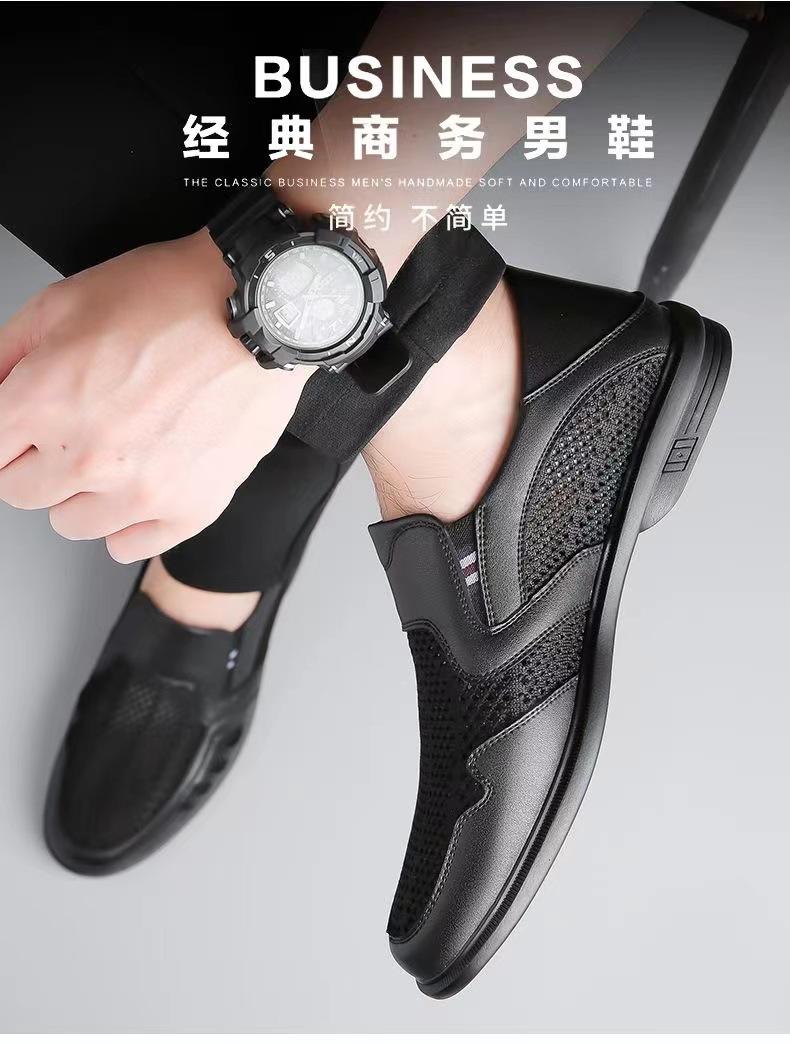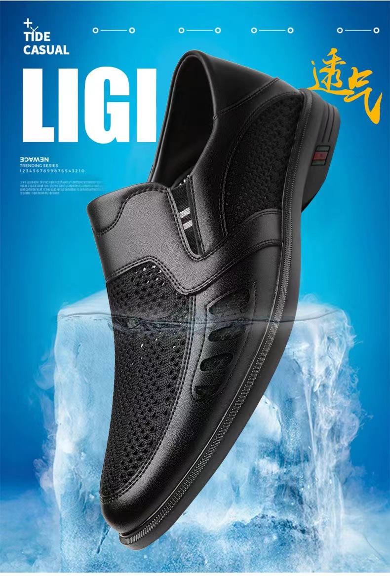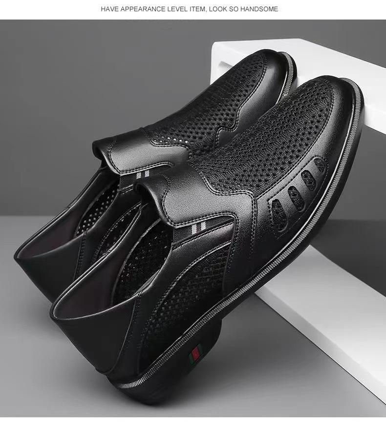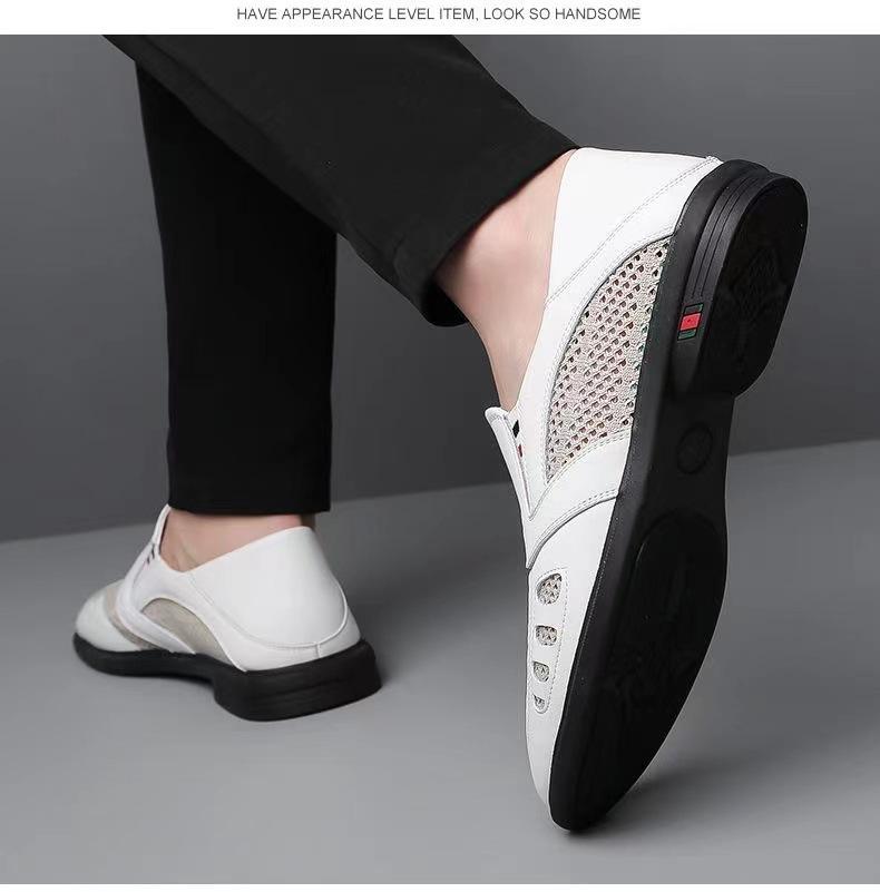 Dropshipping Transfronterizo Verano Nuevo Zapatos de Cuero Casuales de Negocios para Hombre Zapatos de Cuero de Malla Hueca Transpirables Slip-On de Moda para Hombre