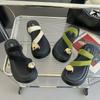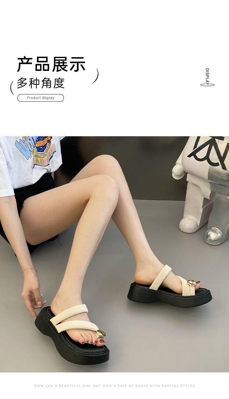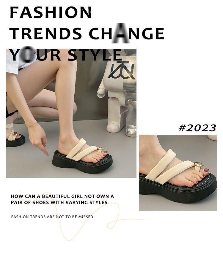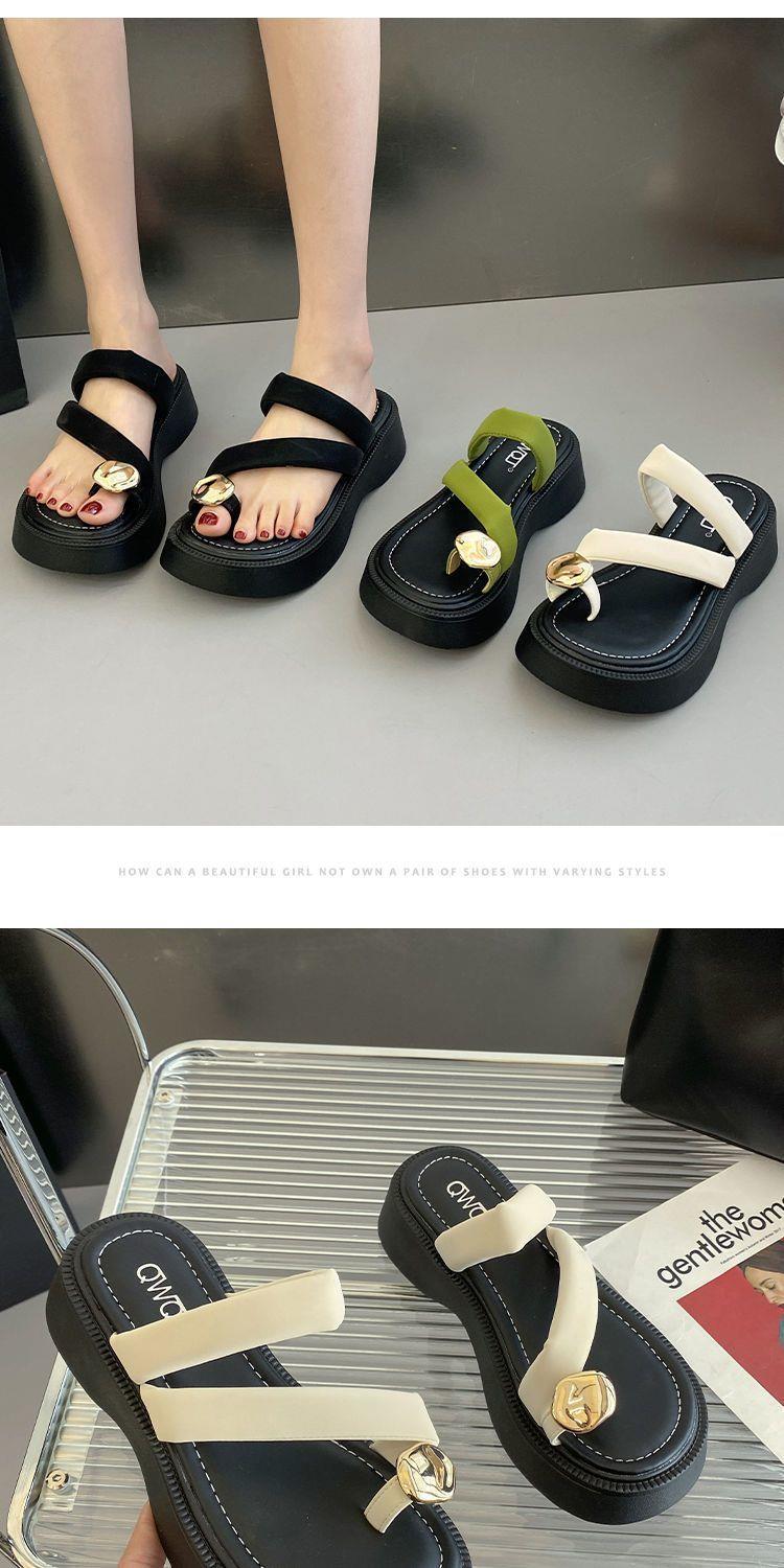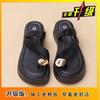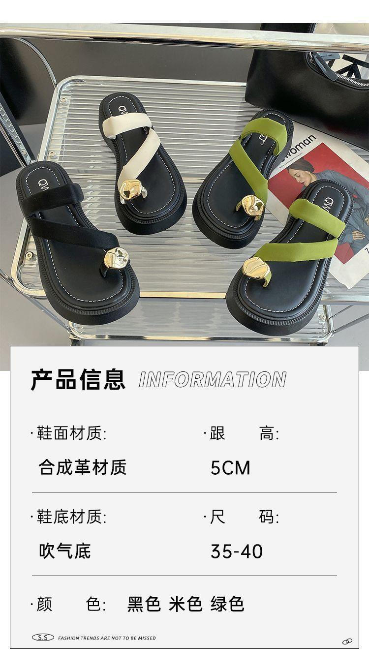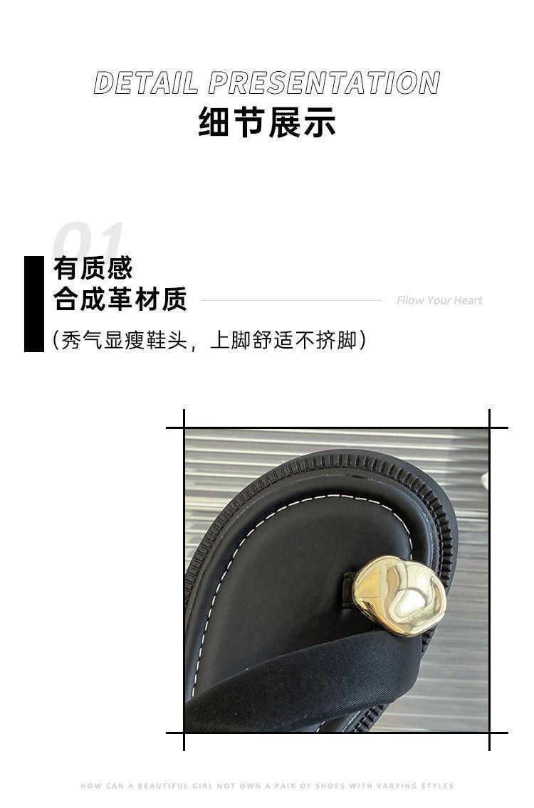 Chanclas de Dedo Grueso Pequeñas Estilo Coreano 2023 Verano Nuevas Pantuflas Decorativas Metálicas Mujer ins