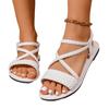 Sandalias planas de tiras cruzadas de talla grande para exportación europea y americana para mujer, banda elástica tejida transfronteriza, sandalias de playa ligeras
