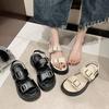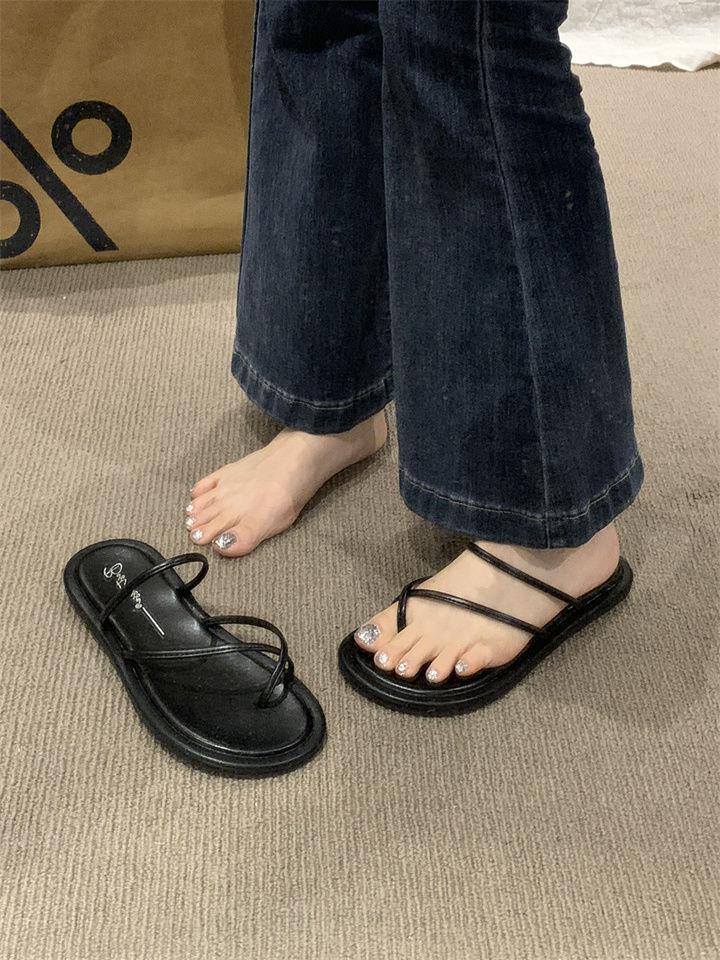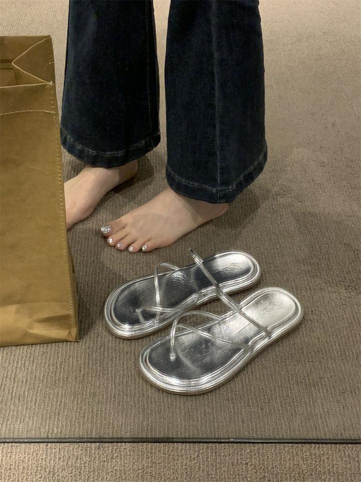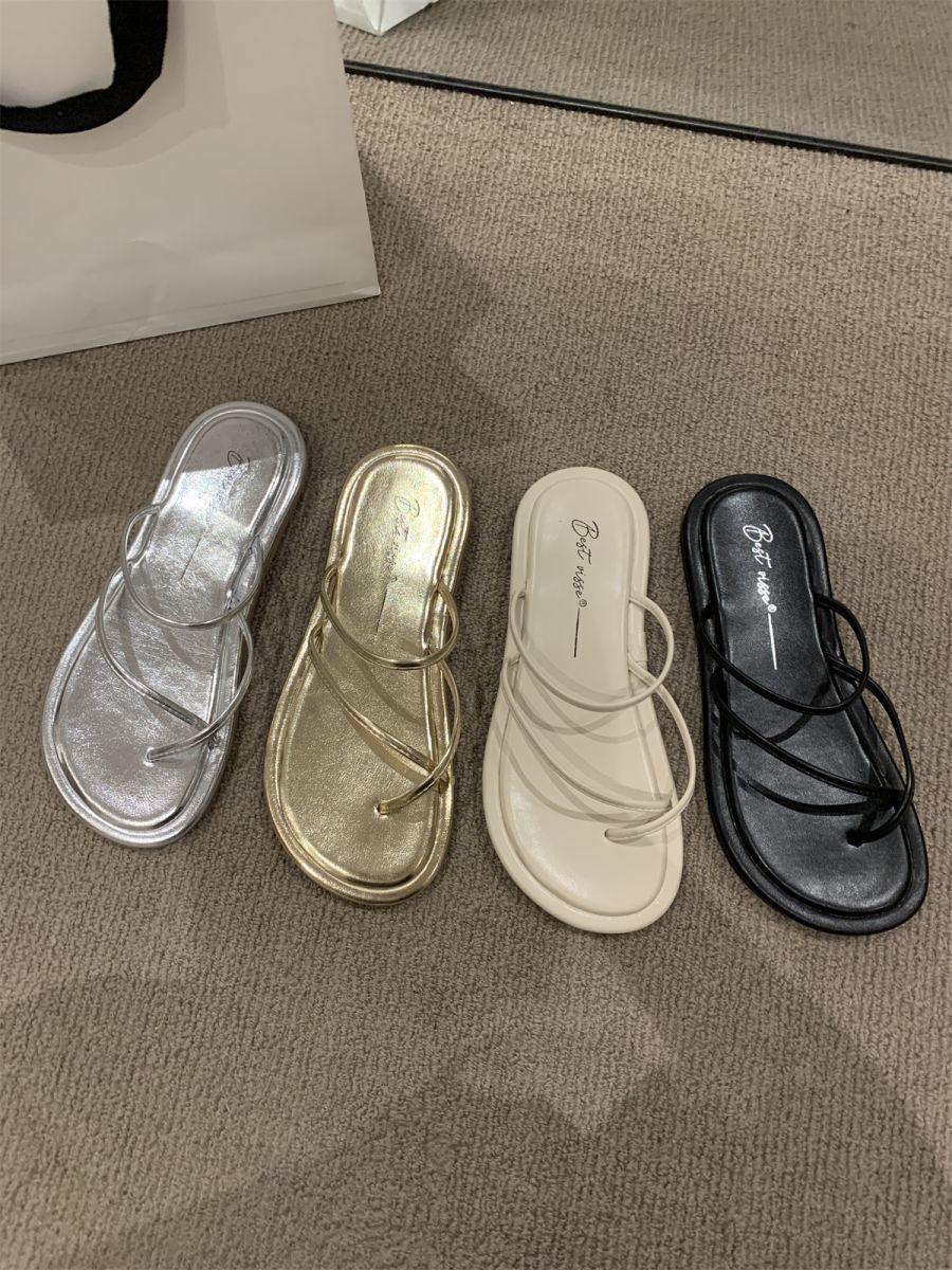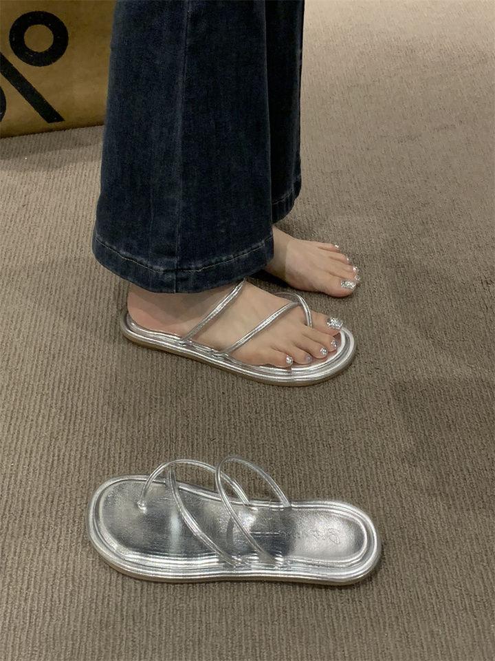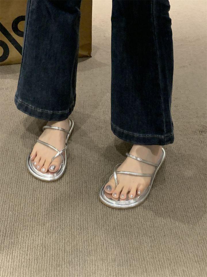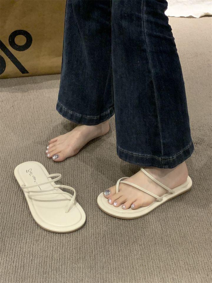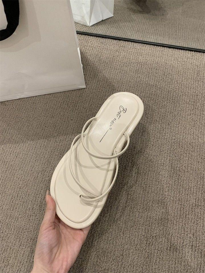 Sandalias de estilo francés para mujer, Primavera/Verano 2025 Nuevas Sandalias de tira fina sin cordones de suela blanda para combinar con vestidos, Sandalias de punta redonda