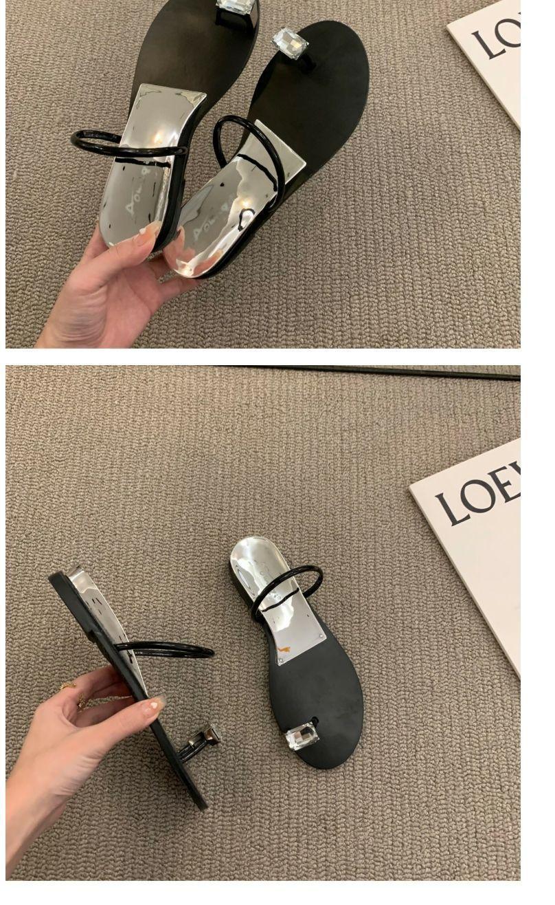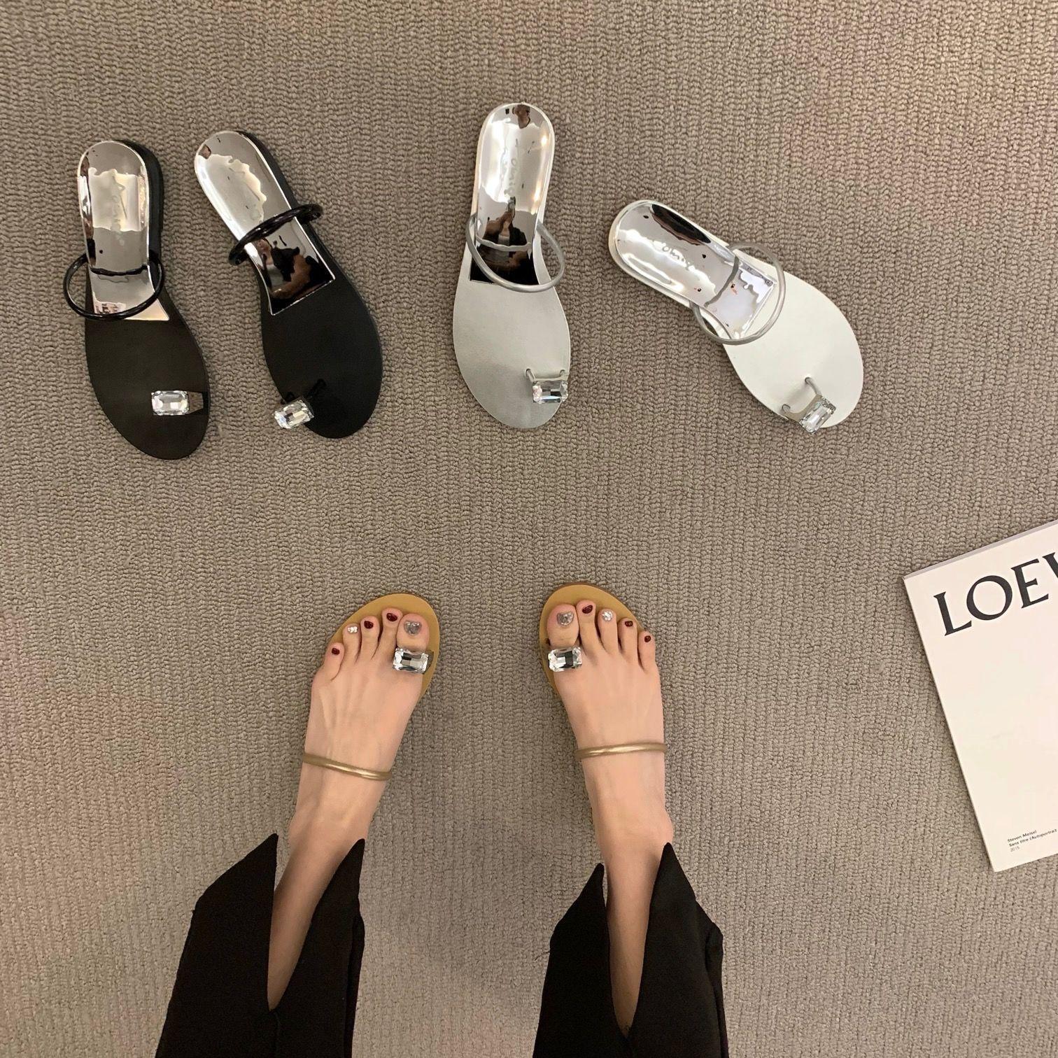 Sandalias Planas de Pedrería con Tanga para el Dedo para Mujer Zapatos 2025 Nuevo Verano Estilo Hada Verano Sandalias Nicho Francesas