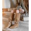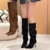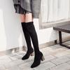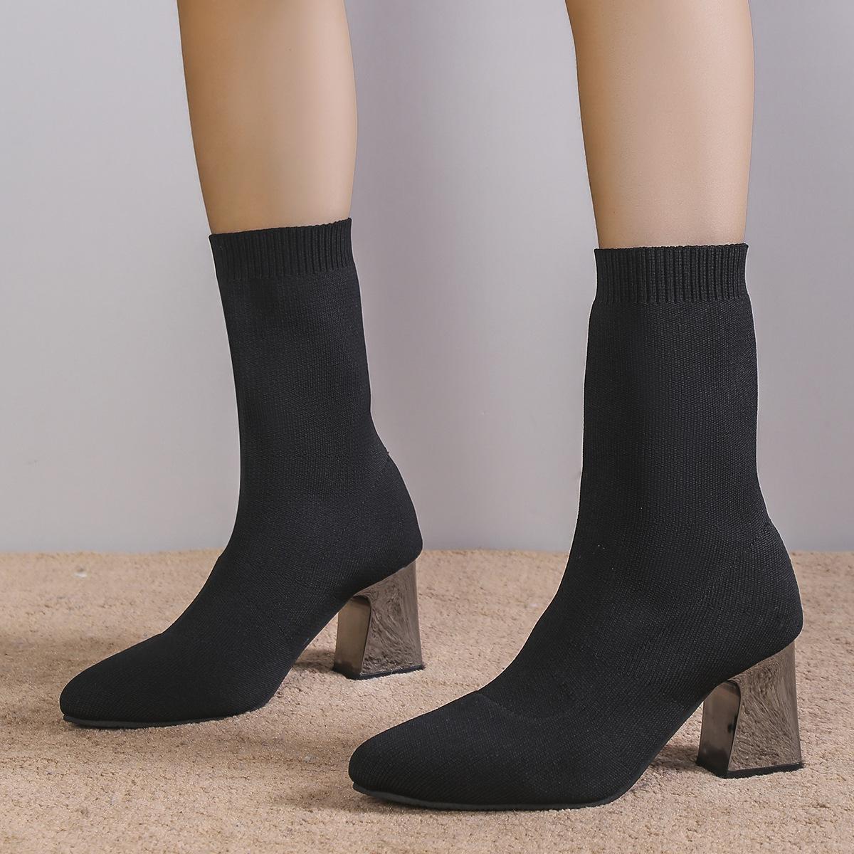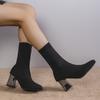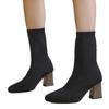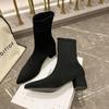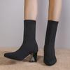 Botines calcetín de lana de punto para mujer, punta puntiaguda, media pantorrilla, otoño e invierno 2025, nuevos botines delgados de tacón alto, tacón grueso, elásticos, talla grande