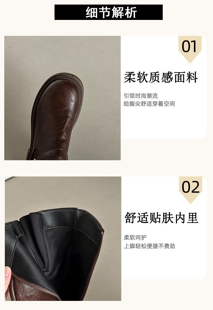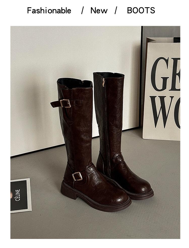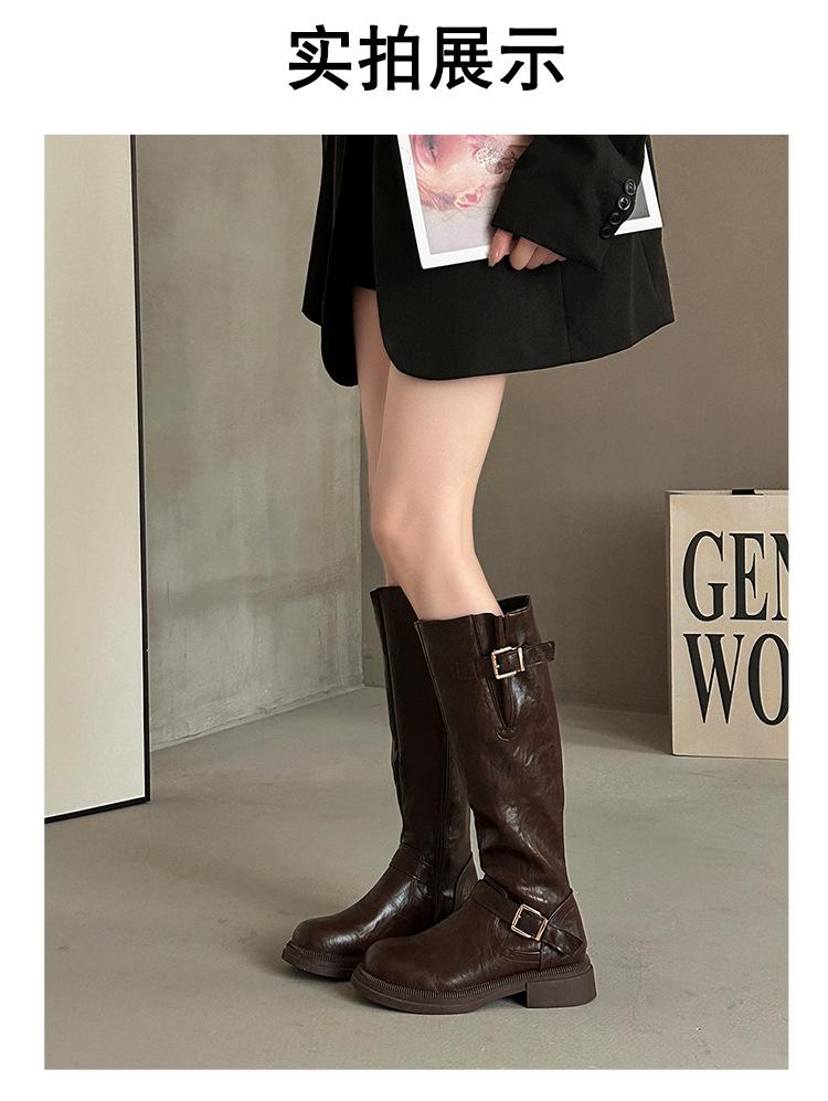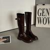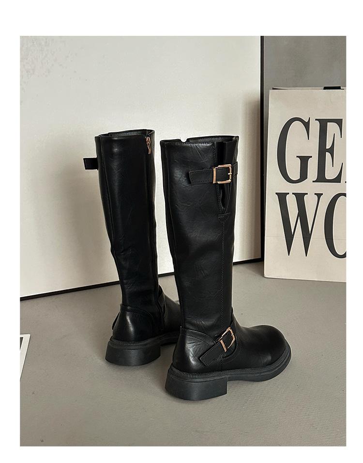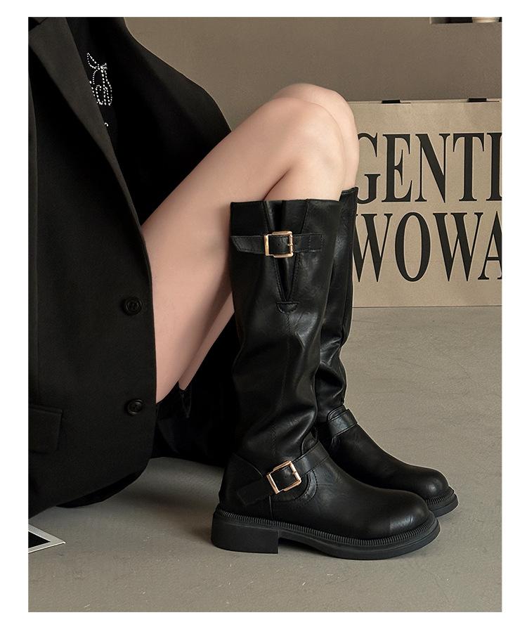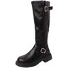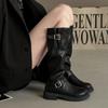 Botas Retro de Estilo Británico de Punta Redonda y Tacón Grueso para Mujer 2025 Verano Nuevo Clásico Elegante Hebilla de Cinturón Botas de Caballero