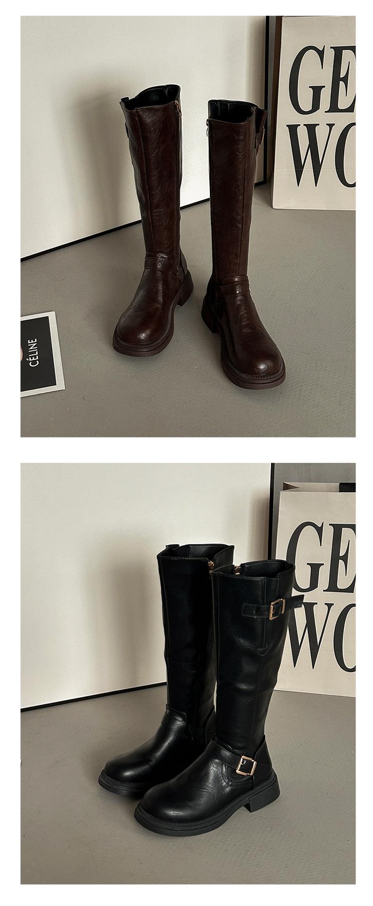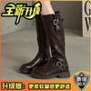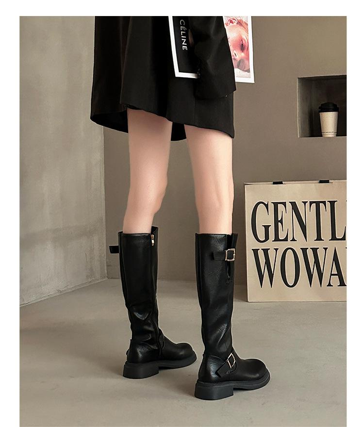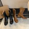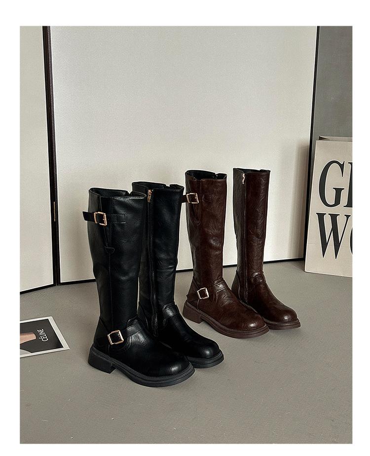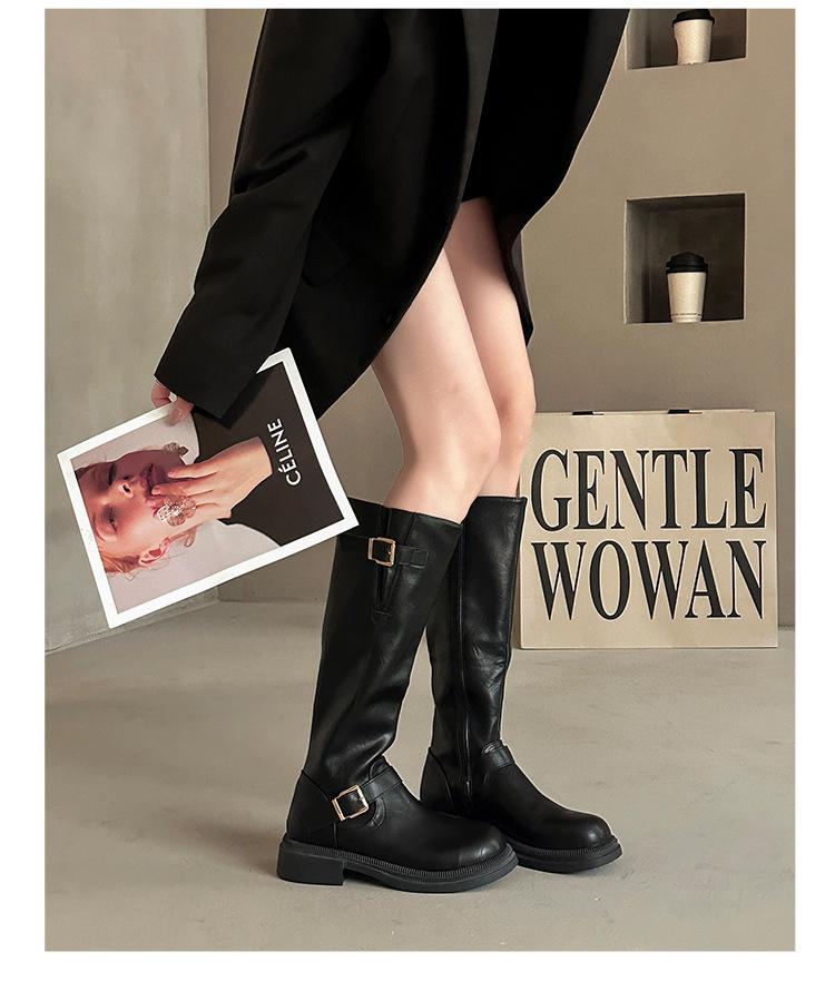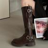 Botas Retro de Estilo Británico de Punta Redonda y Tacón Grueso para Mujer 2025 Verano Nuevo Clásico Elegante Hebilla de Cinturón Botas de Caballero