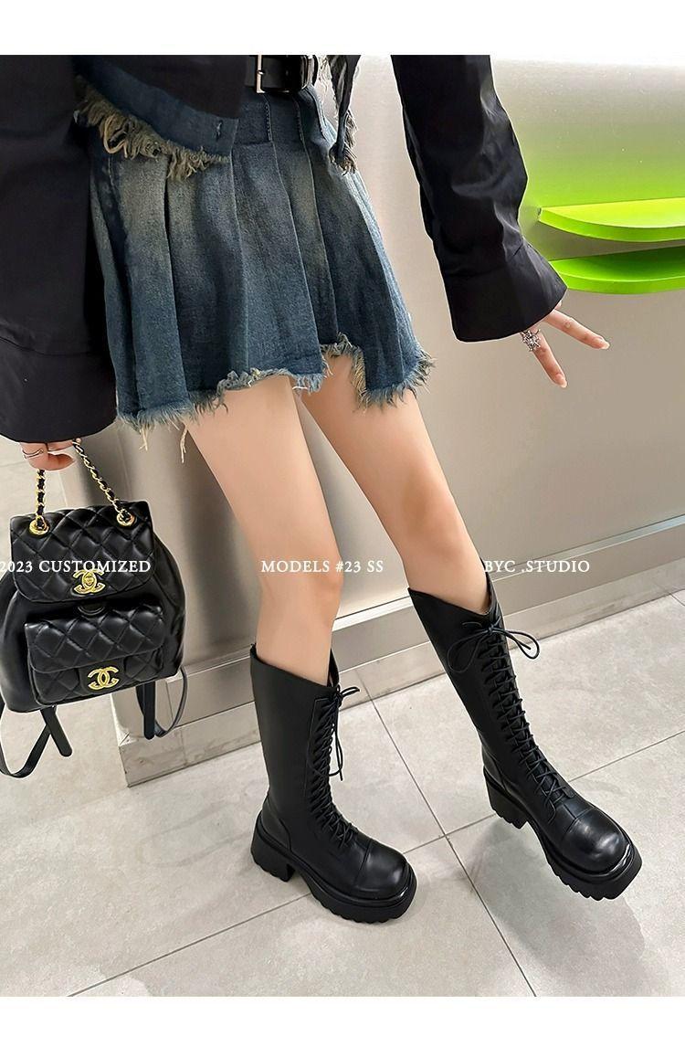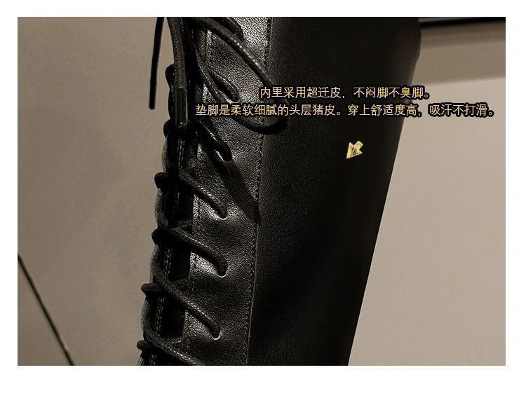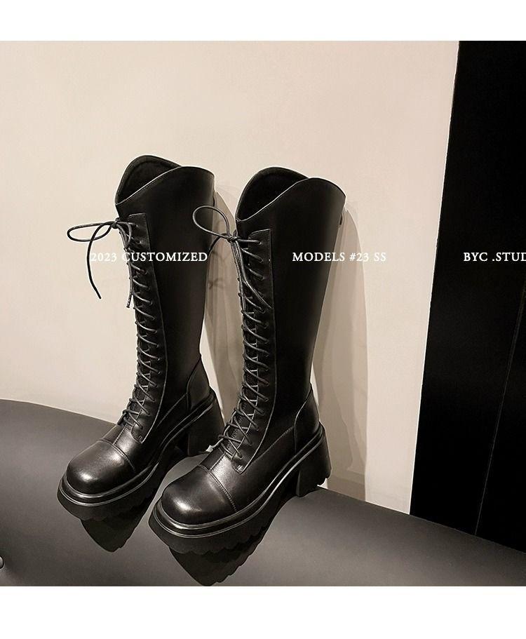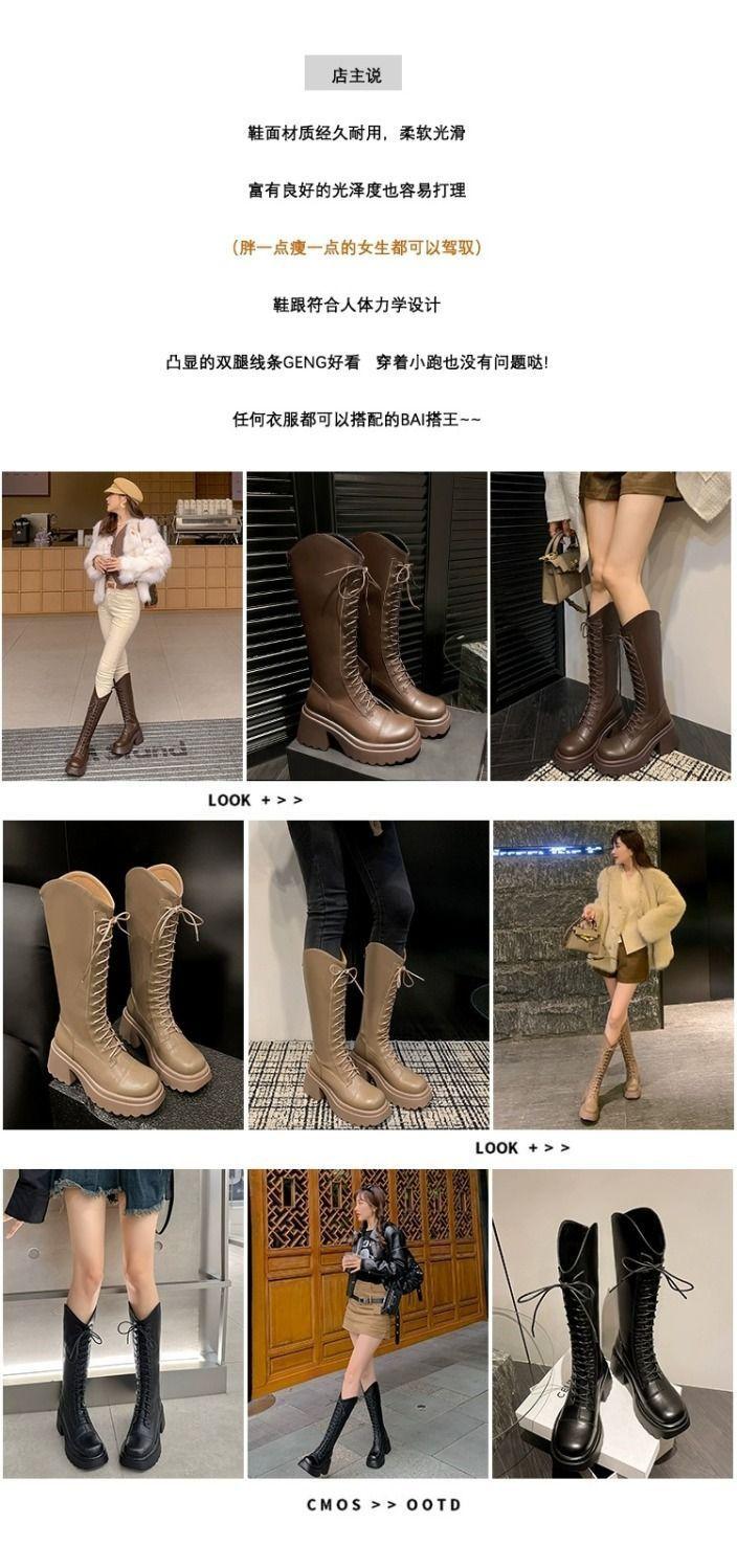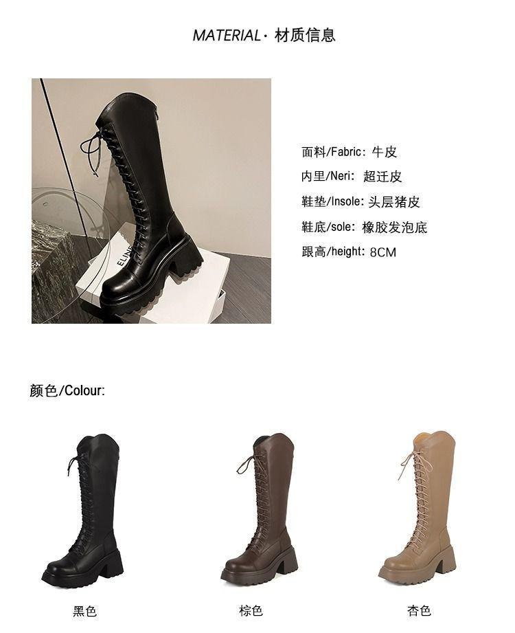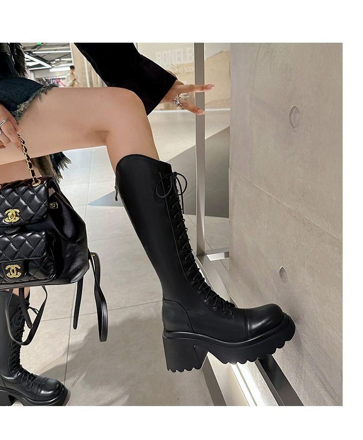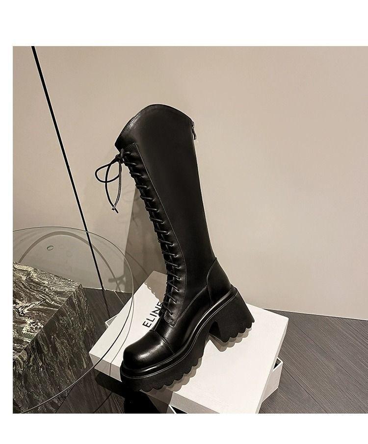 Botas Largas Versátiles de Boca en V con Suela Gruesa para Mujer Otoño e Invierno 2025 Botas Altas Ajustadas de Tacón Grueso por Encima de la Rodilla Botas de Caballero Ins
