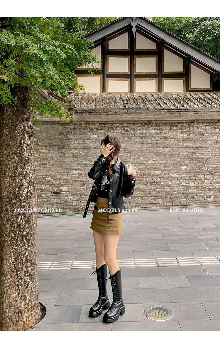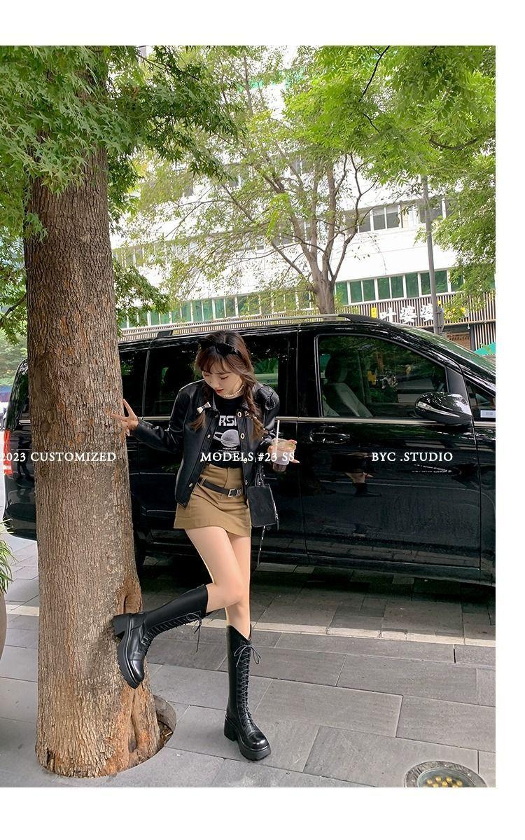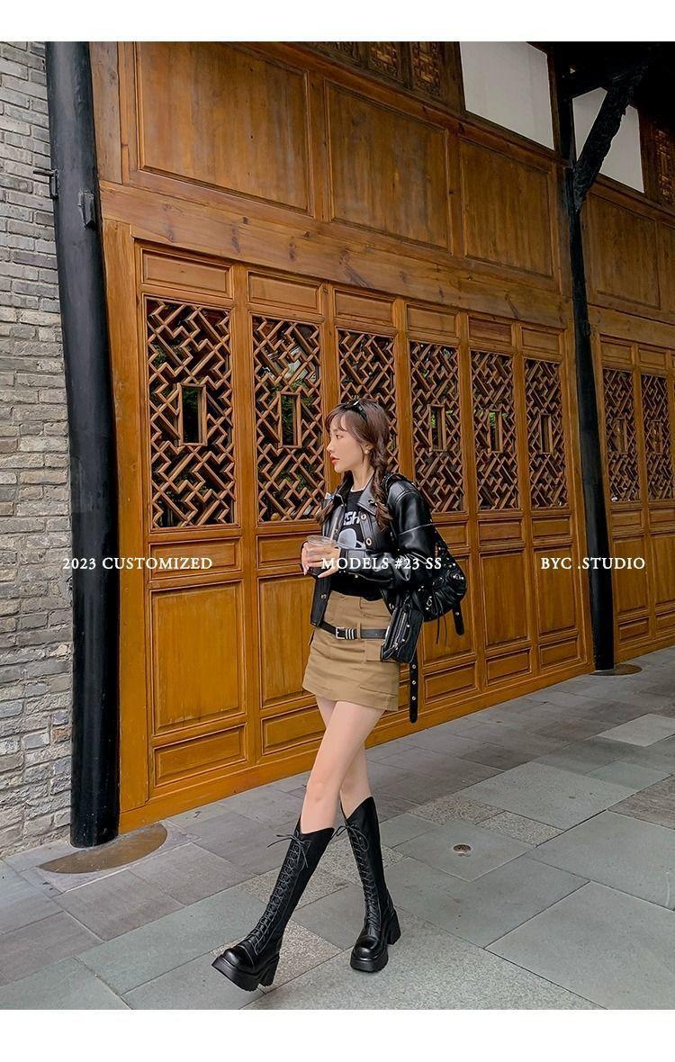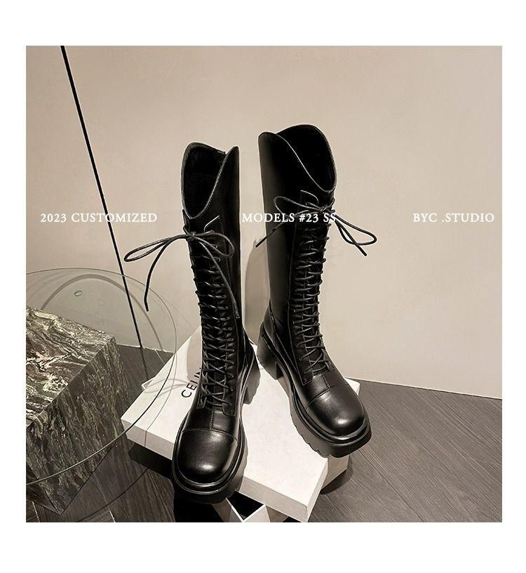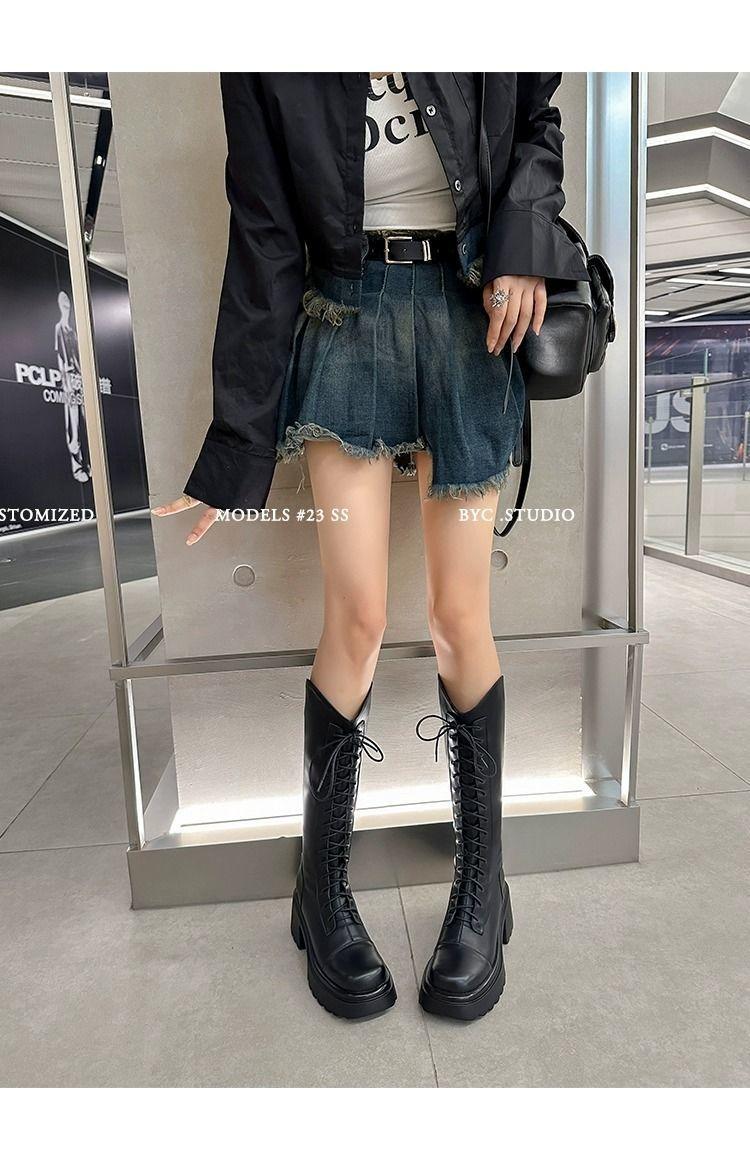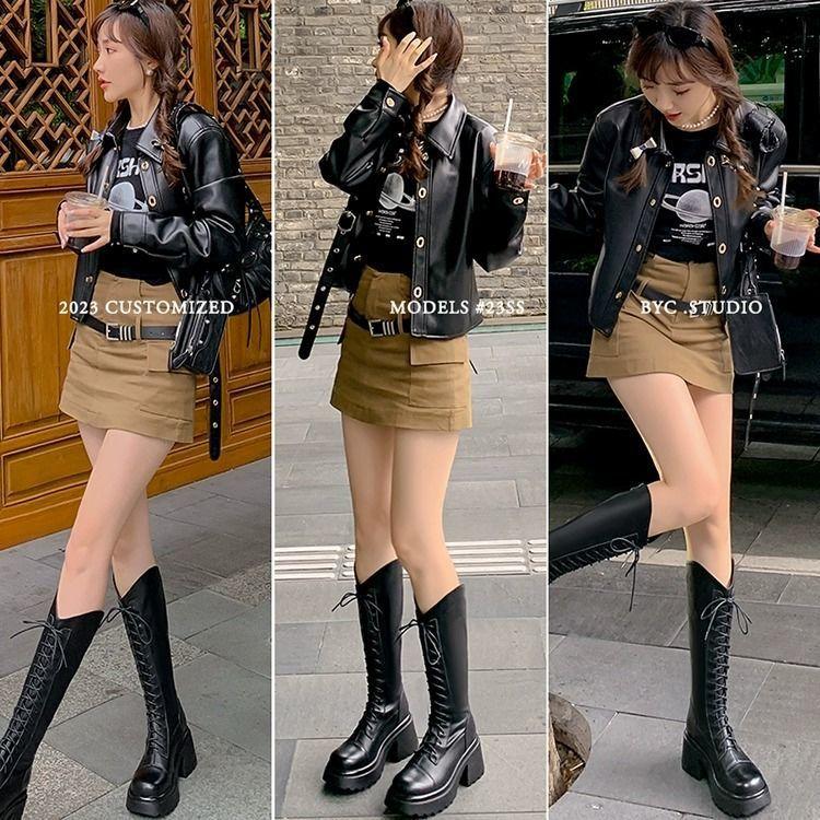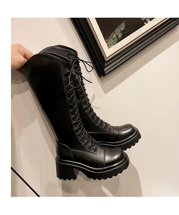 Botas Largas Versátiles de Boca en V con Suela Gruesa para Mujer Otoño e Invierno 2025 Botas Altas Ajustadas de Tacón Grueso por Encima de la Rodilla Botas de Caballero Ins