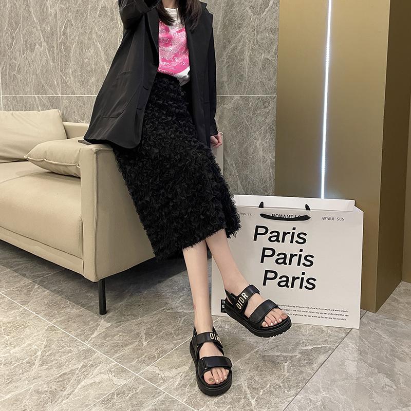 Sandalias de Moda de Comercio Exterior de Suela Gruesa para Mujer 2025 Verano Nuevas Sandalias Velcro de Suela Gruesa Zapatillas Versátiles Casuales de Verano