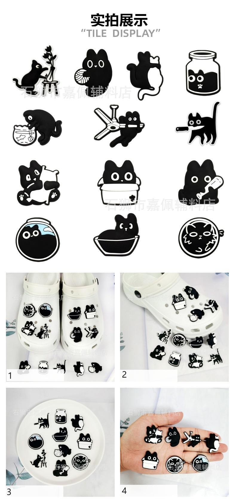 Zapatos de Gato Negro Zapatos con Agujeros de Flores Accesorios DIY Dibujos Animados de Alta Gama Lindo Hebilla Decorativa de PVC Removible Venta al por Mayor Transfronteriza