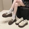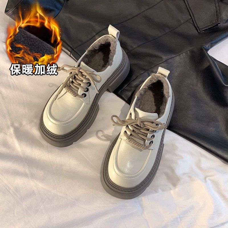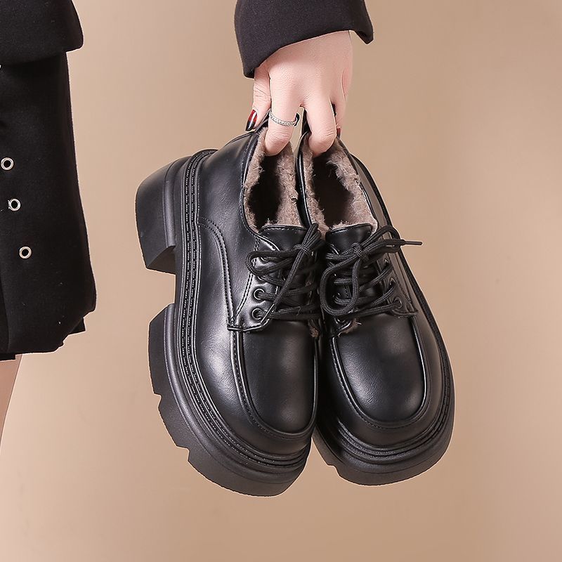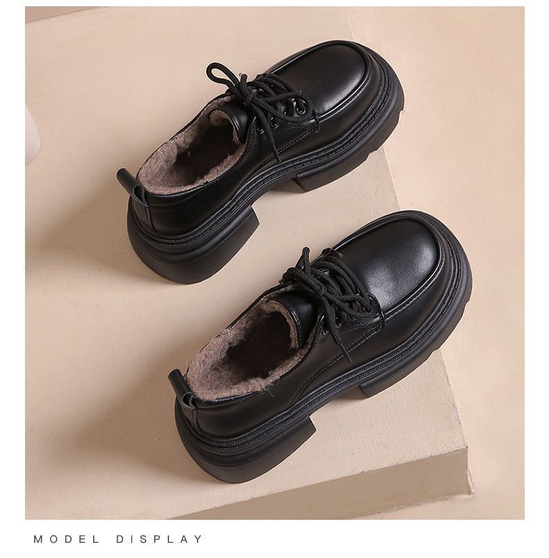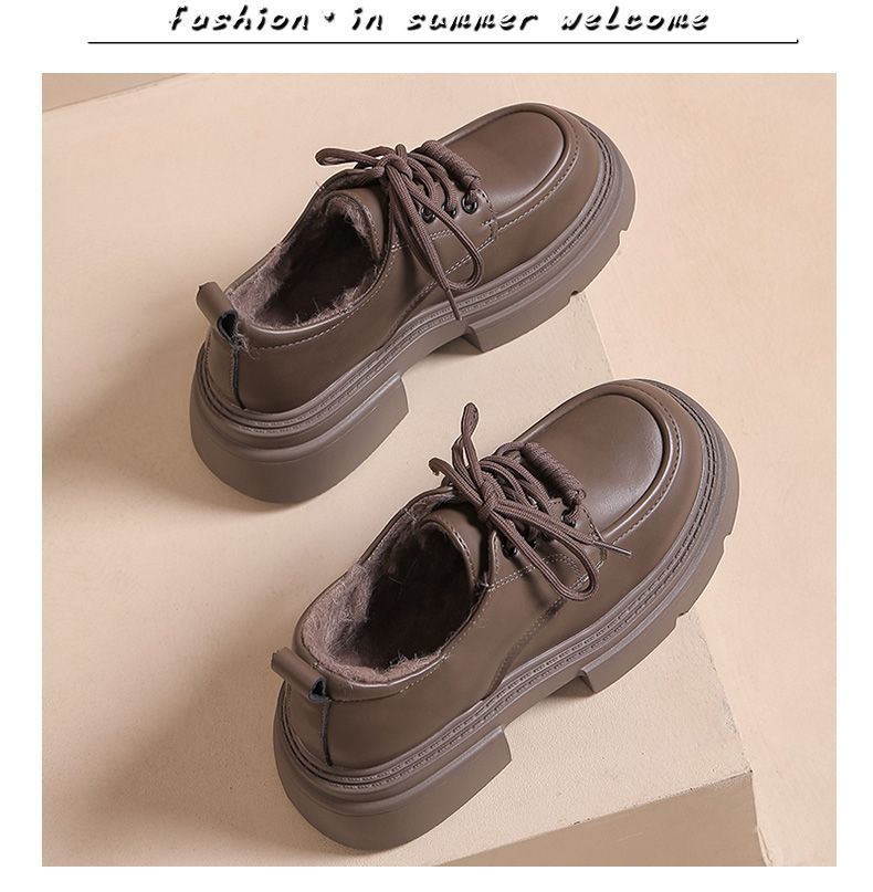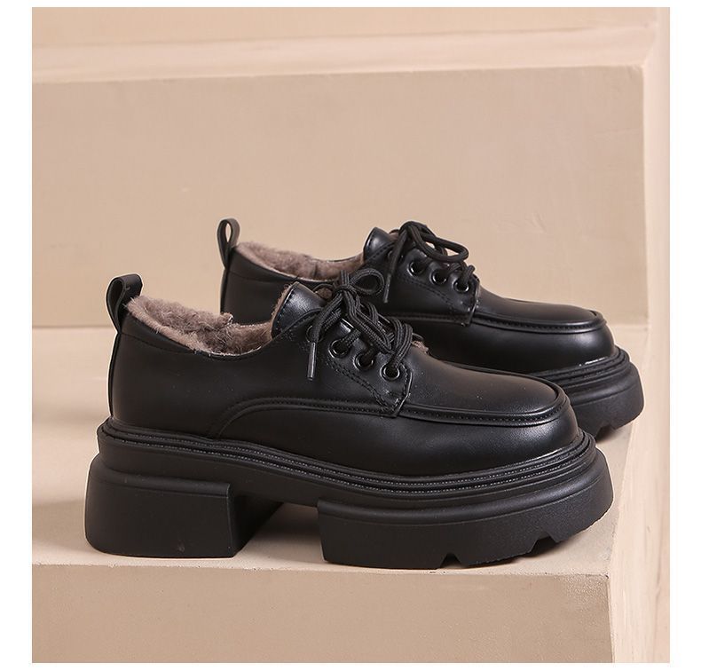 Zapatos de Cuero Pequeños de Suela Gruesa Estilo Británico para Mujer 2025 Invierno Nuevo Retro Versátil Forrado de Felpa Suela Gruesa para Aumentar la Altura Mocasines con Cordones