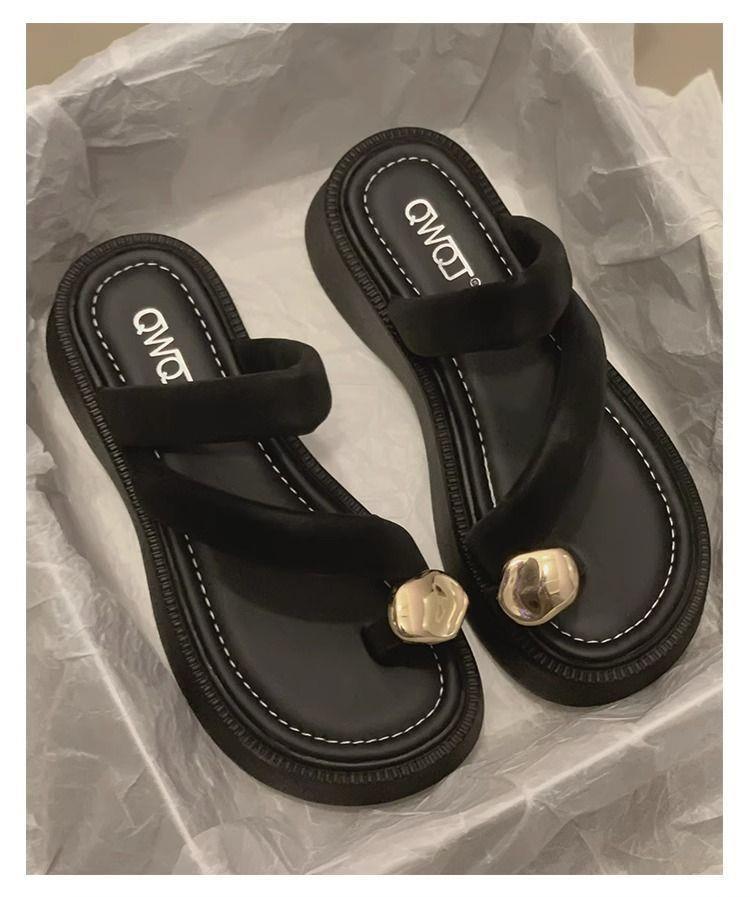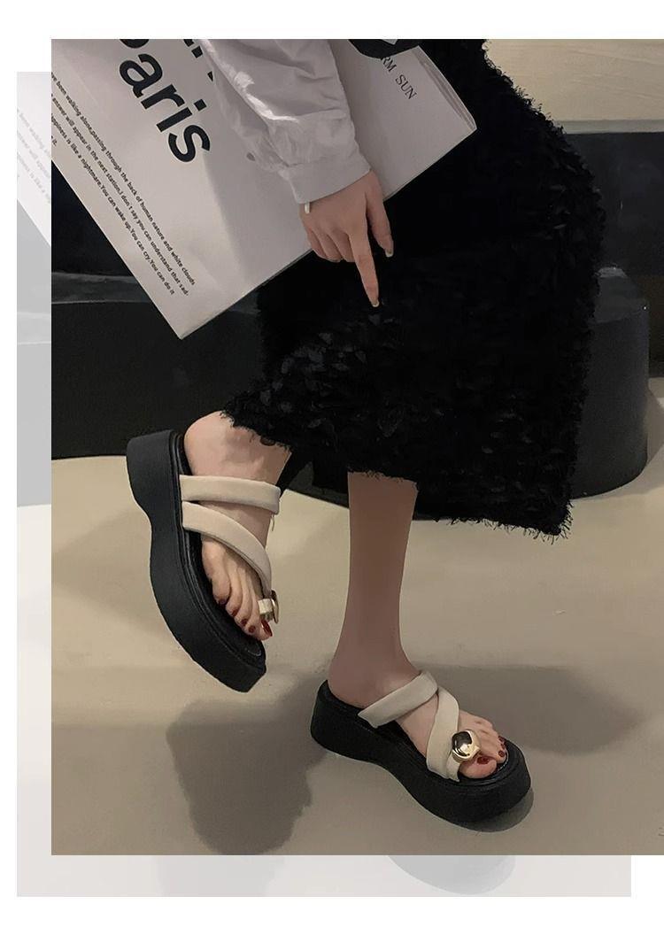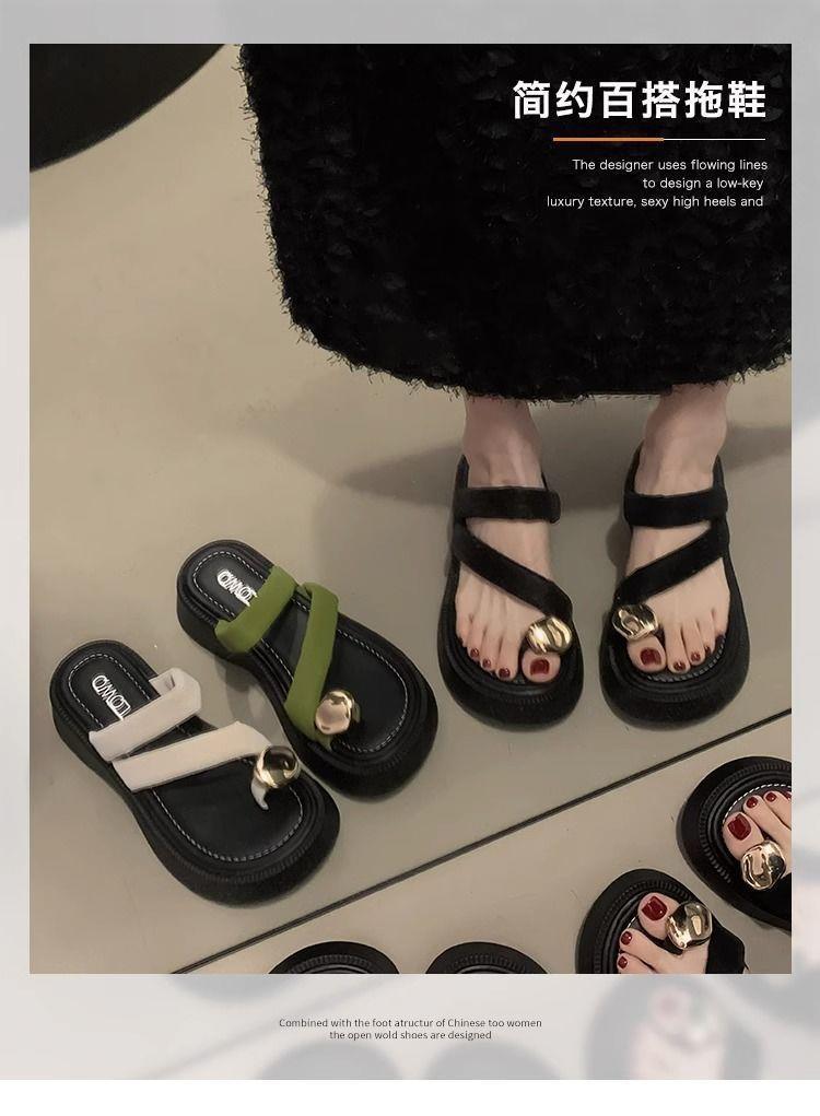 Zapatillas sin cordones para mujer, verano 2023, nuevas, de moda, combinables con todo, de metal, con suela gruesa, cómodas y casuales.