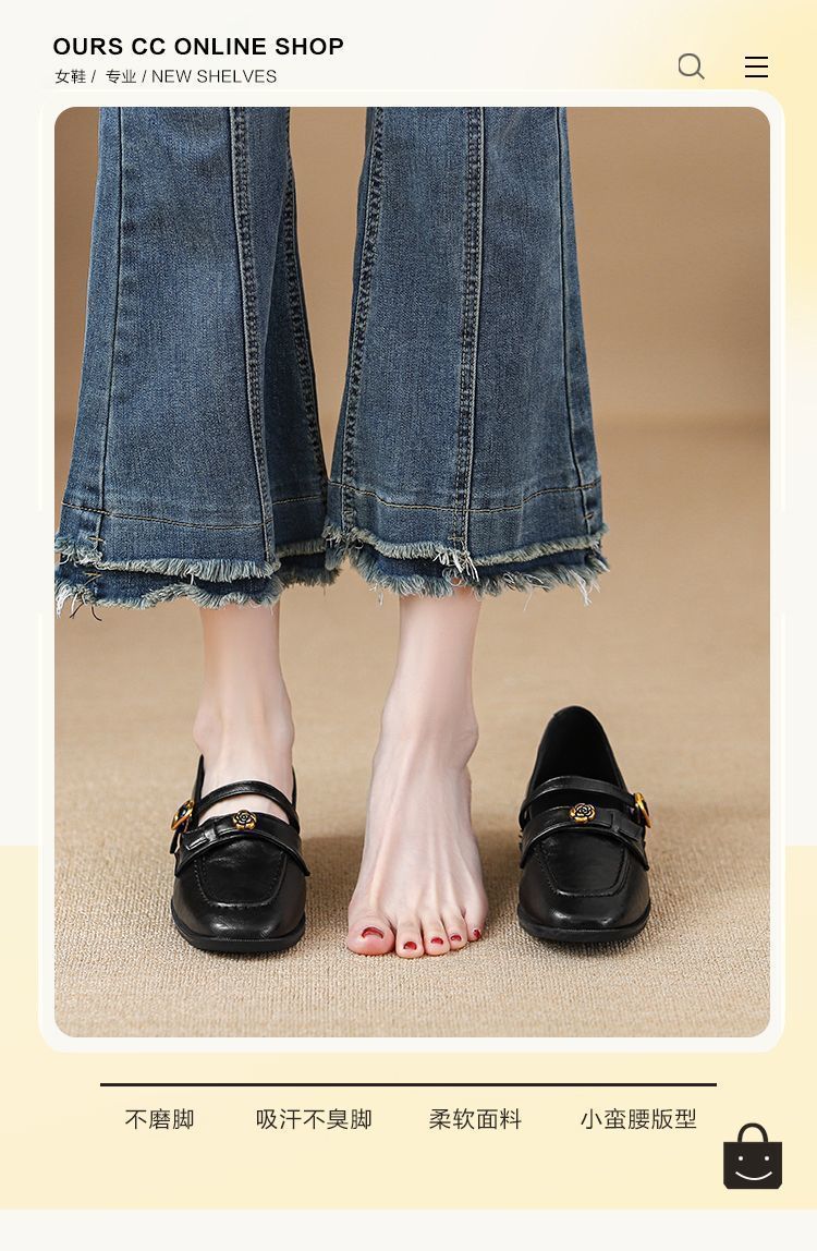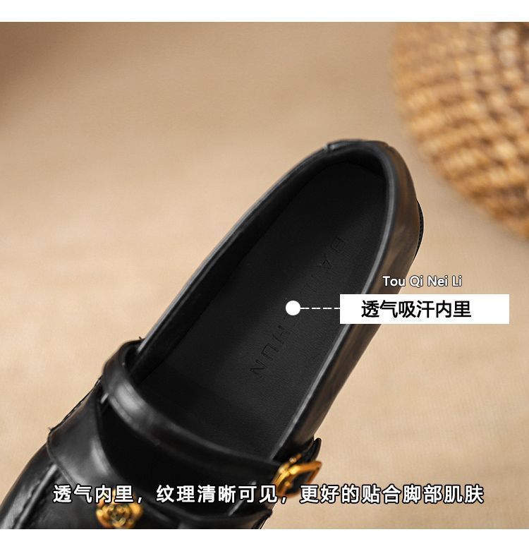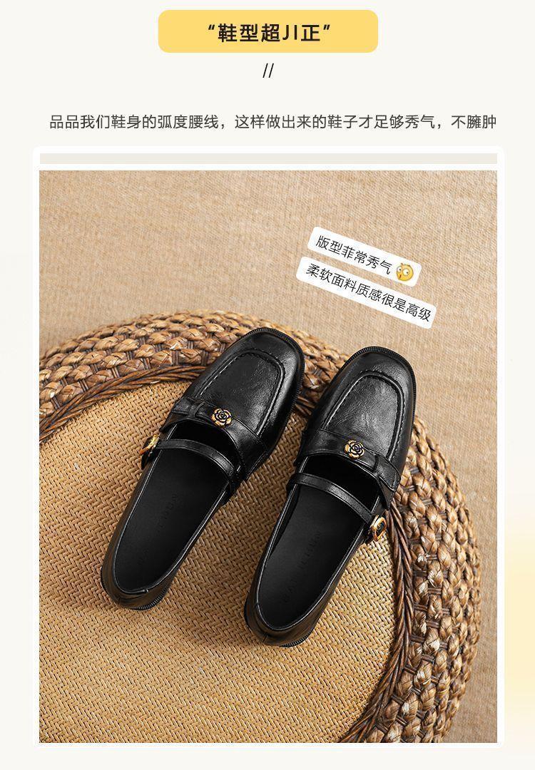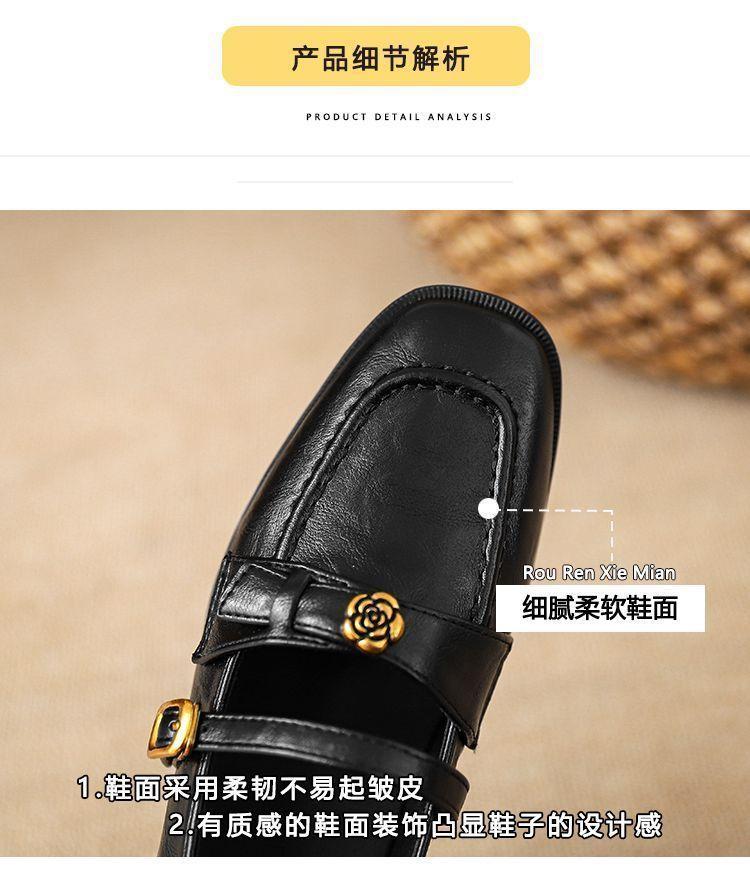 Zapatos Mary Jane sin cordones para mujer 2025 Flats de suela blanda Camelia Retro Zapatos pequeños de cuero Tacón grueso Hebilla Zapatos de trabajo