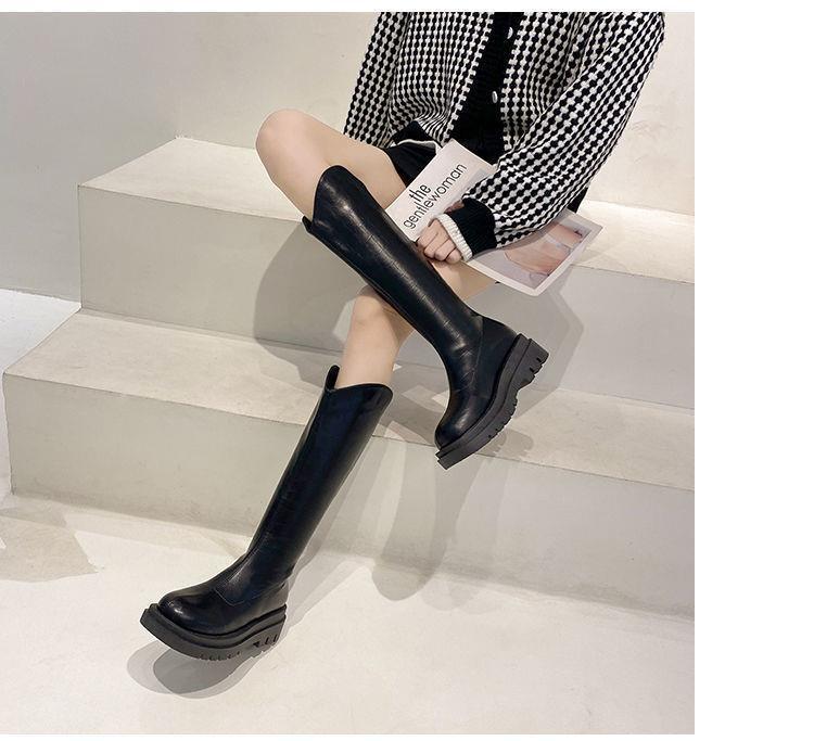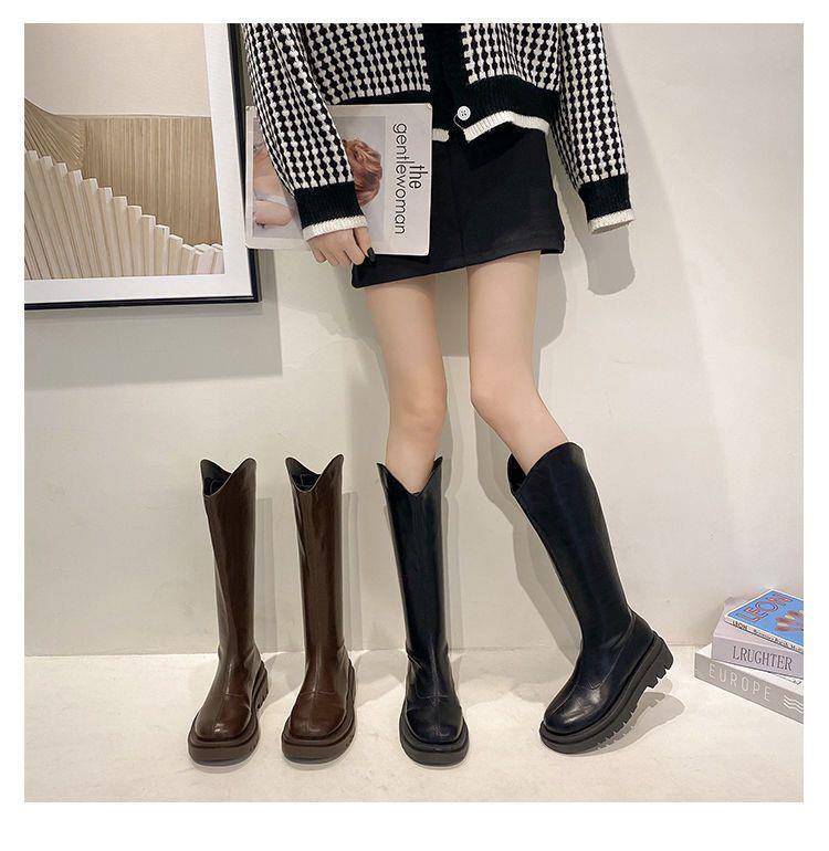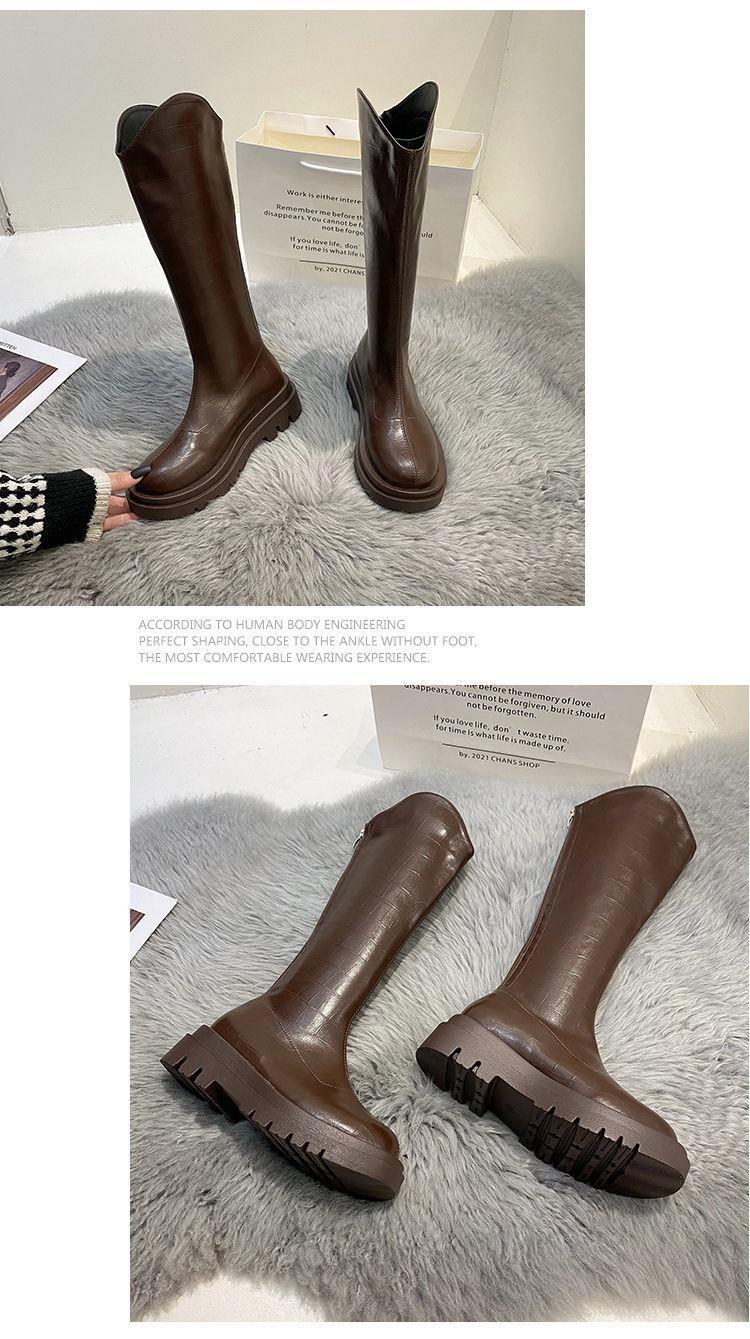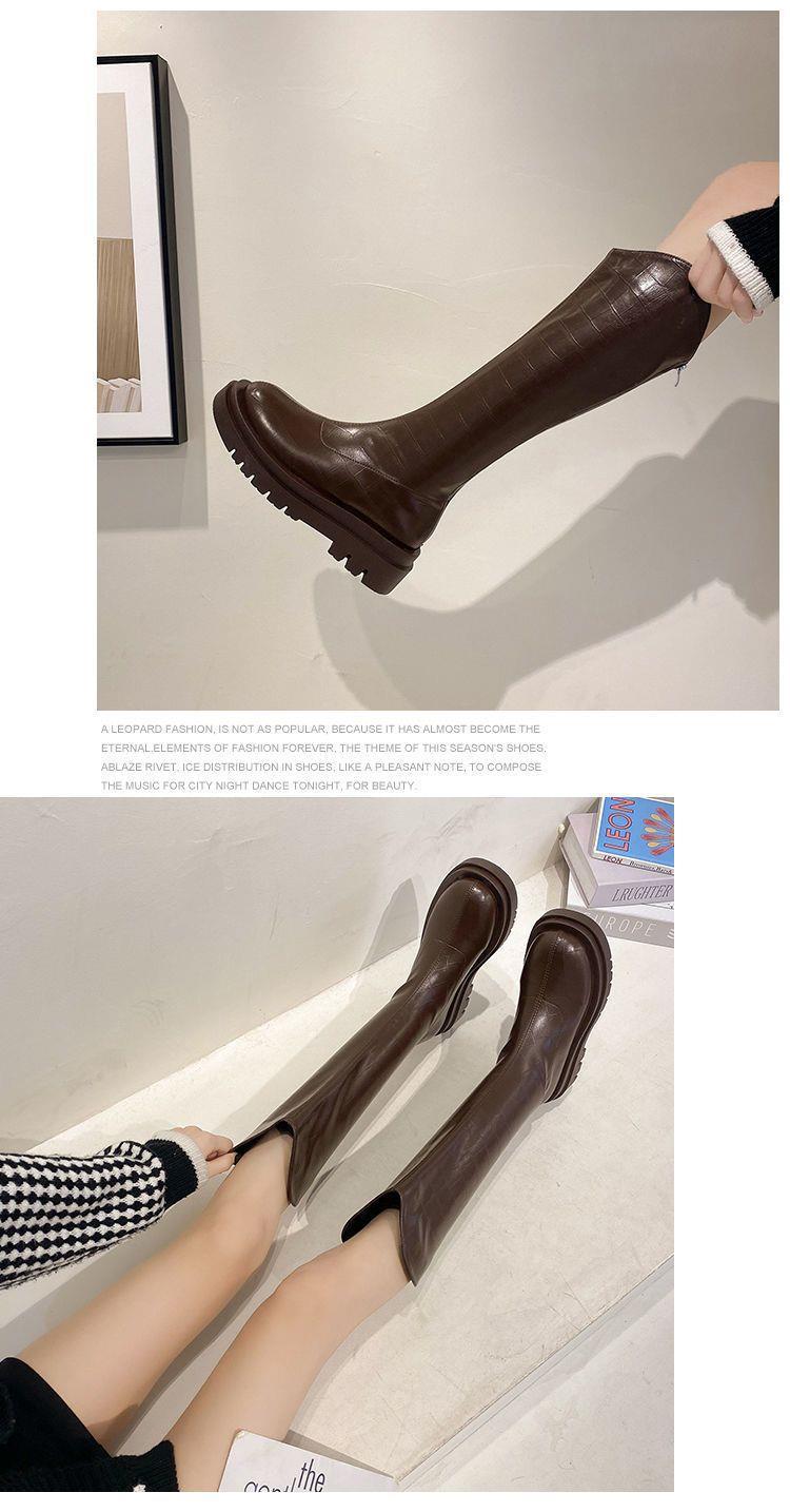 Otoño e Invierno Nuevo Estilo Coreano Suela Gruesa pero Botas Altas hasta la Rodilla para Mujer Popular en Internet Moda Suela Plana Suela Gruesa Cierre Botas Altas de Caballero