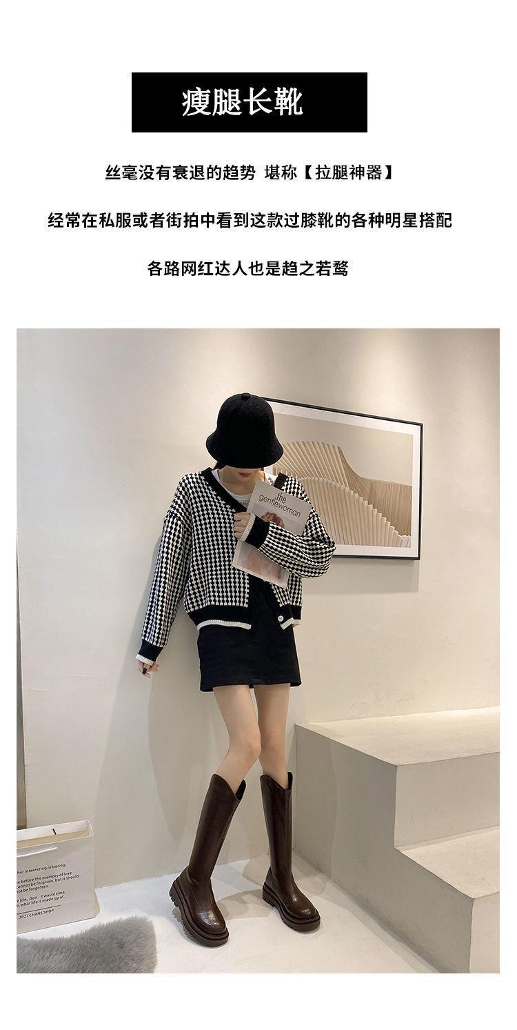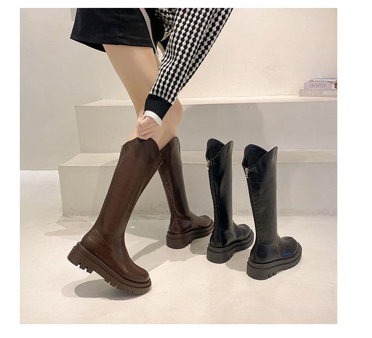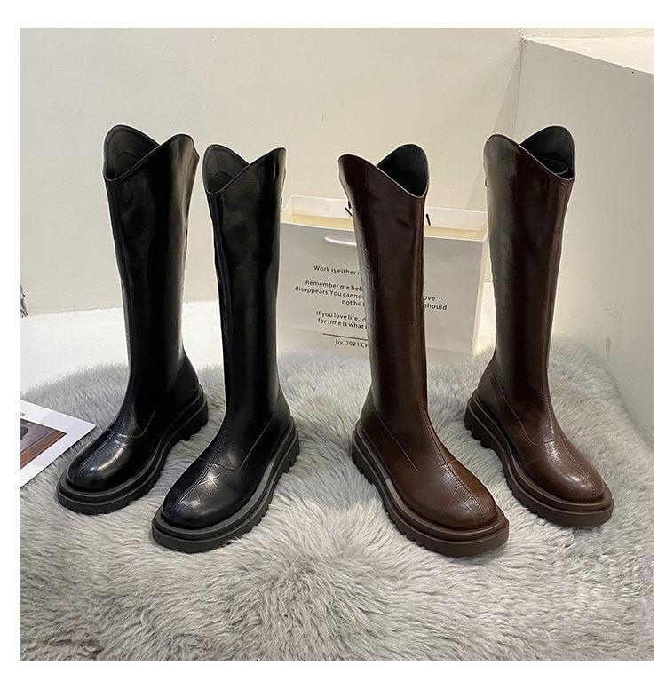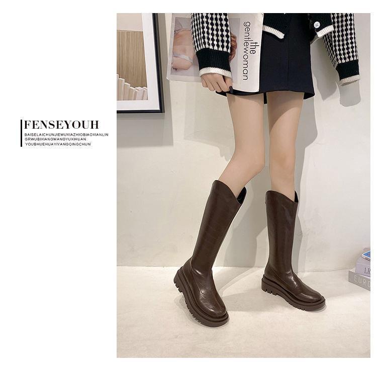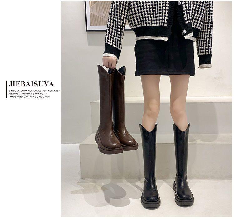 Otoño e Invierno Nuevo Estilo Coreano Suela Gruesa pero Botas Altas hasta la Rodilla para Mujer Popular en Internet Moda Suela Plana Suela Gruesa Cierre Botas Altas de Caballero