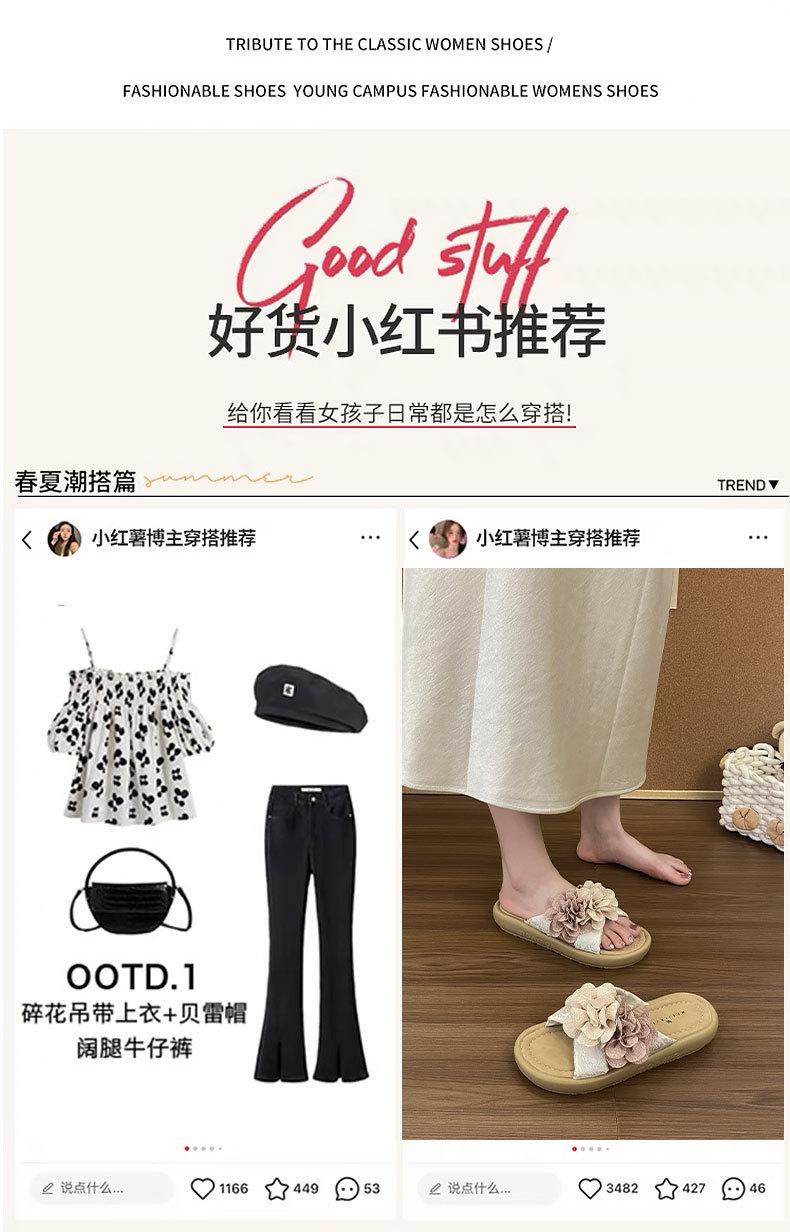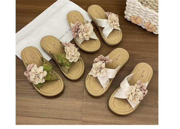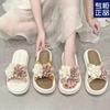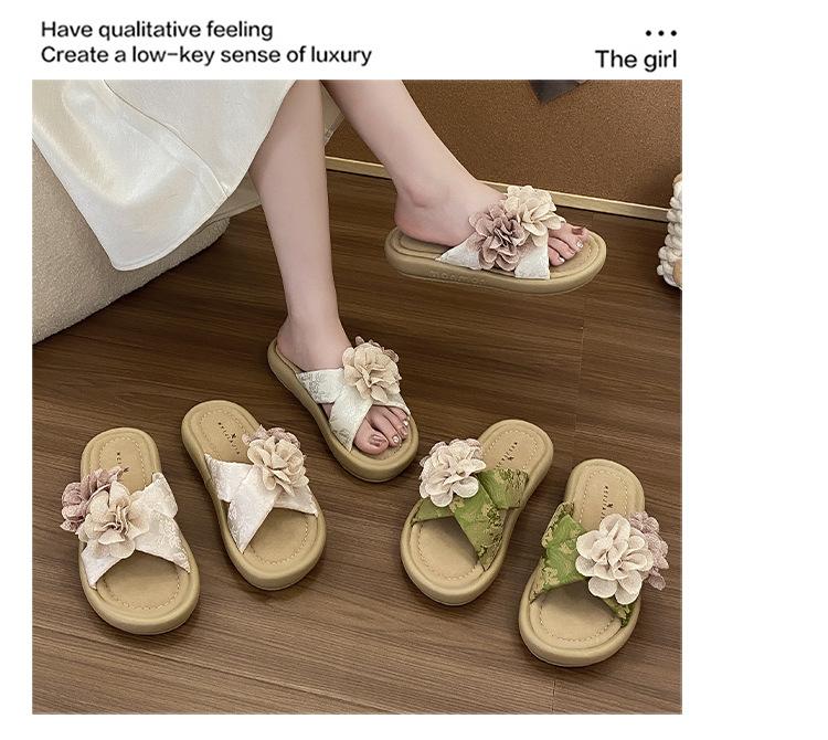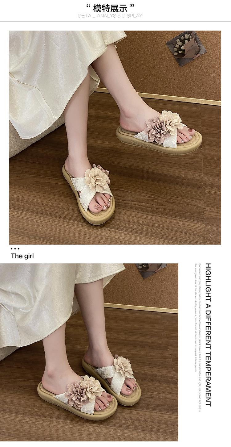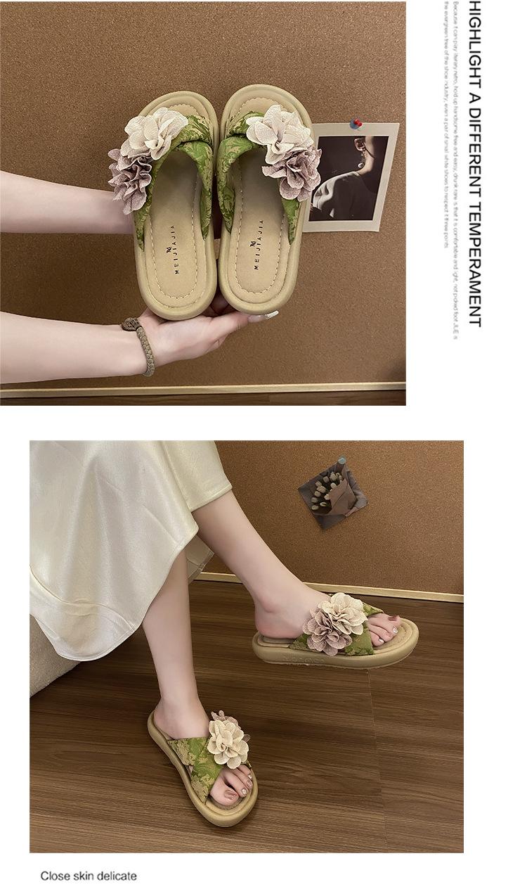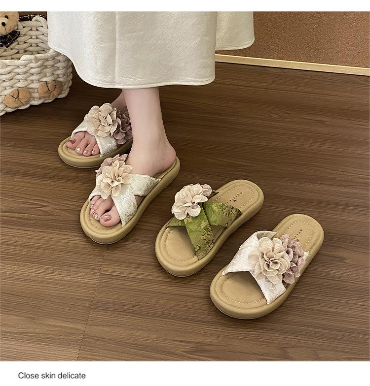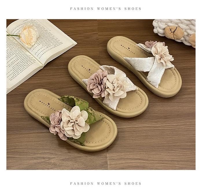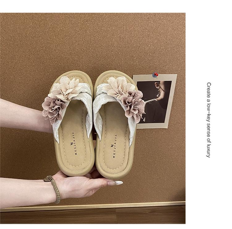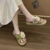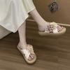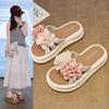 Zapatillas planas de hada de celebridad de Internet para mujer Verano 2025 Nuevo calzado exterior Antideslizantes Flor junto al mar Vacaciones Zapatos de playa