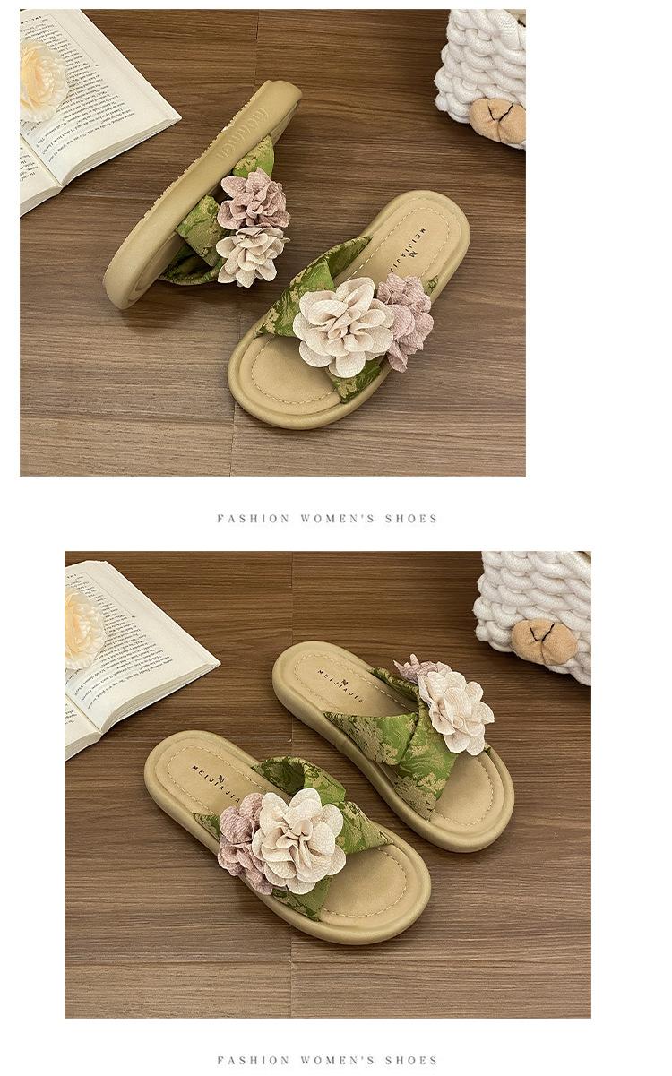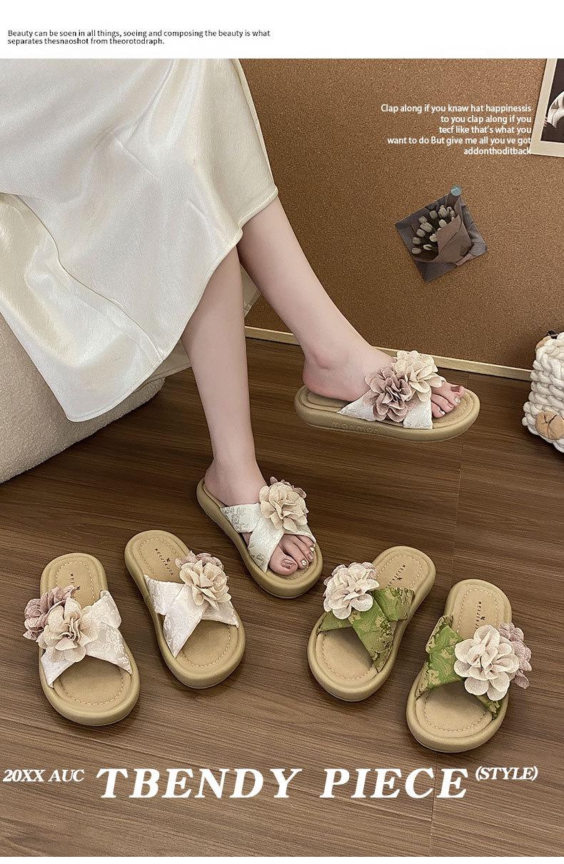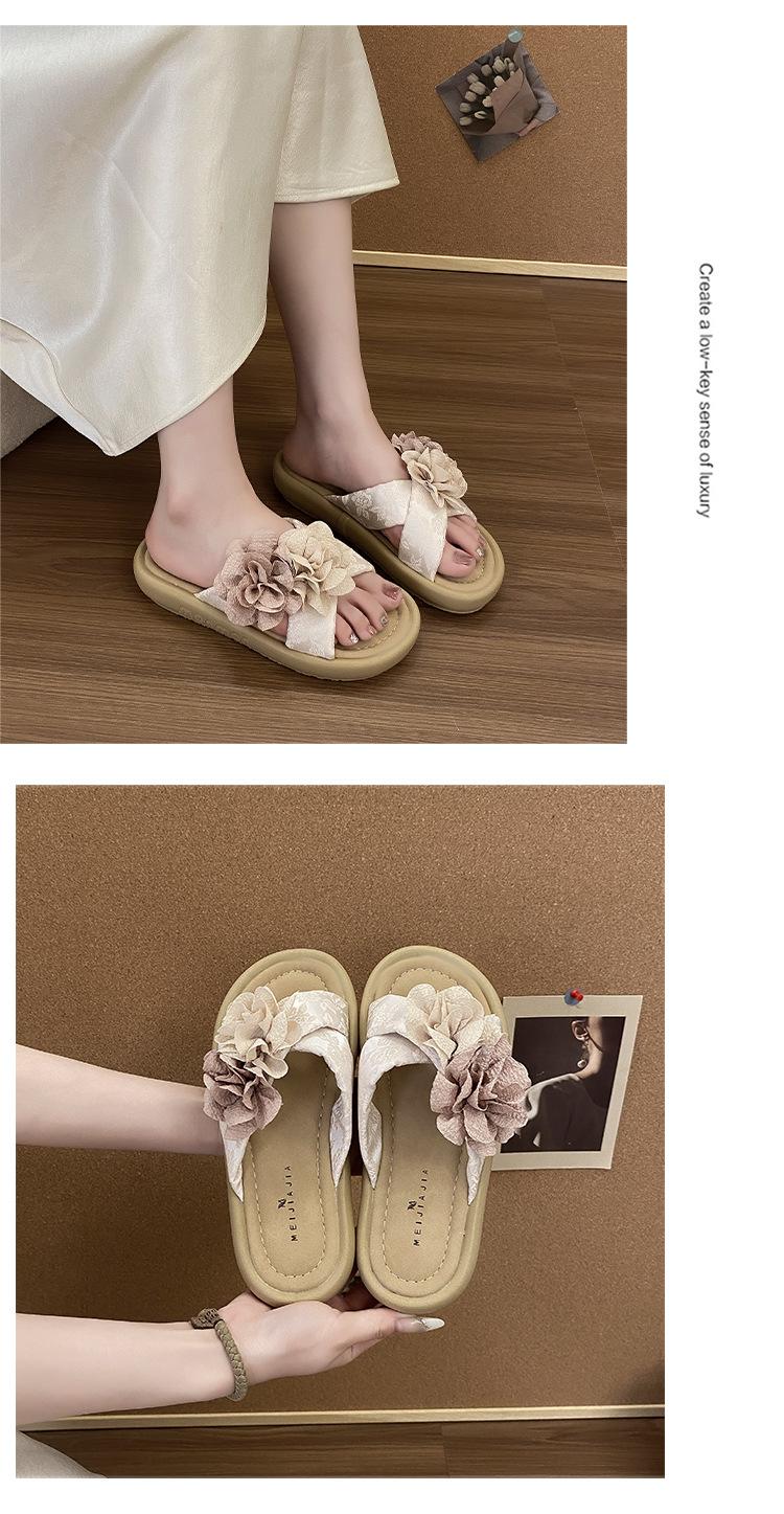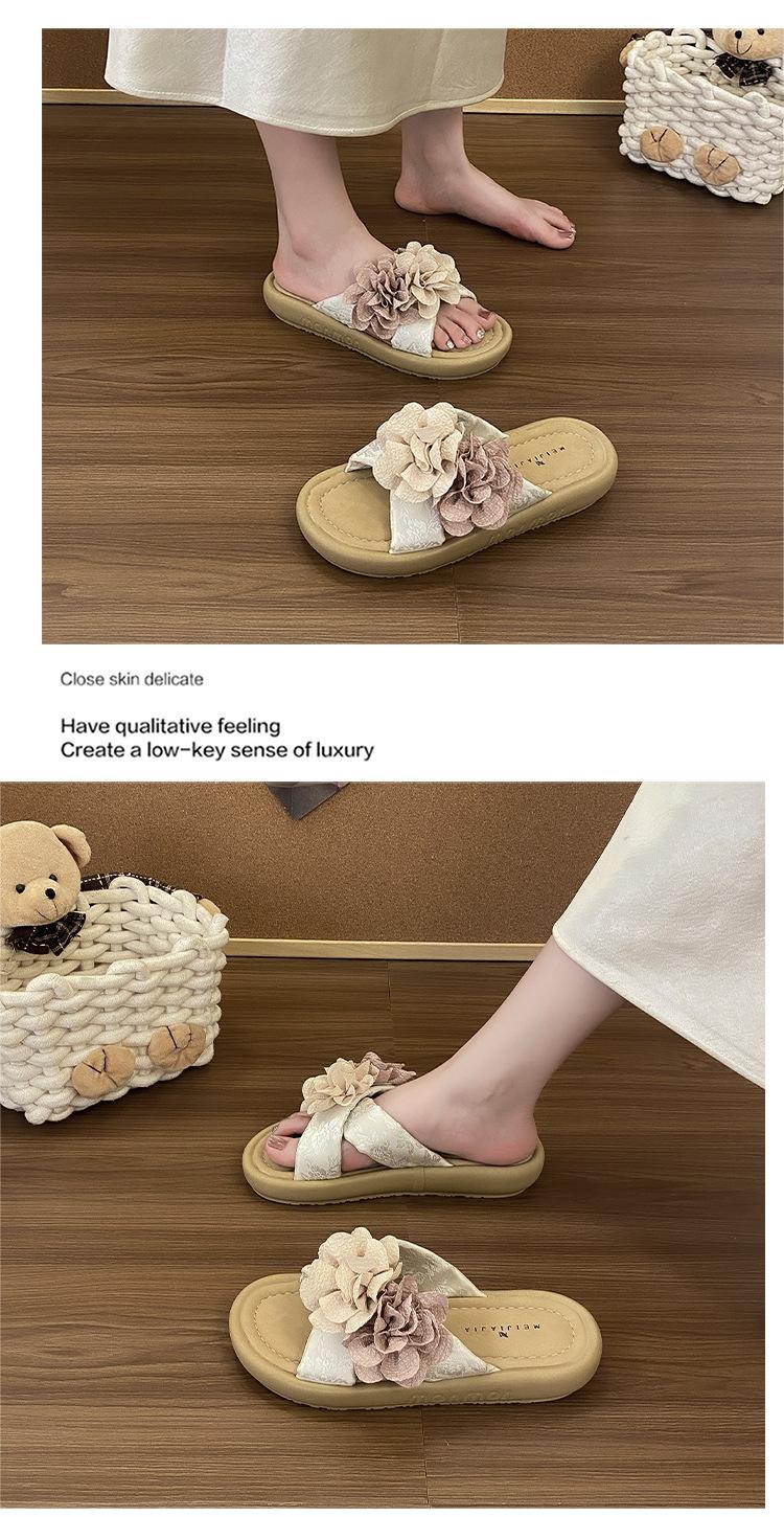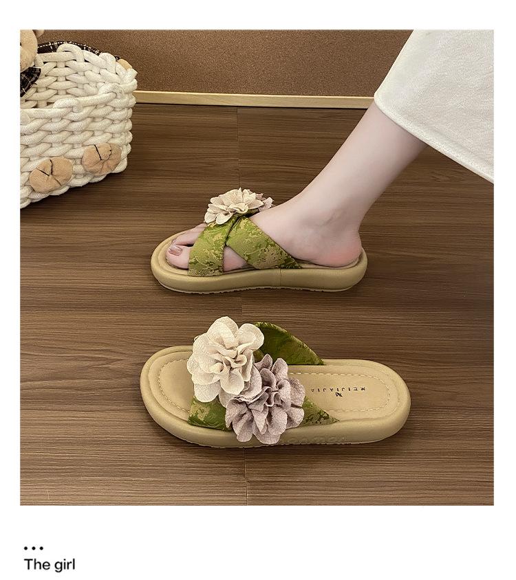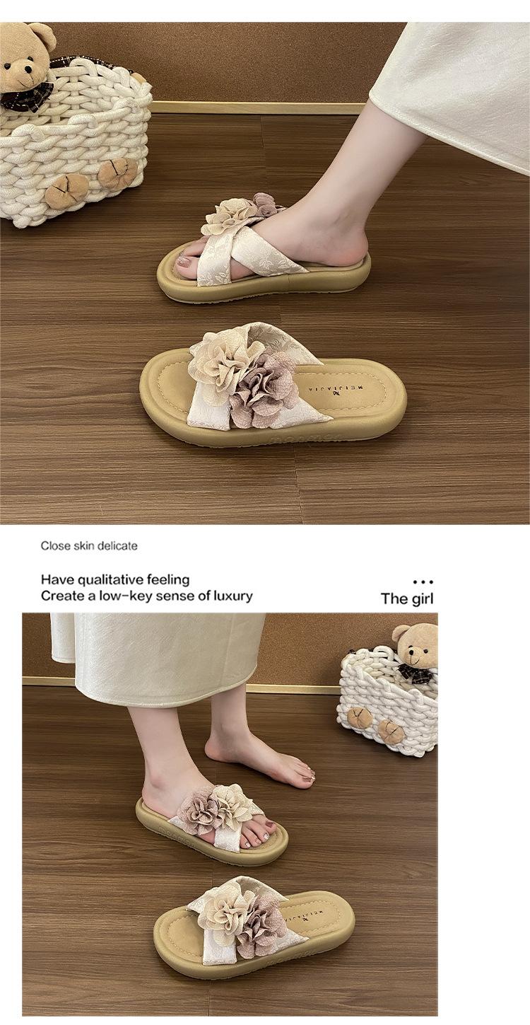 Zapatillas planas de hada de celebridad de Internet para mujer Verano 2025 Nuevo calzado exterior Antideslizantes Flor junto al mar Vacaciones Zapatos de playa
