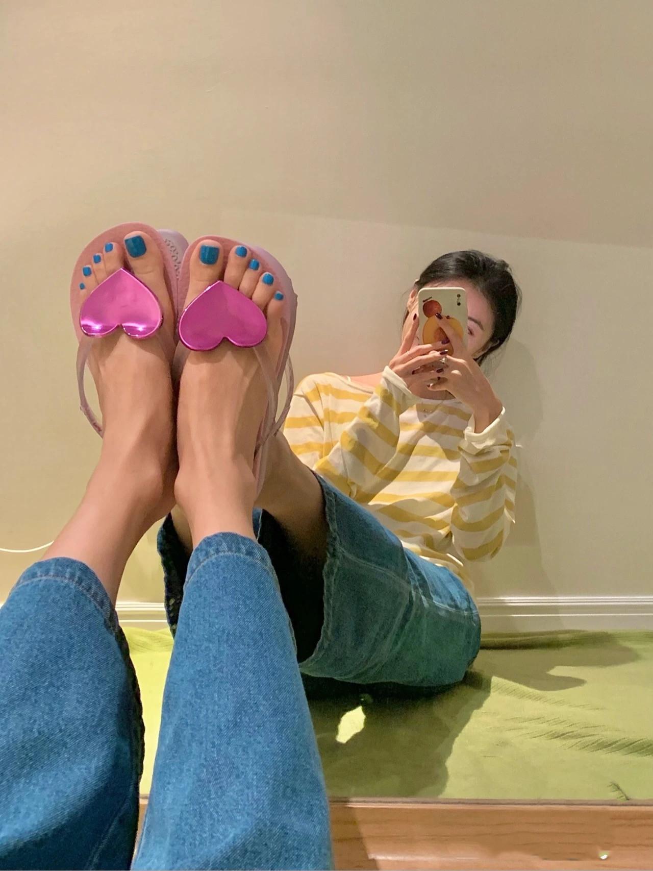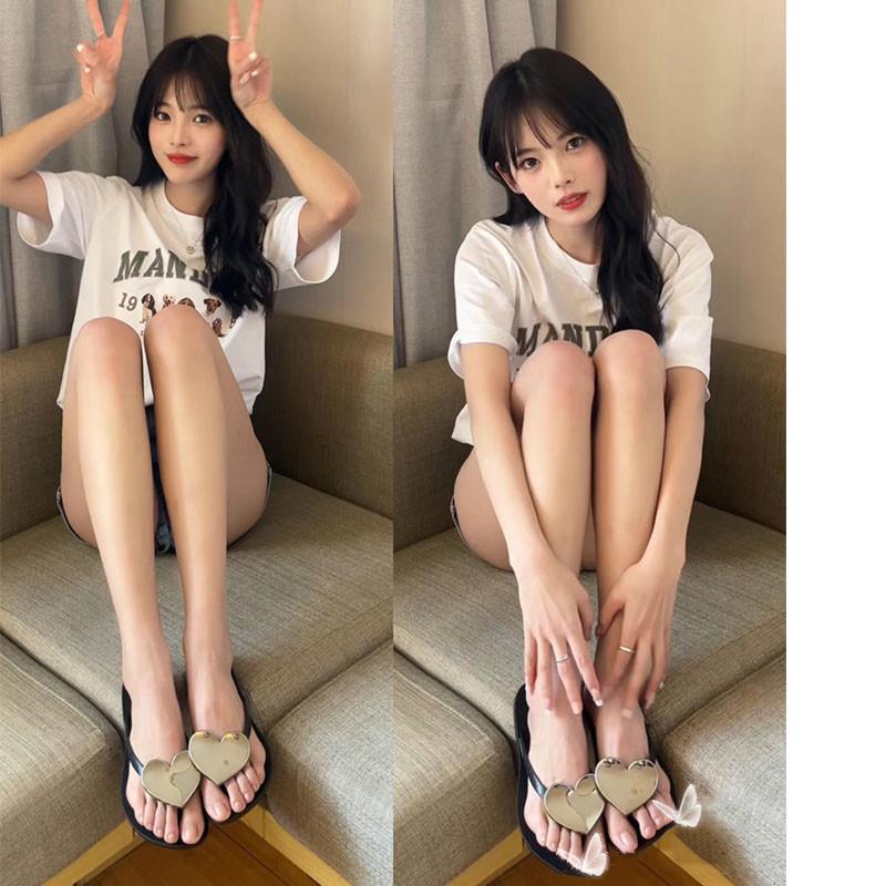 El Mismo Estilo de Chanclas de Amor Verano Plano Antideslizante Moda Pantuflas de Playa Chanclas de Amor para Mujeres