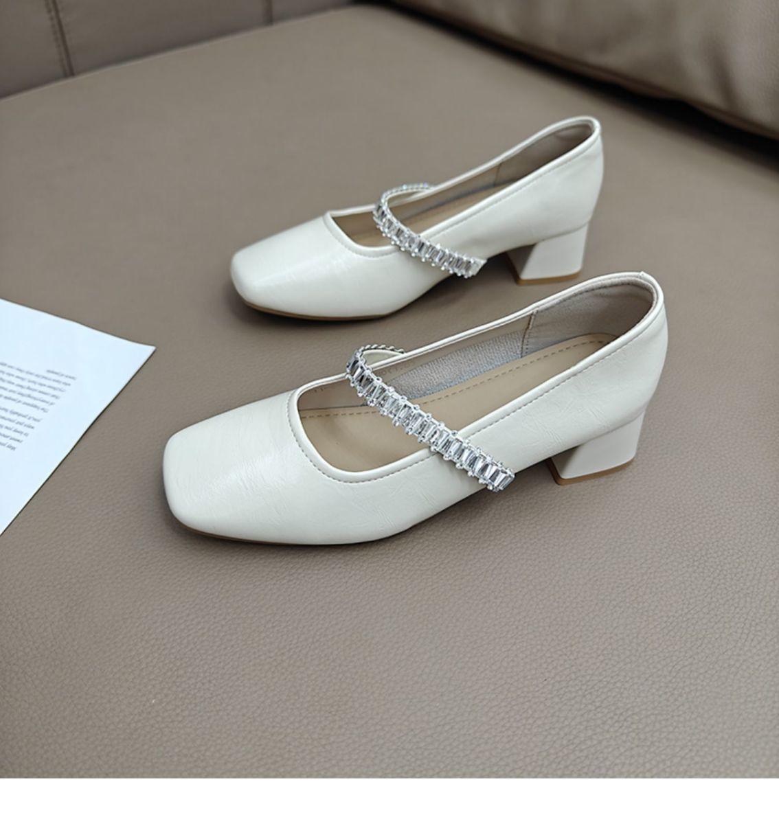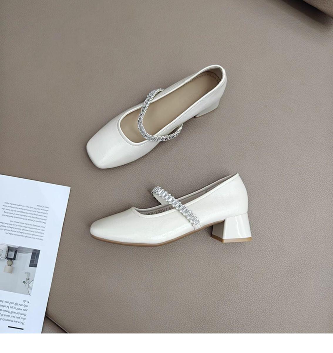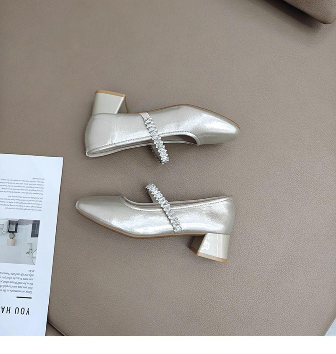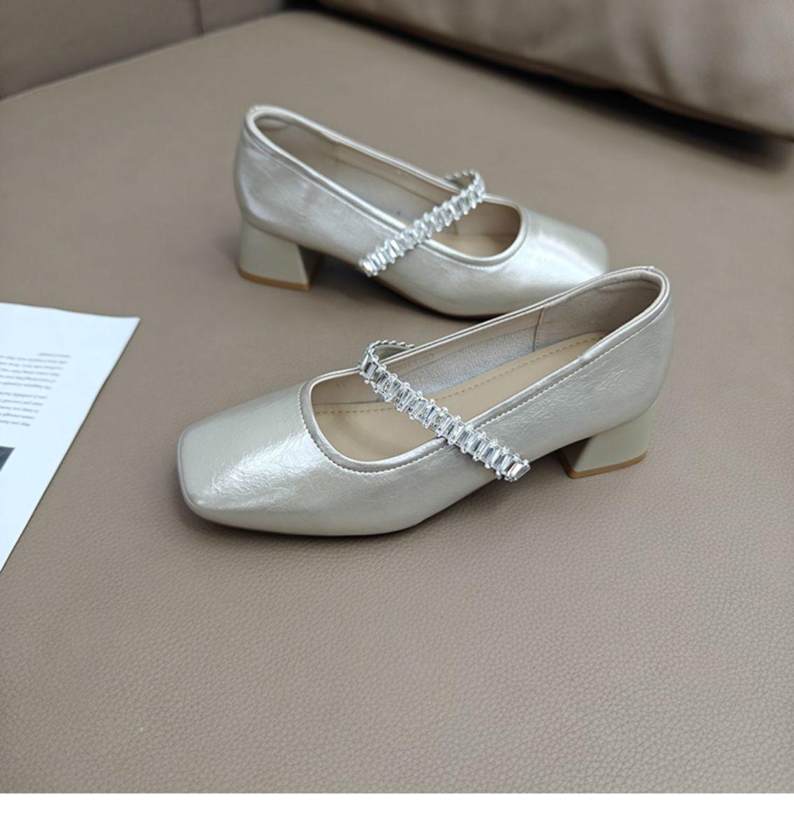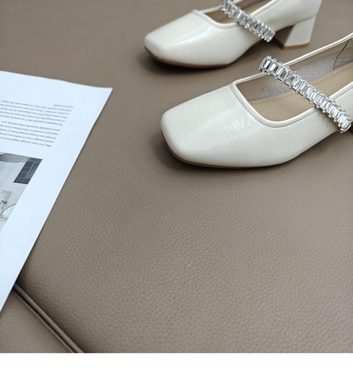 Zapatos Mary Jane de Estrás Estilo Francés para Mujer Verano 2025 Punta Cuadrada Retro Tacón Grueso Estilo Elegante de Hada con Falda