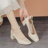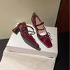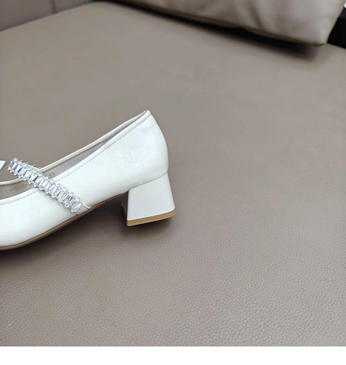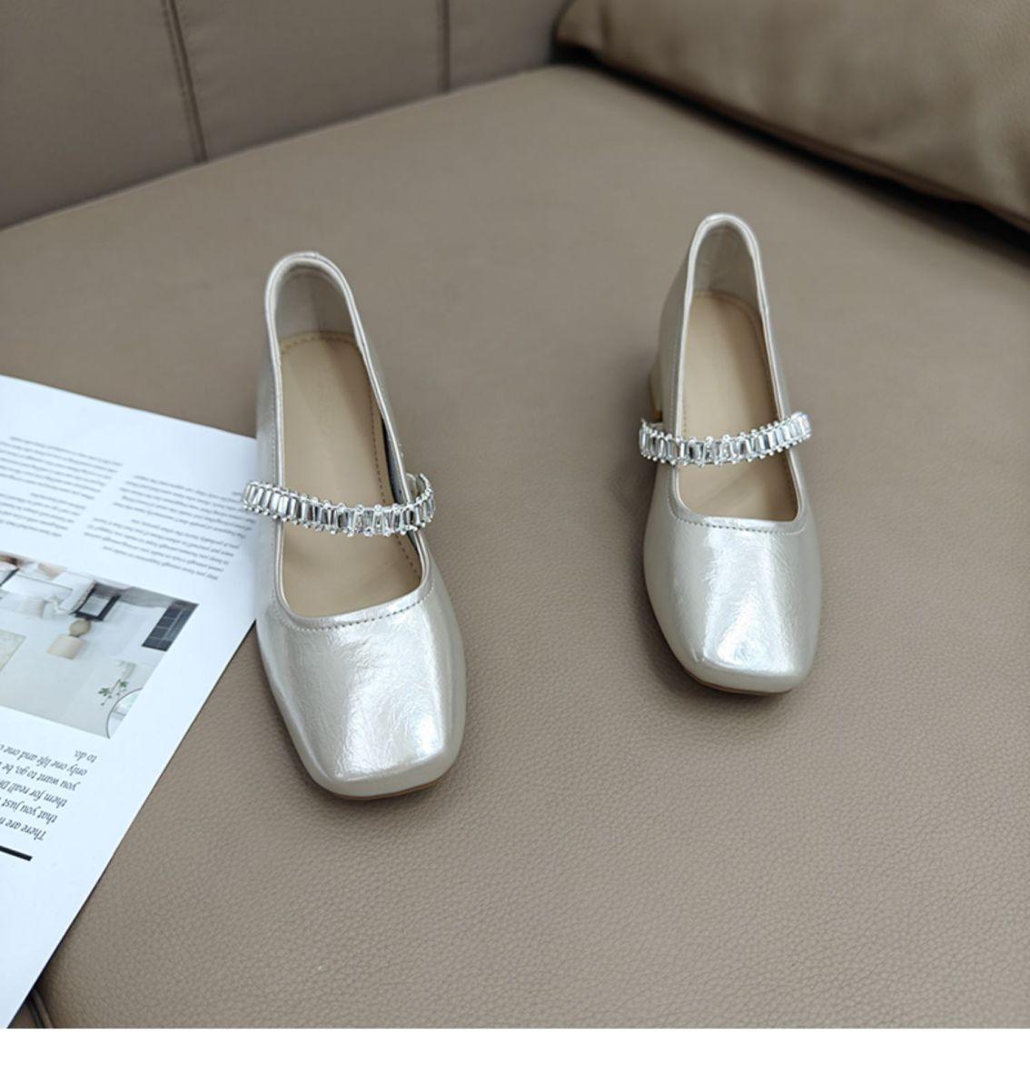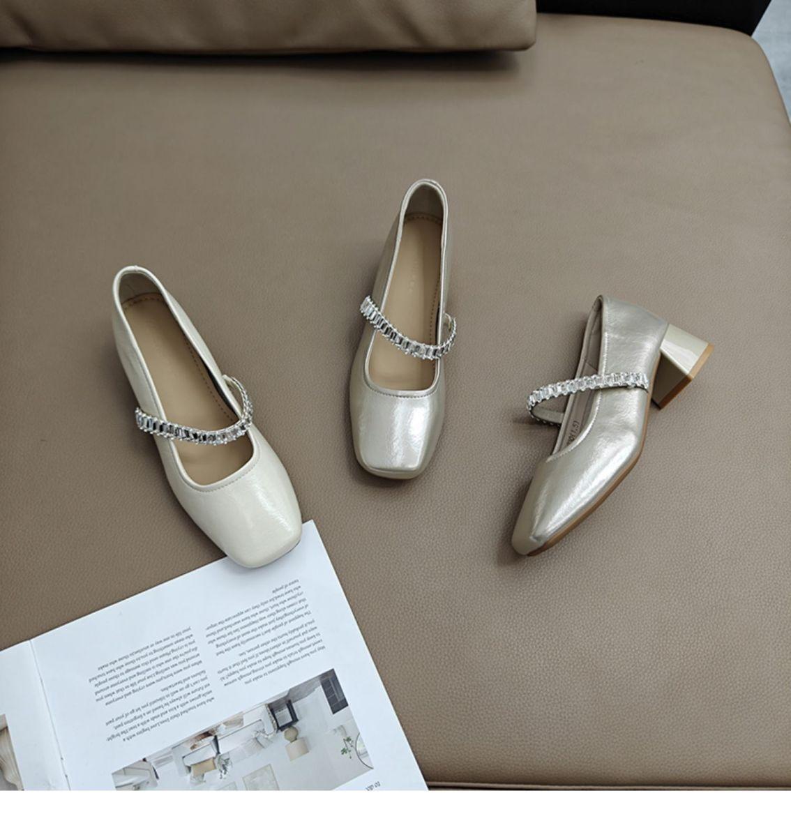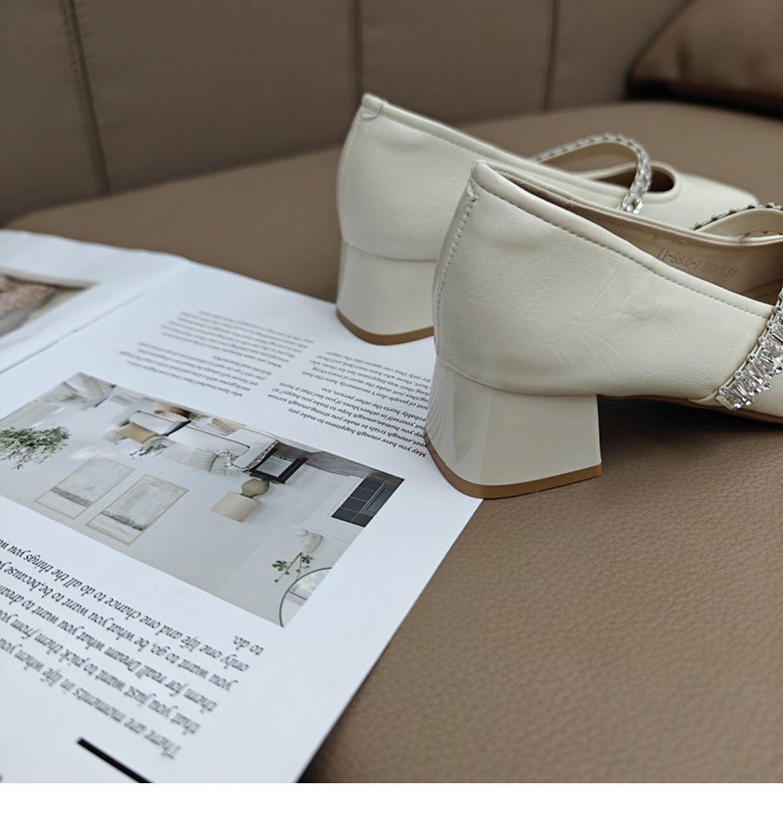 Zapatos Mary Jane de Estrás Estilo Francés para Mujer Verano 2025 Punta Cuadrada Retro Tacón Grueso Estilo Elegante de Hada con Falda