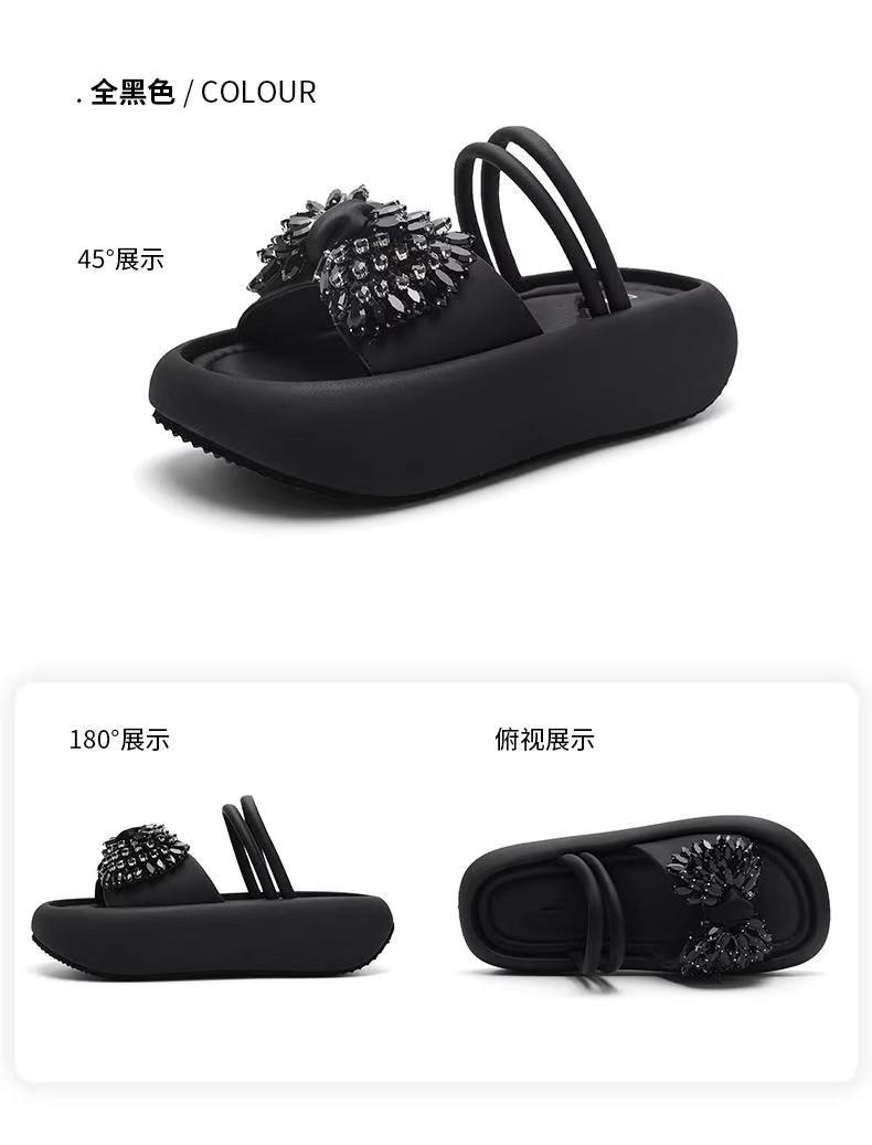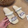 Pantuflas de Lazo de Pedrería Verano para Exterior Zapatos Mary Jane Sandalias de Playa Sandalias Casuales de Vacaciones Zapatos de Mujer