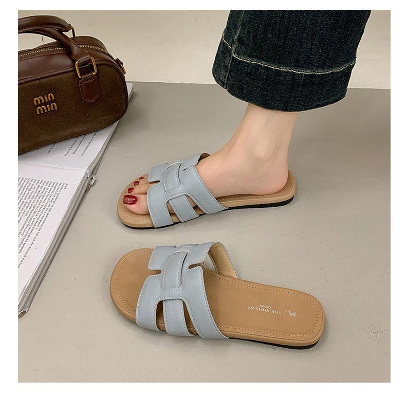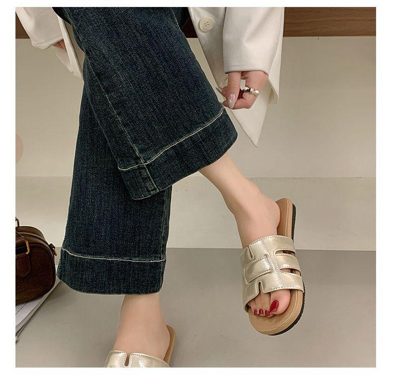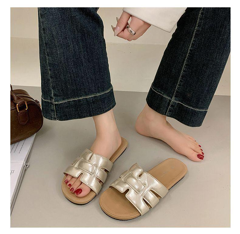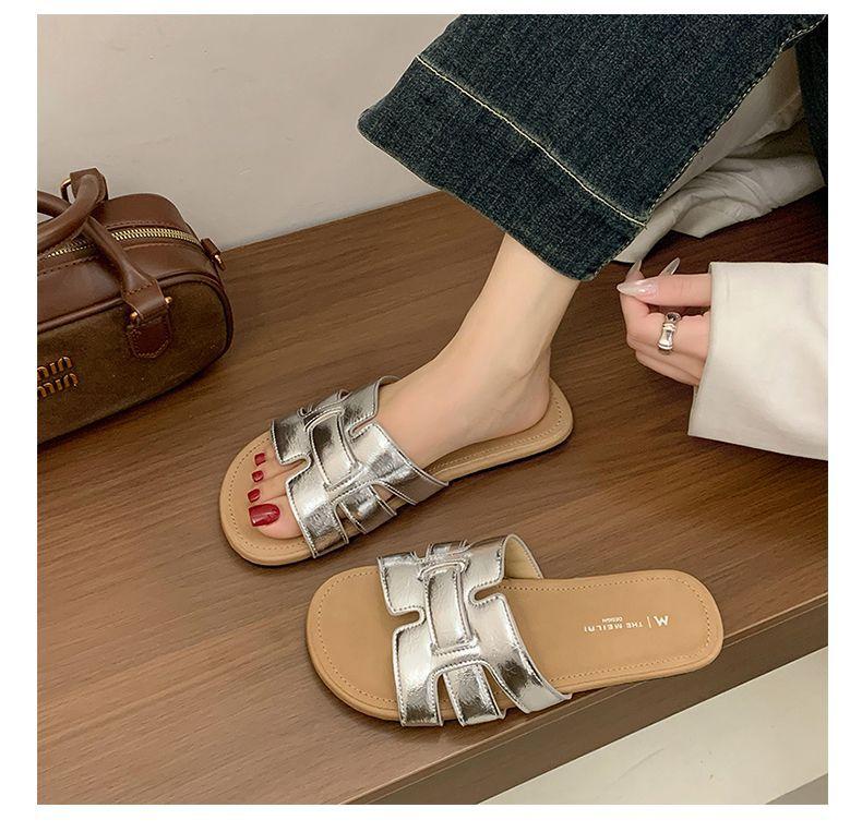 Sandalias Planas de Estilo Francés, Modernas, Versátiles, Slip-On para Mujer 2025 Nuevo Verano, Tejidas de Moda, para Exterior, Playa