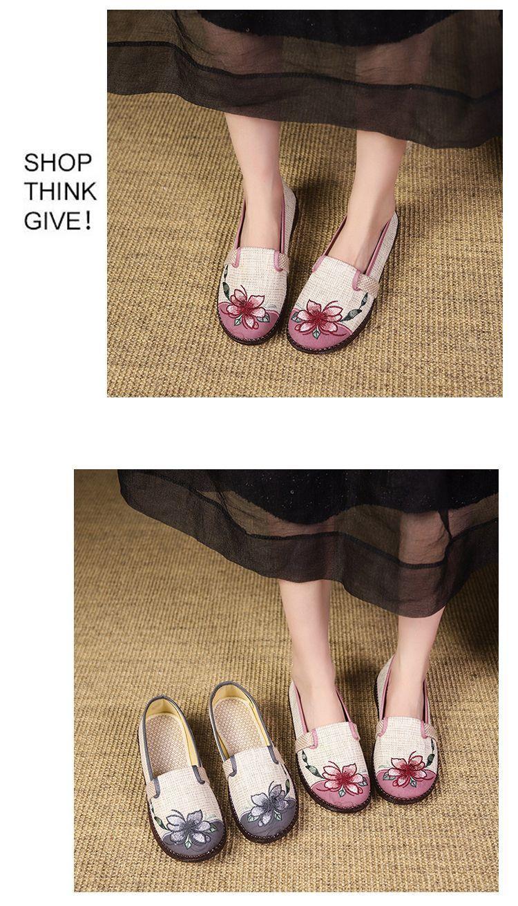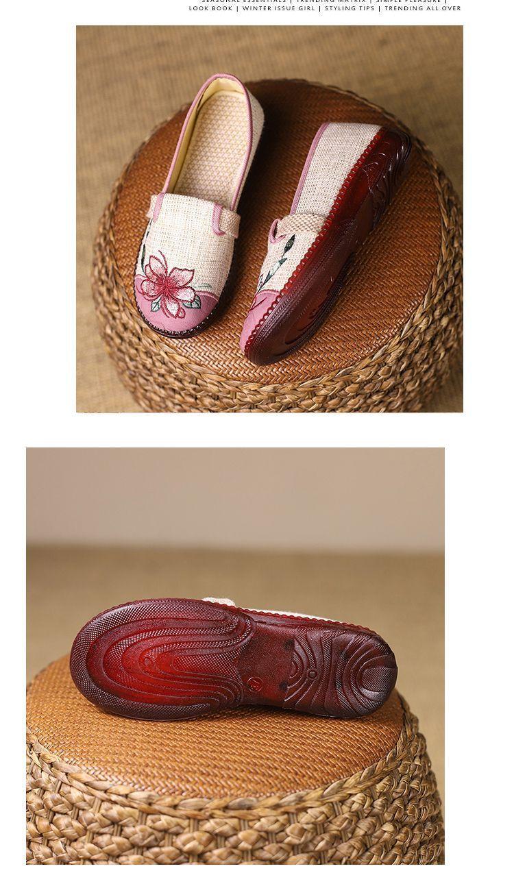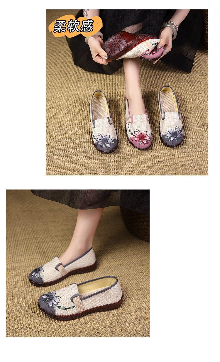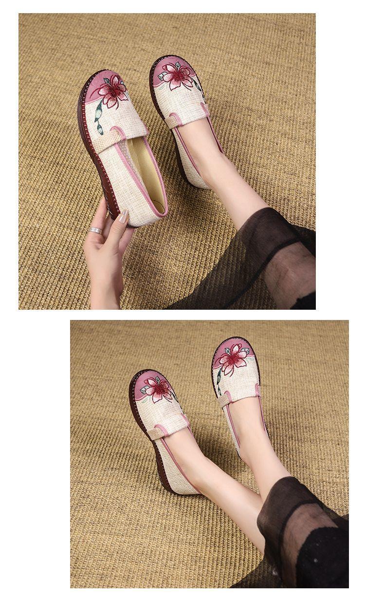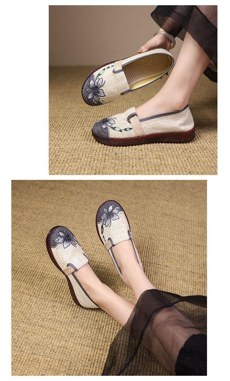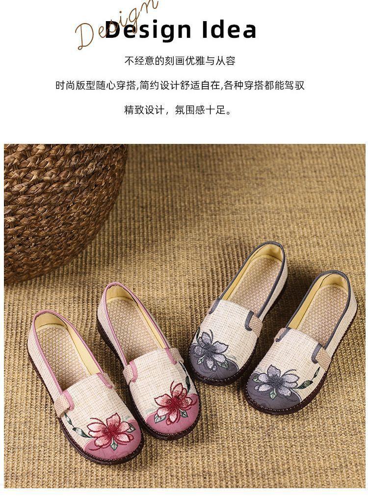 2025 Verano y Otoño Nuevos Zapatos de Tela de Pekín Antiguos Zapatos Individuales para Mujer Planos Cómodos Zapatos de Mamá Transpirables Casuales Zapatos Bordados