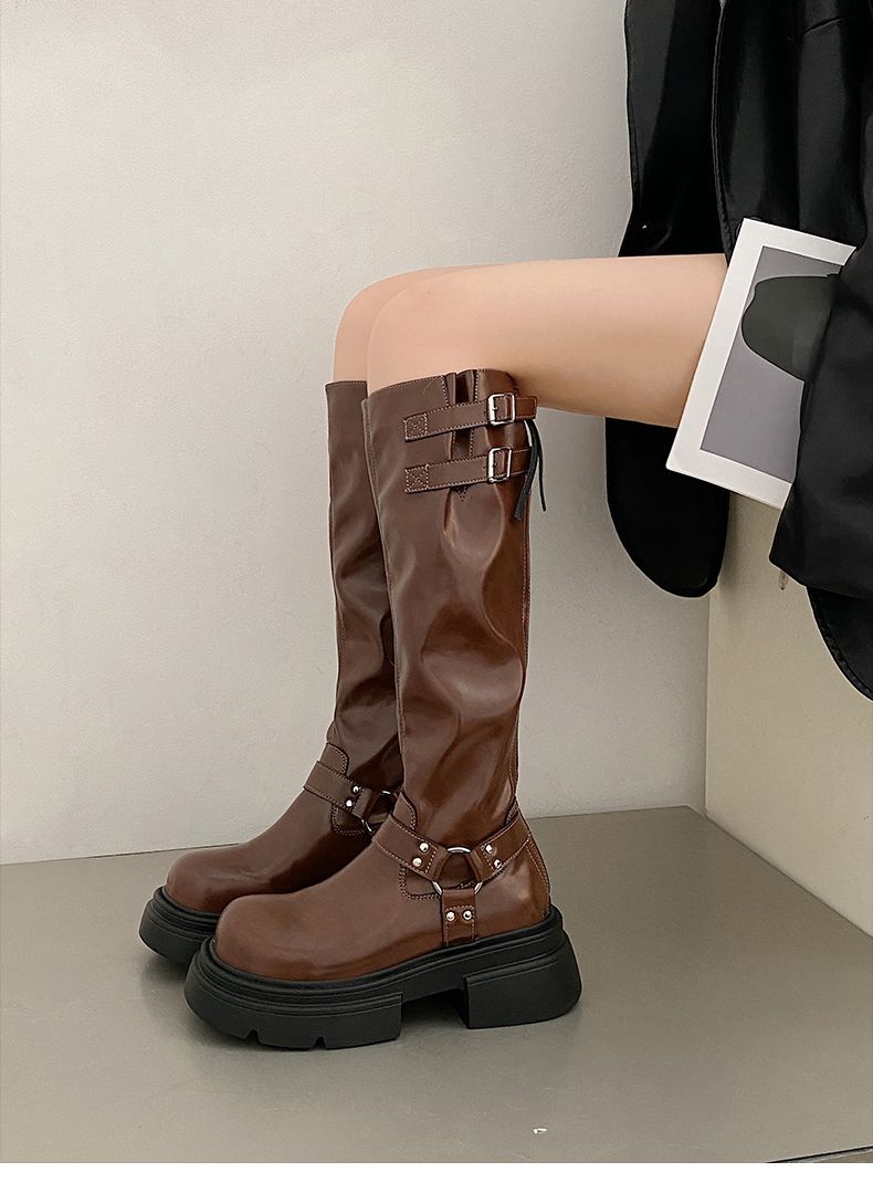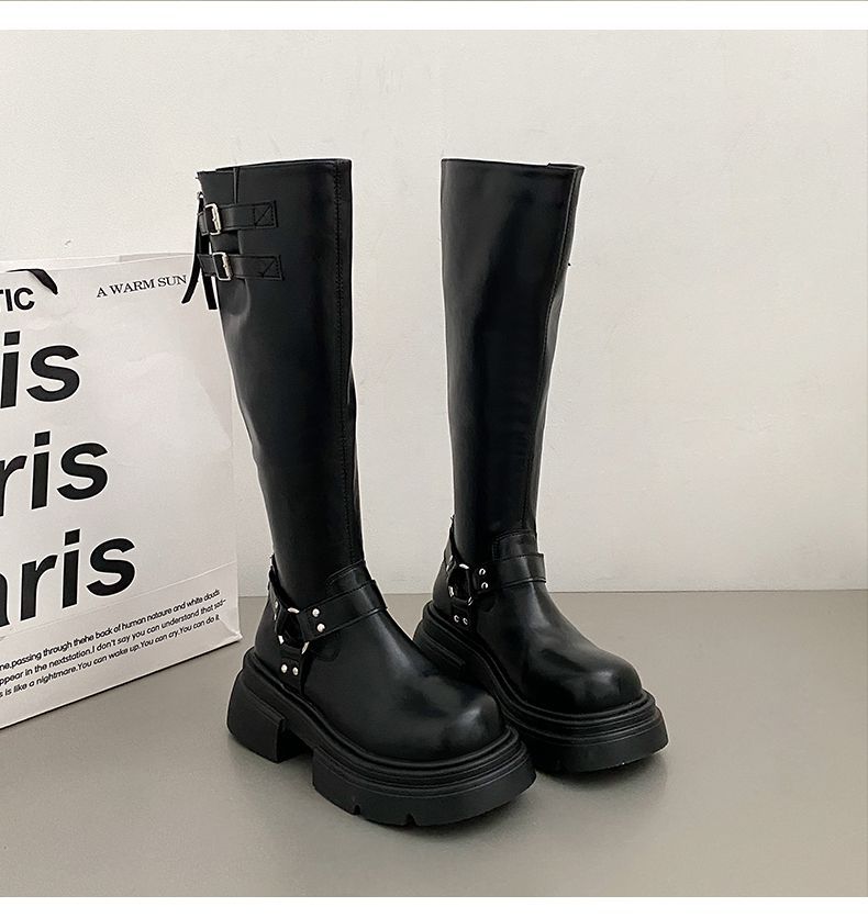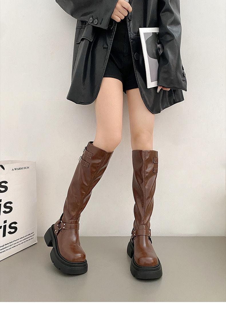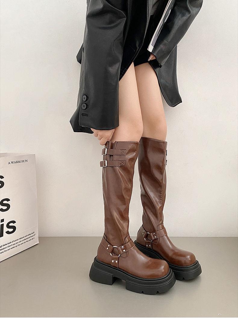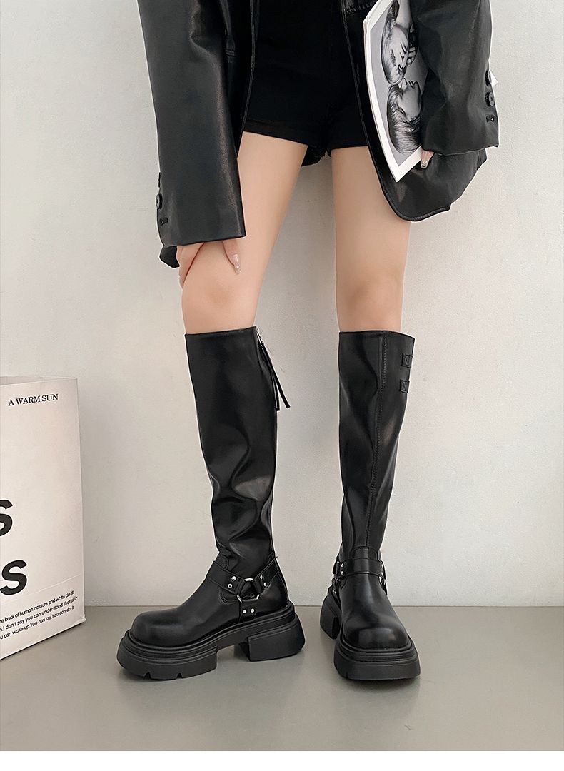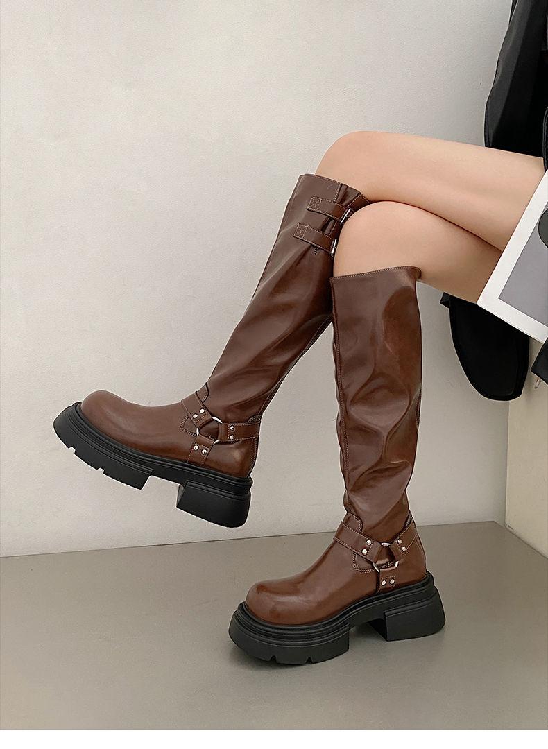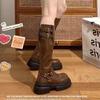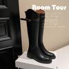 Botas Altas de Caballero Modernas y Versátiles 2024 Otoño e Invierno Nuevas Botas Antideslizantes con Tacones Gruesos, Punta Redonda, Botas Retro Versátiles Cómodas