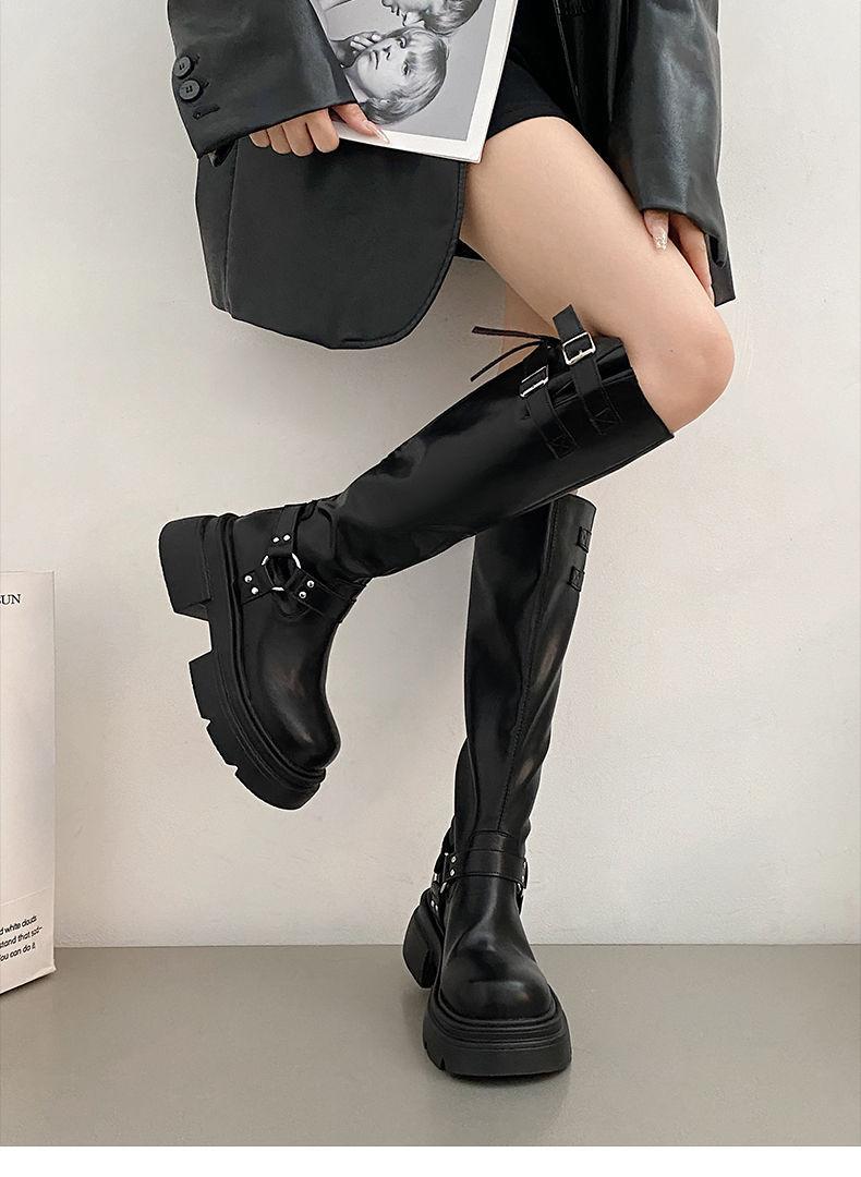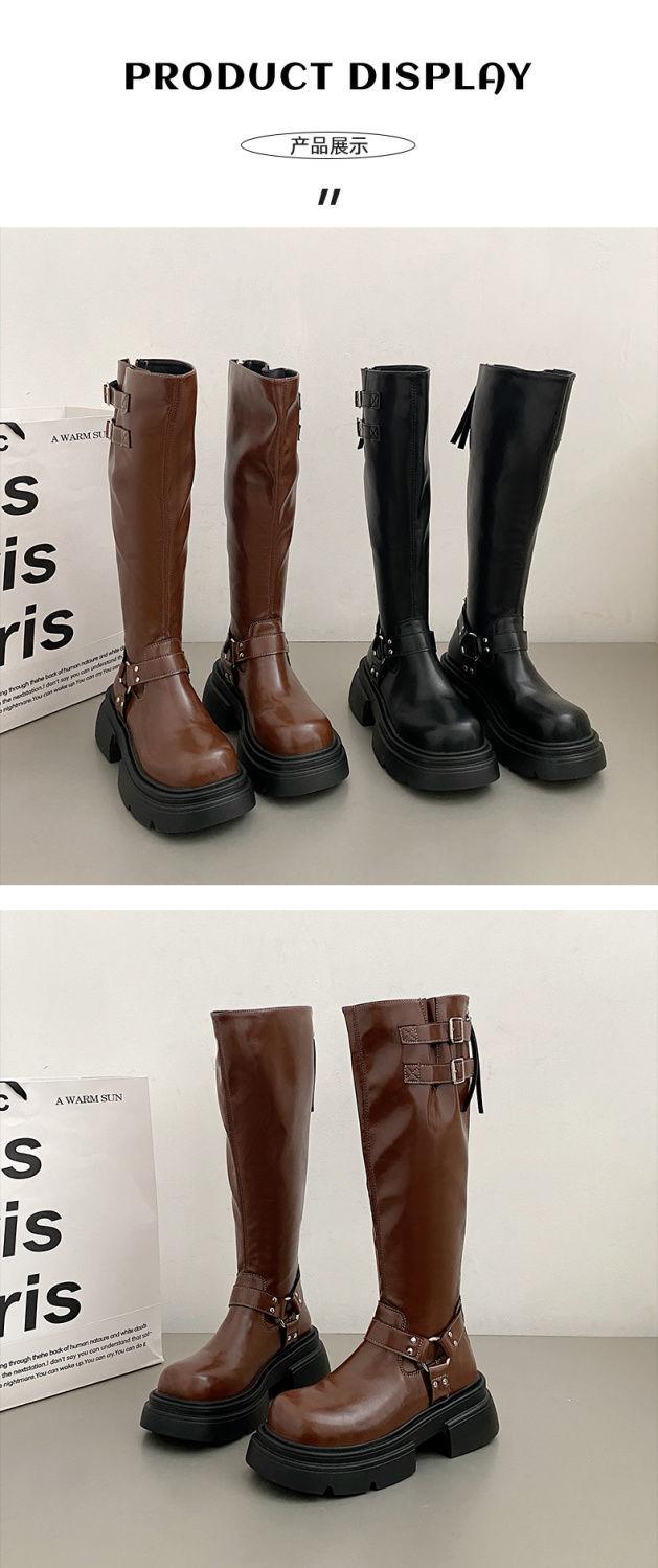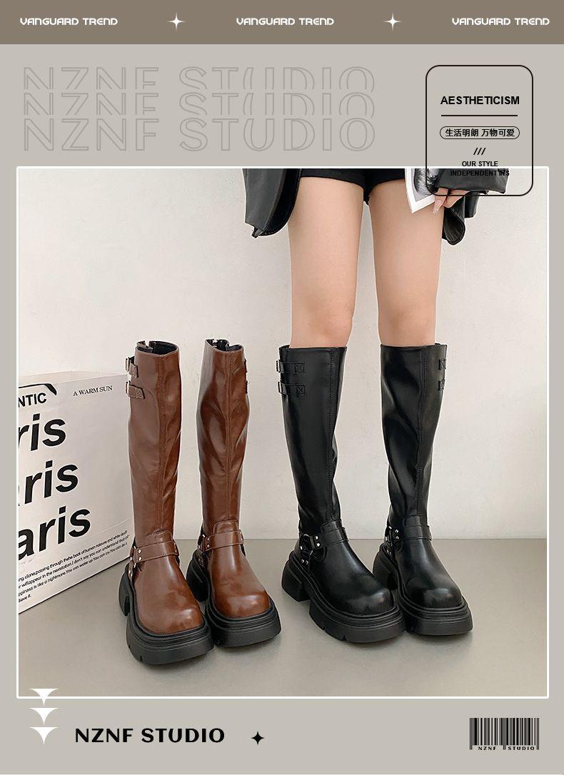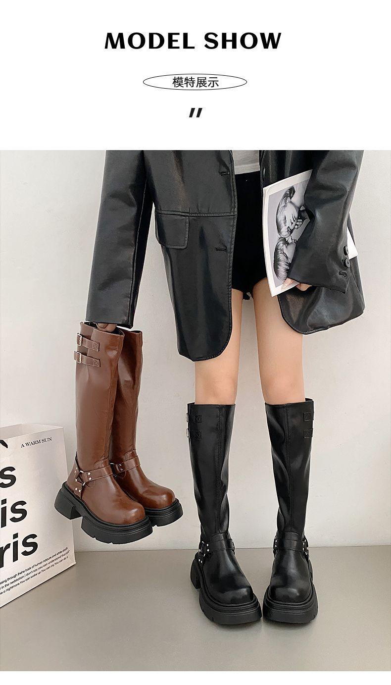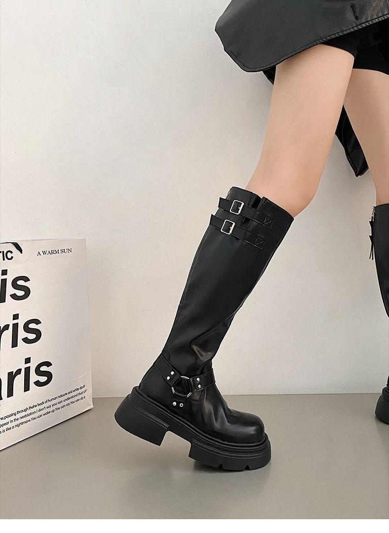 Botas Altas de Caballero Modernas y Versátiles 2024 Otoño e Invierno Nuevas Botas Antideslizantes con Tacones Gruesos, Punta Redonda, Botas Retro Versátiles Cómodas