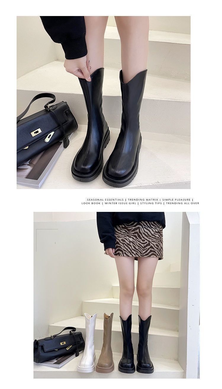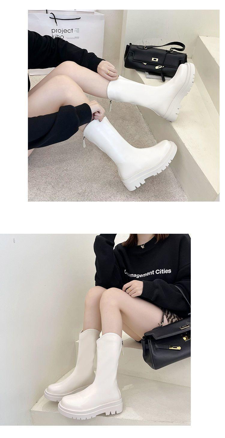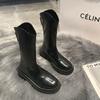 Flats Delgados de Suela Gruesa Botas de Media Caña 2025 Nuevas Punta Redonda Estilo Británico Estudiante Botas Negras Celebridad de Internet Botas Delgadas