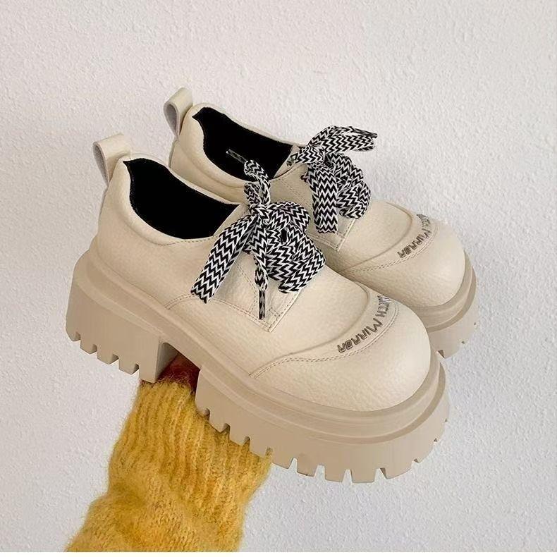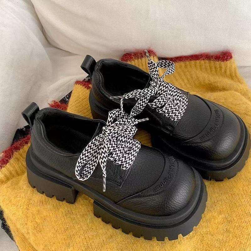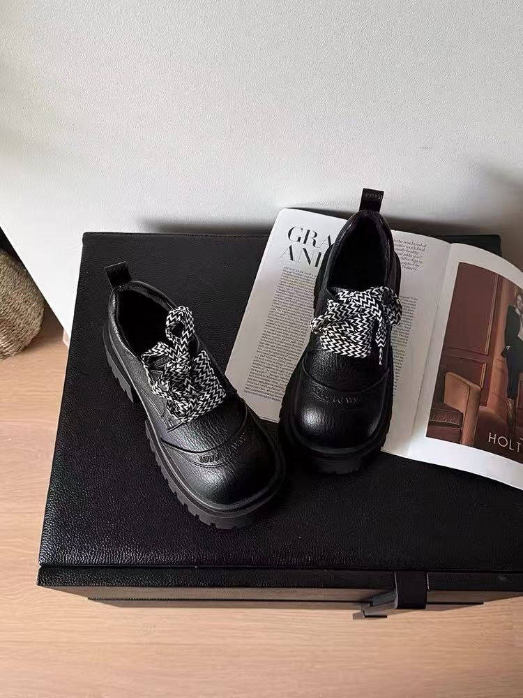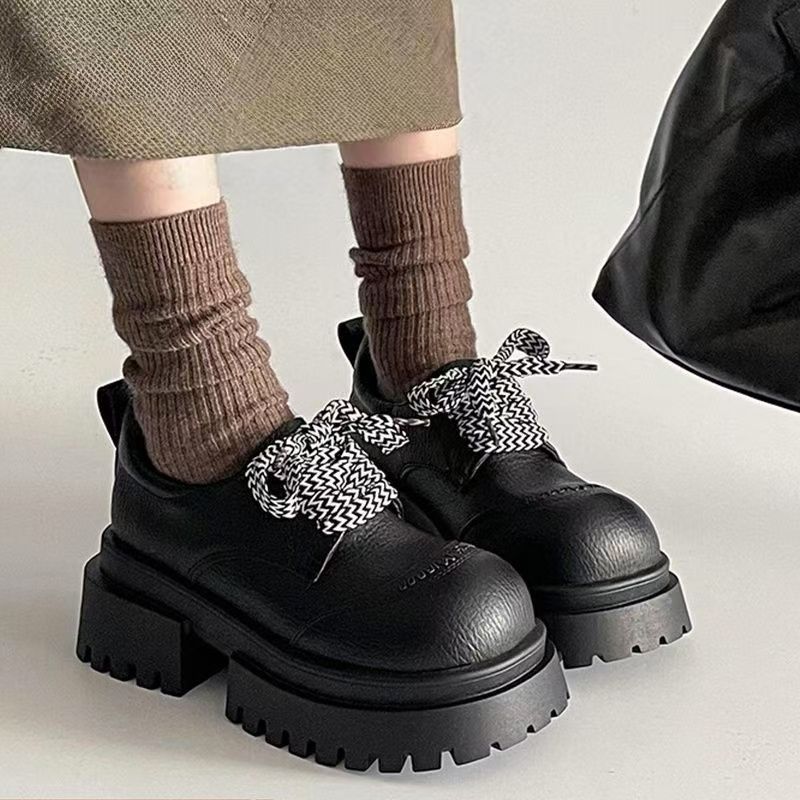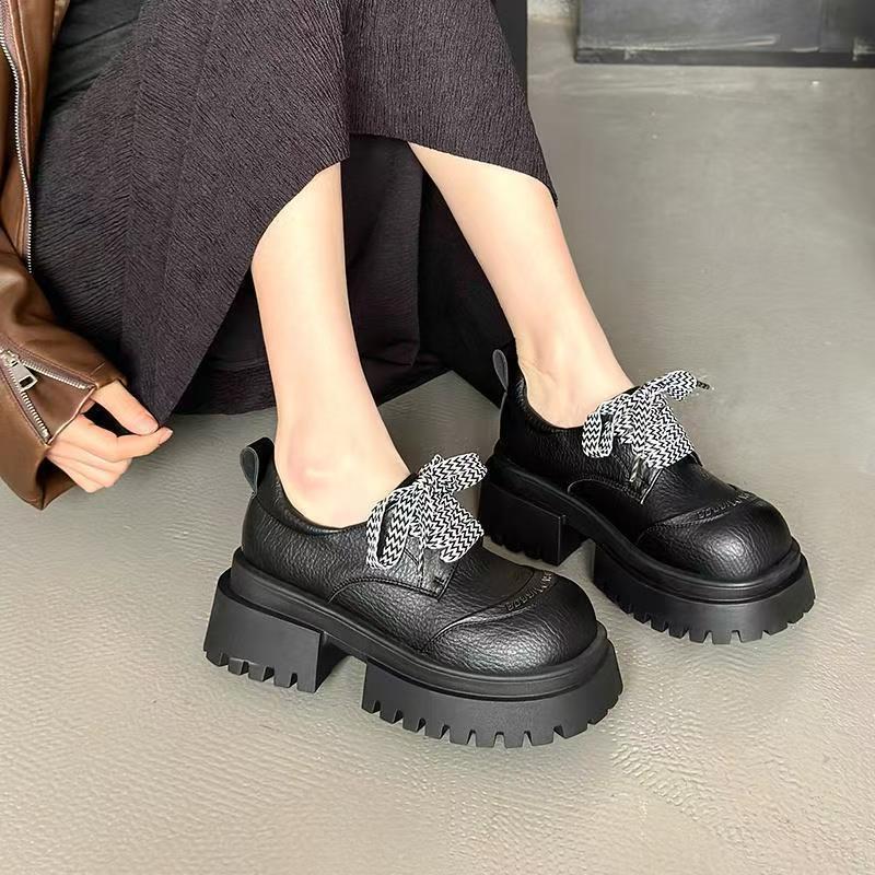 Mocasines Retro de Moda Versátiles con Cordones Estilo Británico Casual Zapatos Elegantes de Suela Gruesa Otoño 2024 Nuevo Modelo